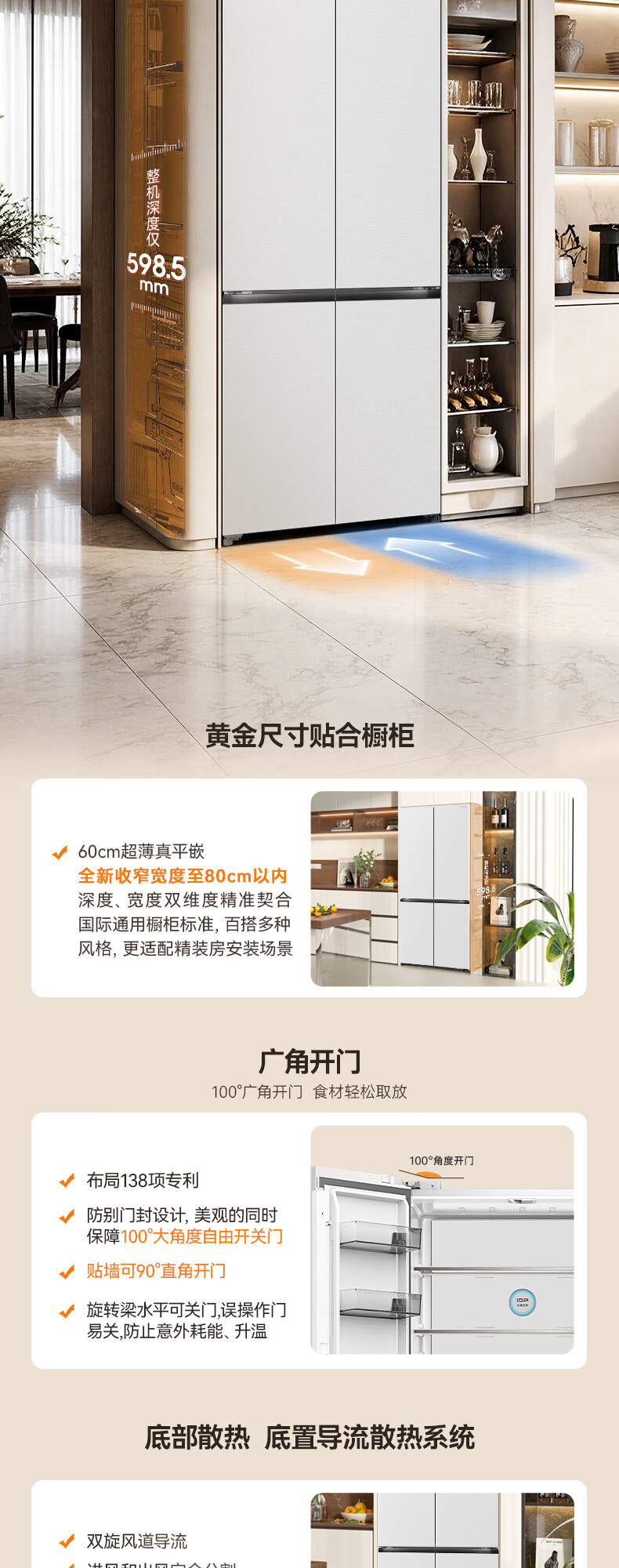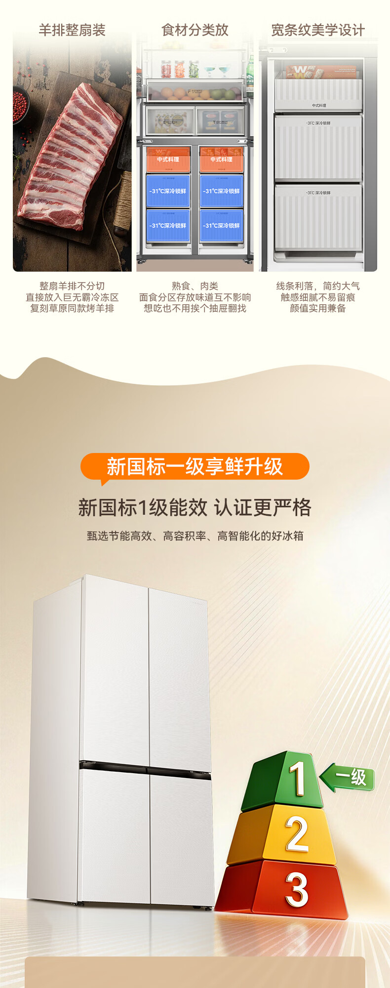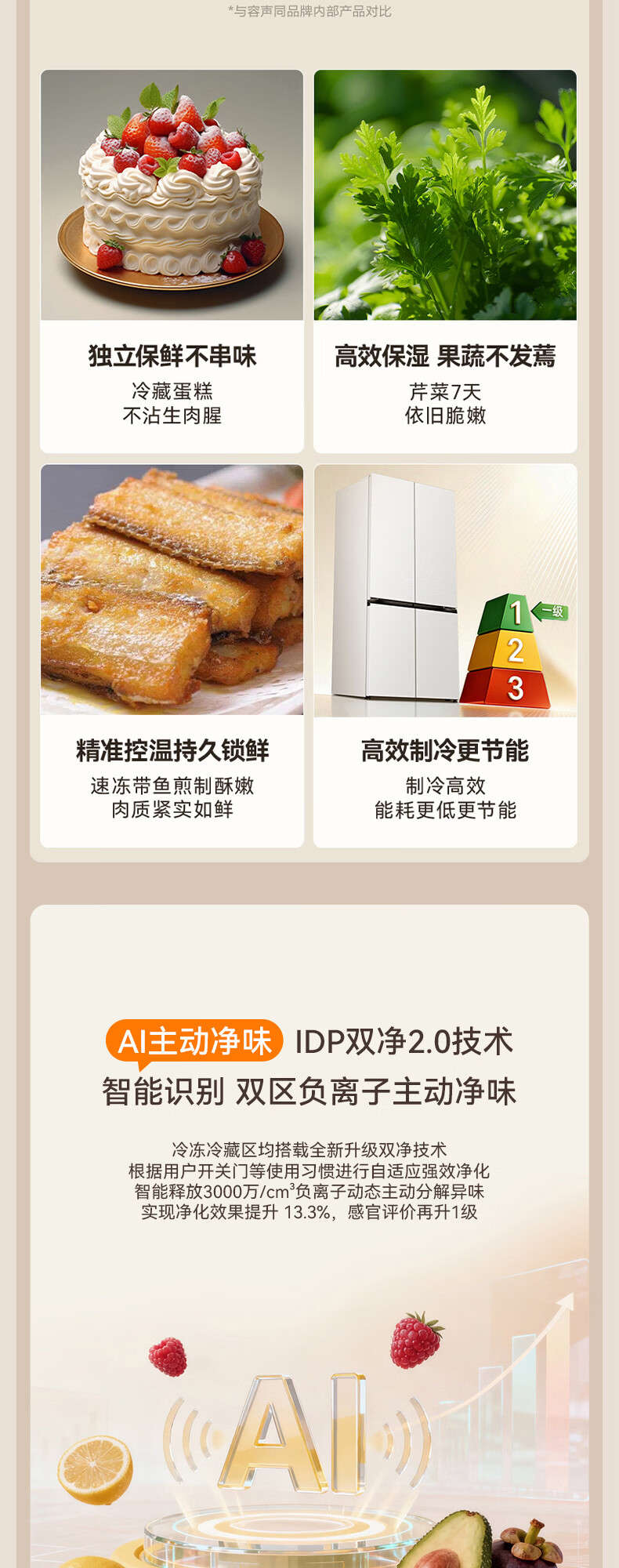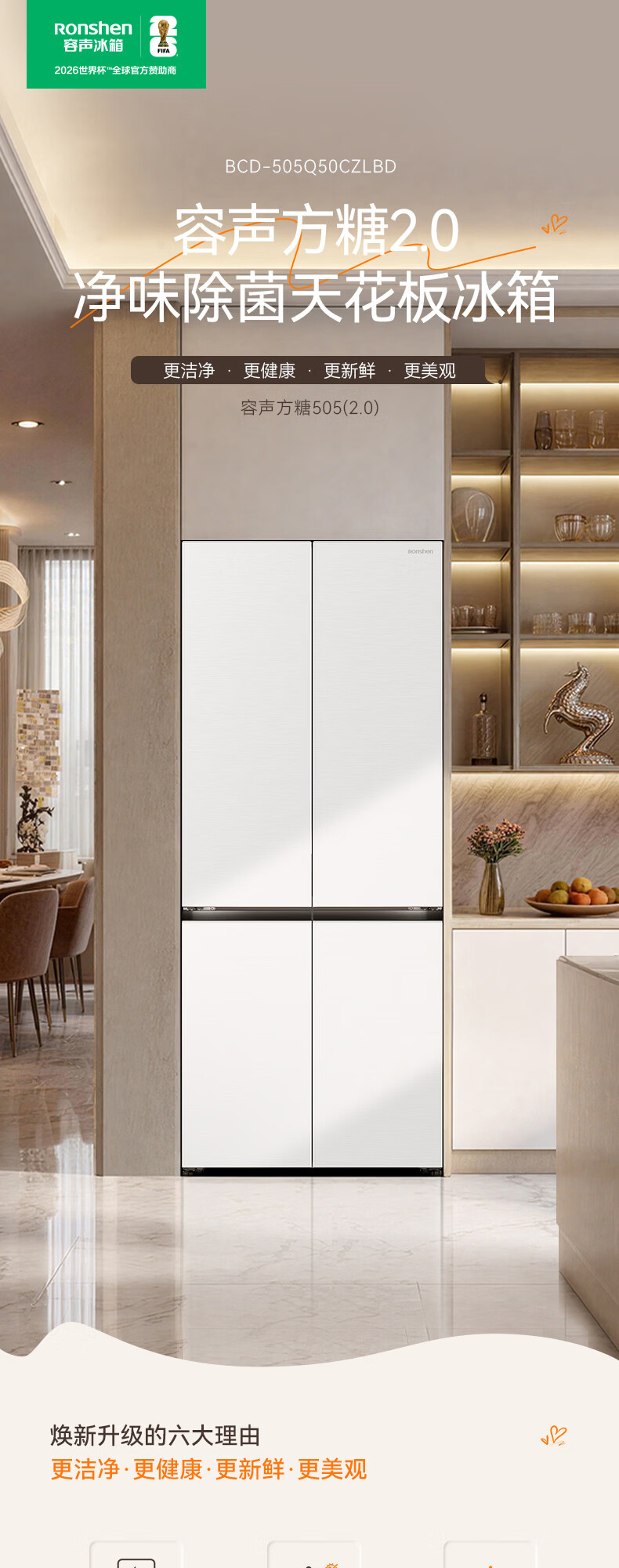 容声方糖505L(2.0)十字门冰箱双系统循环主动除菌超薄嵌入式一级能效无霜大容量白 BCD-505Q50CZLBD国家补贴