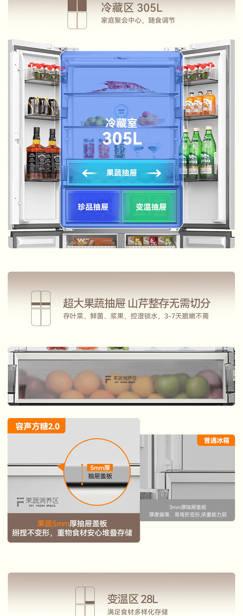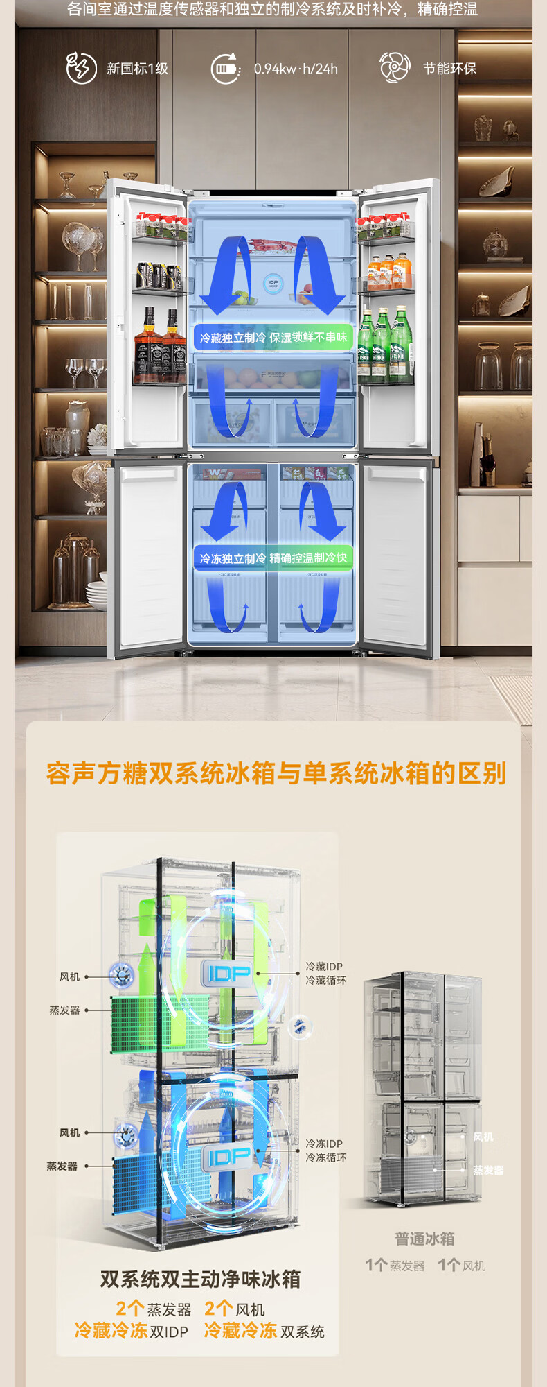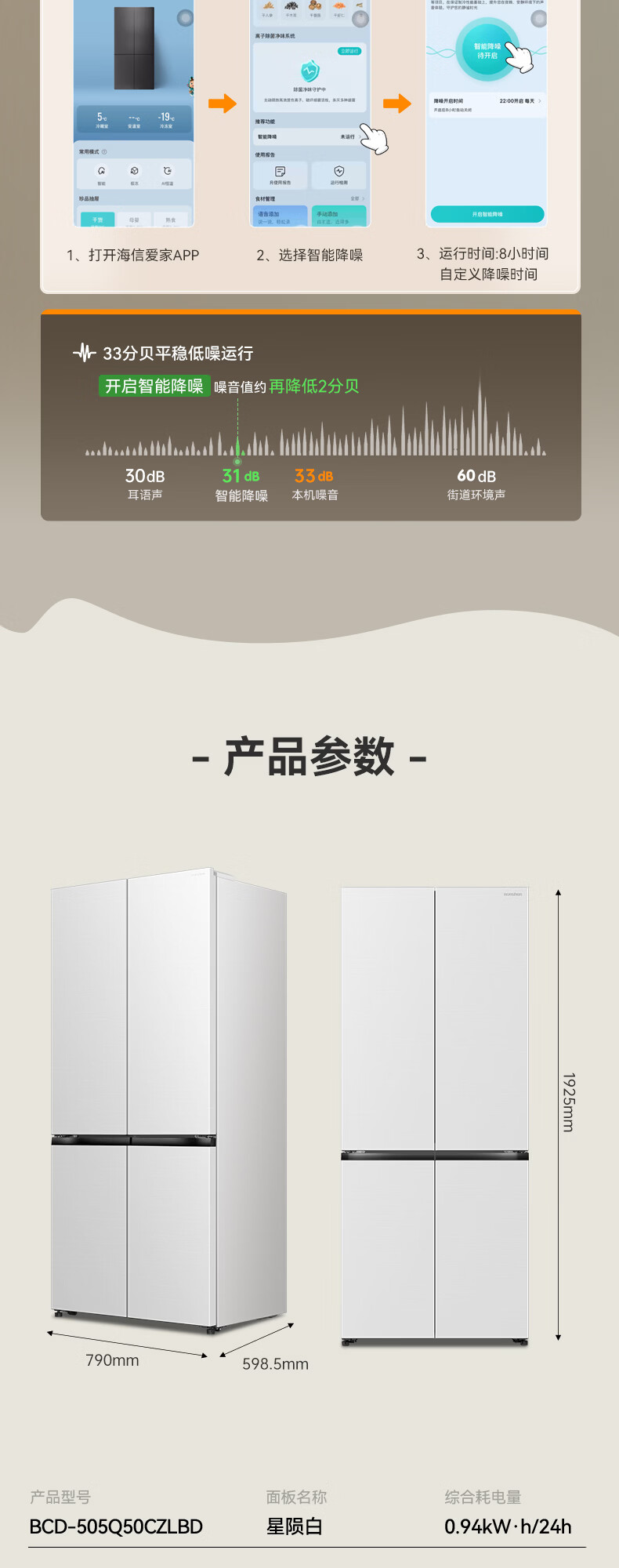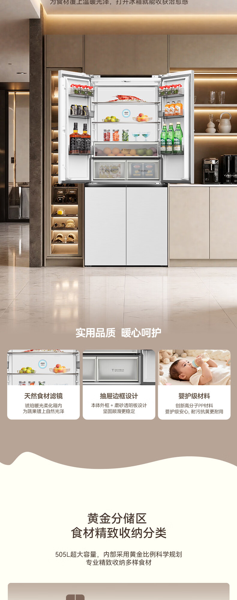 容声方糖505L(2.0)十字门冰箱双系统循环主动除菌超薄嵌入式一级能效无霜大容量白 BCD-505Q50CZLBD国家补贴