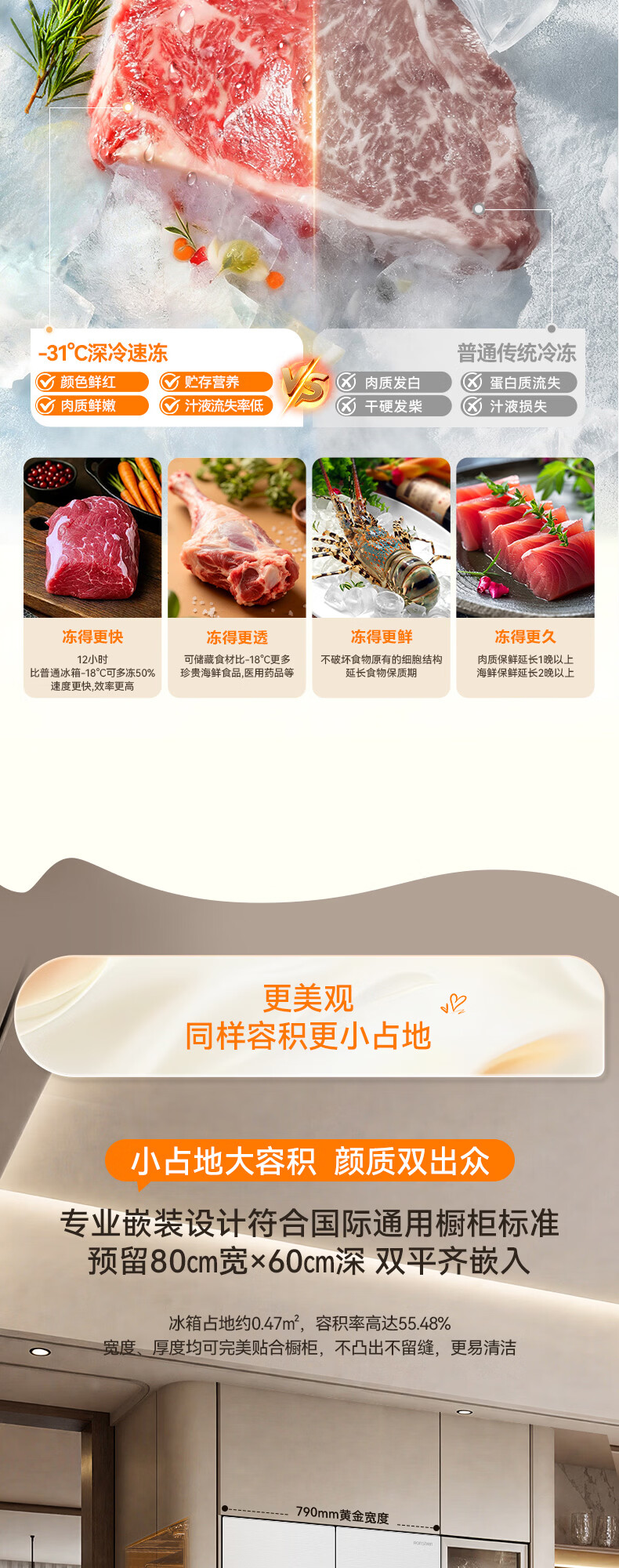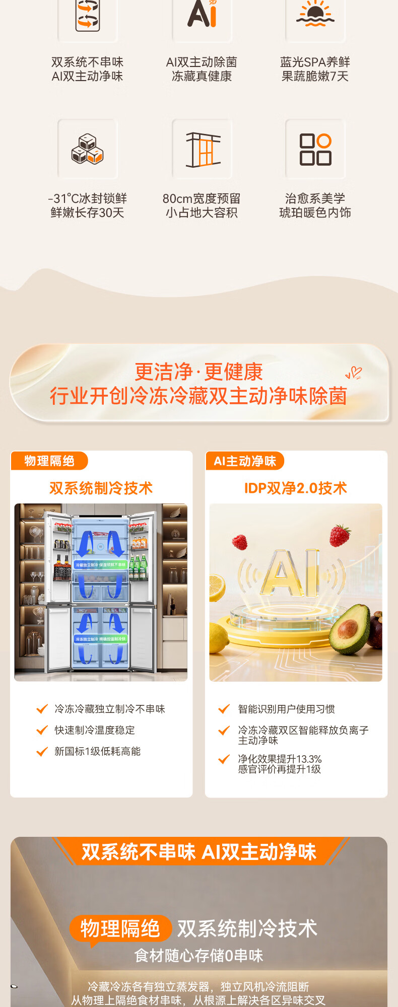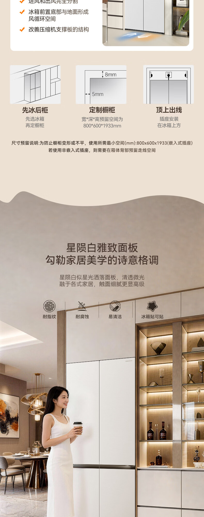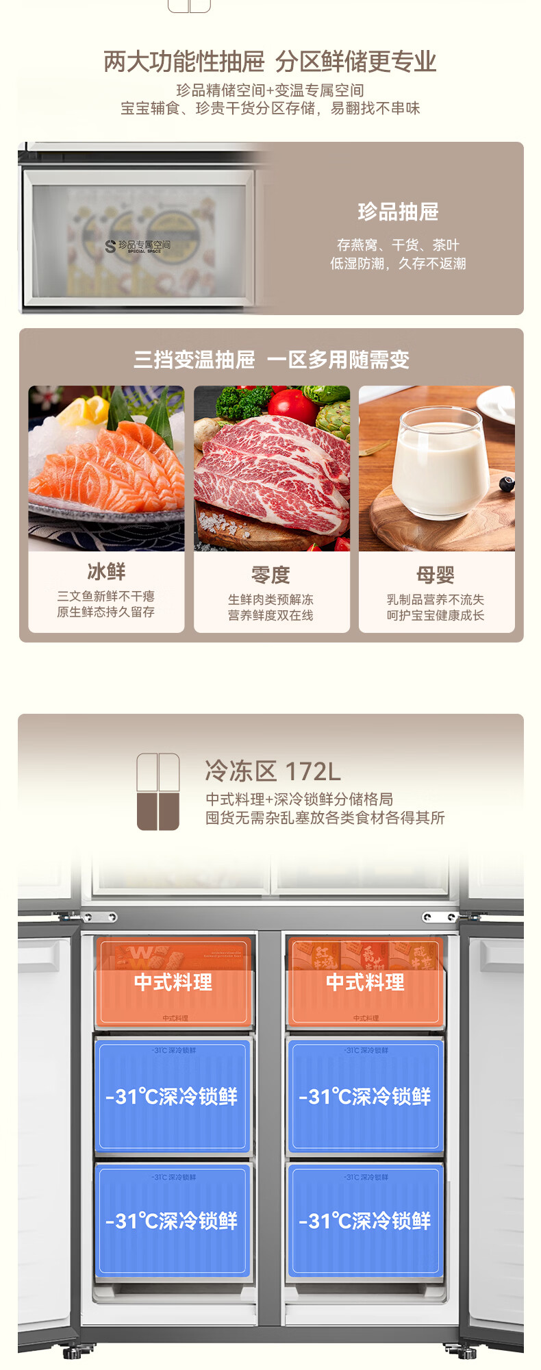 容声方糖505L(2.0)十字门冰箱双系统循环主动除菌超薄嵌入式一级能效无霜大容量白 BCD-505Q50CZLBD国家补贴