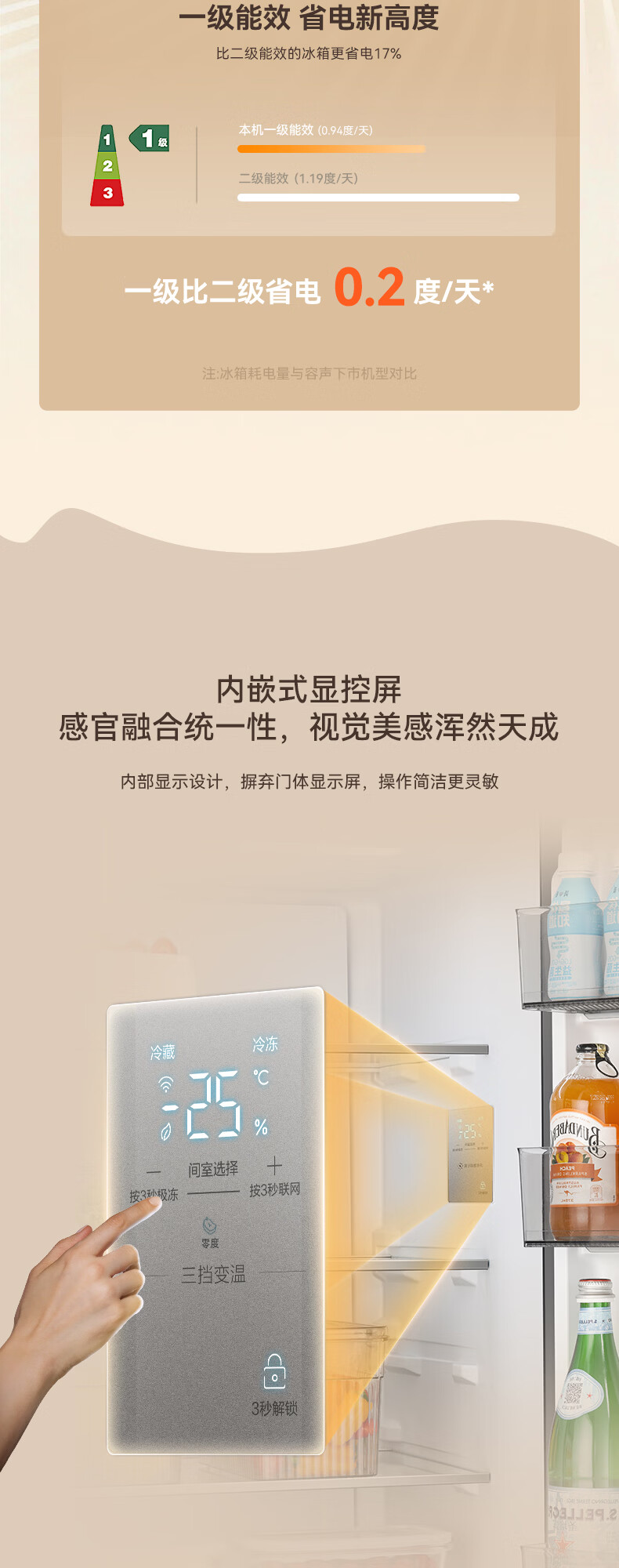 容声273升一级能效三门三开门家用冰箱小型出租房变频节能风冷无霜BCD-273E20RNLAJ BCD-273E20RNLAJ