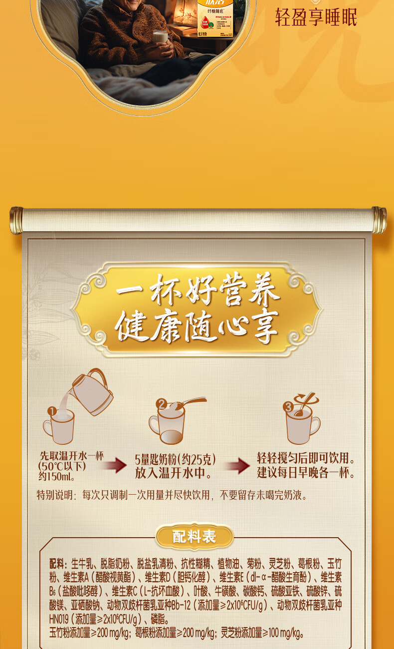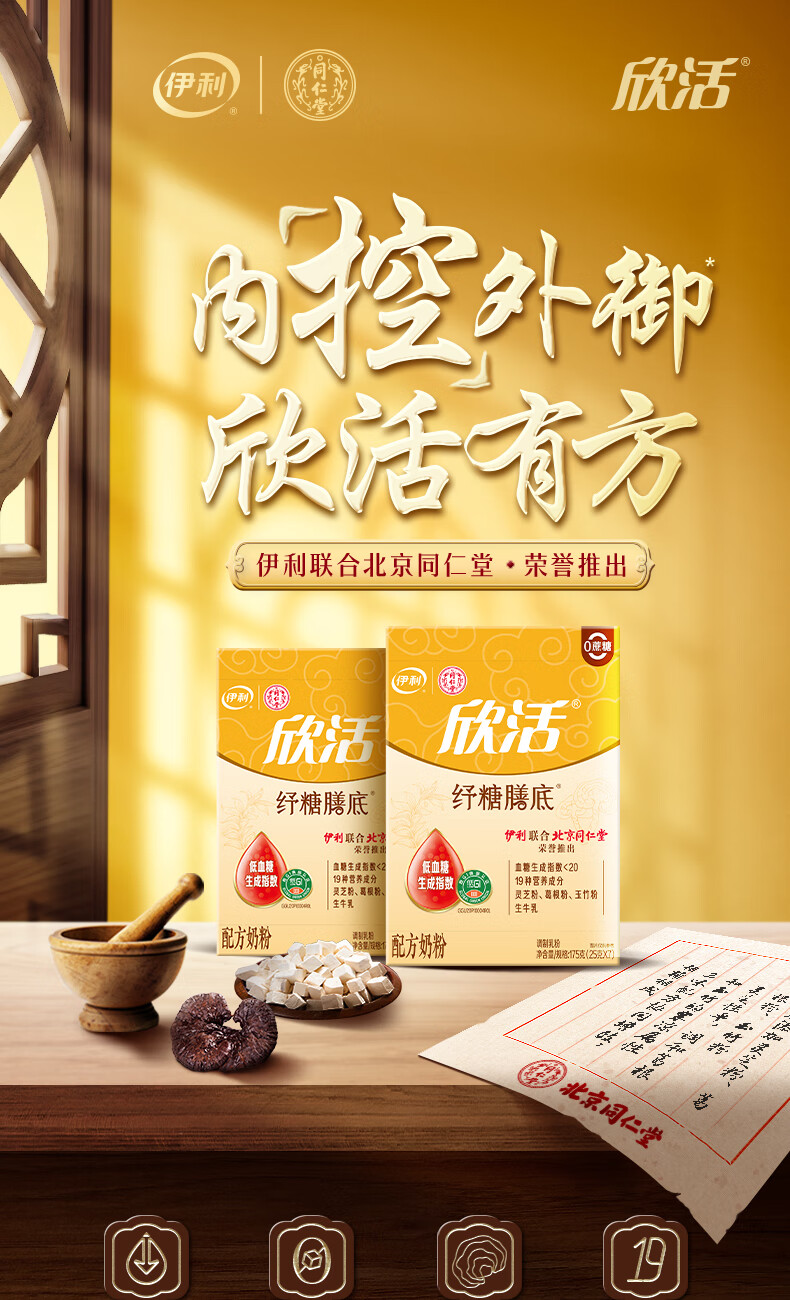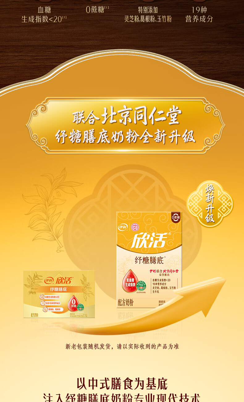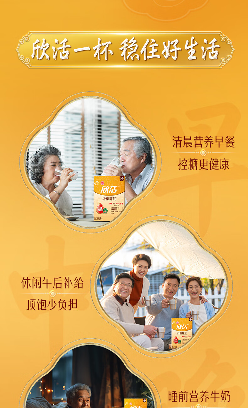 伊利欣活纾糖膳底低GI低嘌呤 中老年奶粉 送礼送长辈 营养品早餐 175g