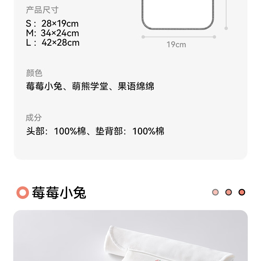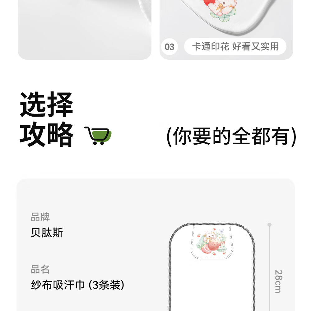 贝肽斯隔汗巾儿童3-6岁纯棉A类大号吸汗巾宝宝婴幼儿园透气垫背 莓莓小兔 3条装 动物 【轻薄4层 10A抗菌】 M码【34*24cm】建议2-6岁