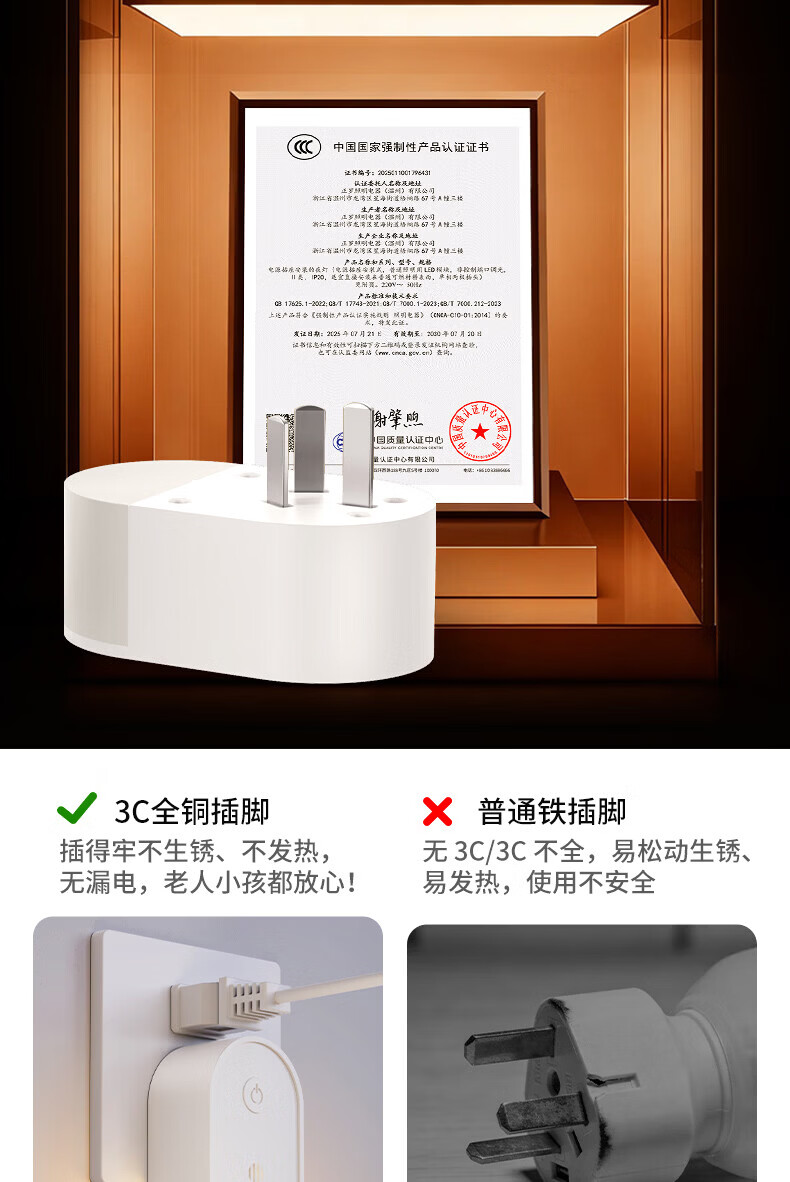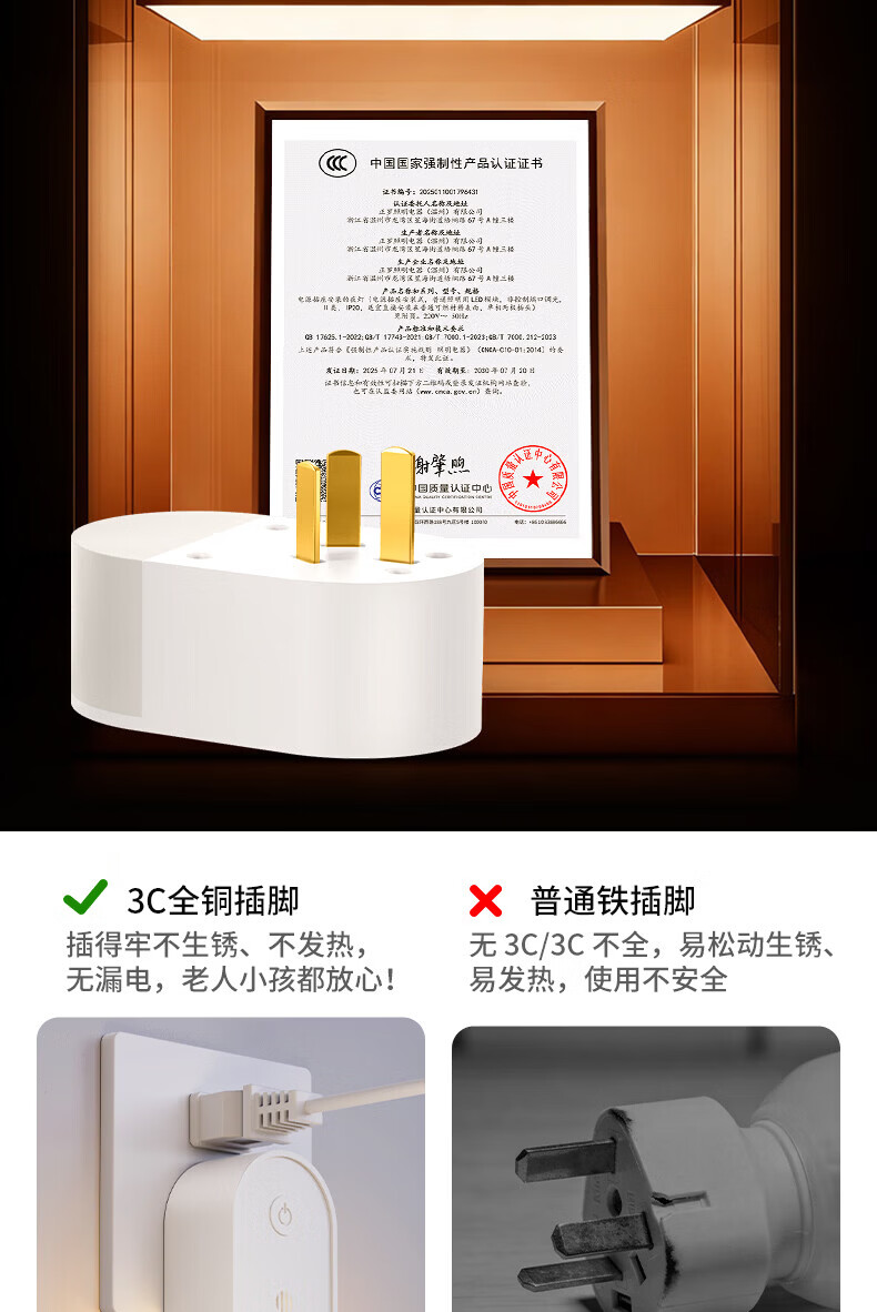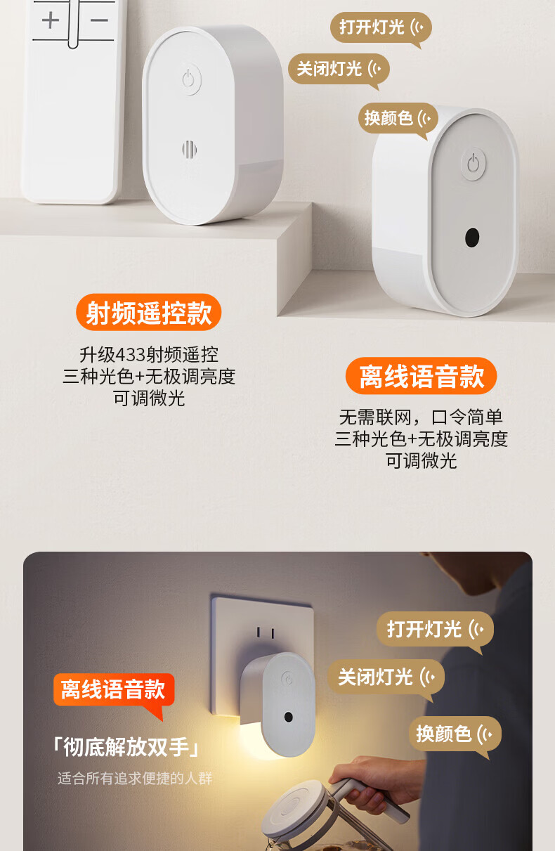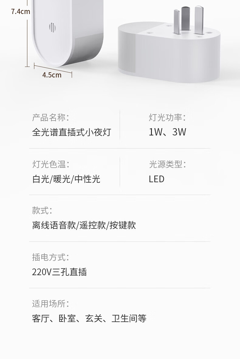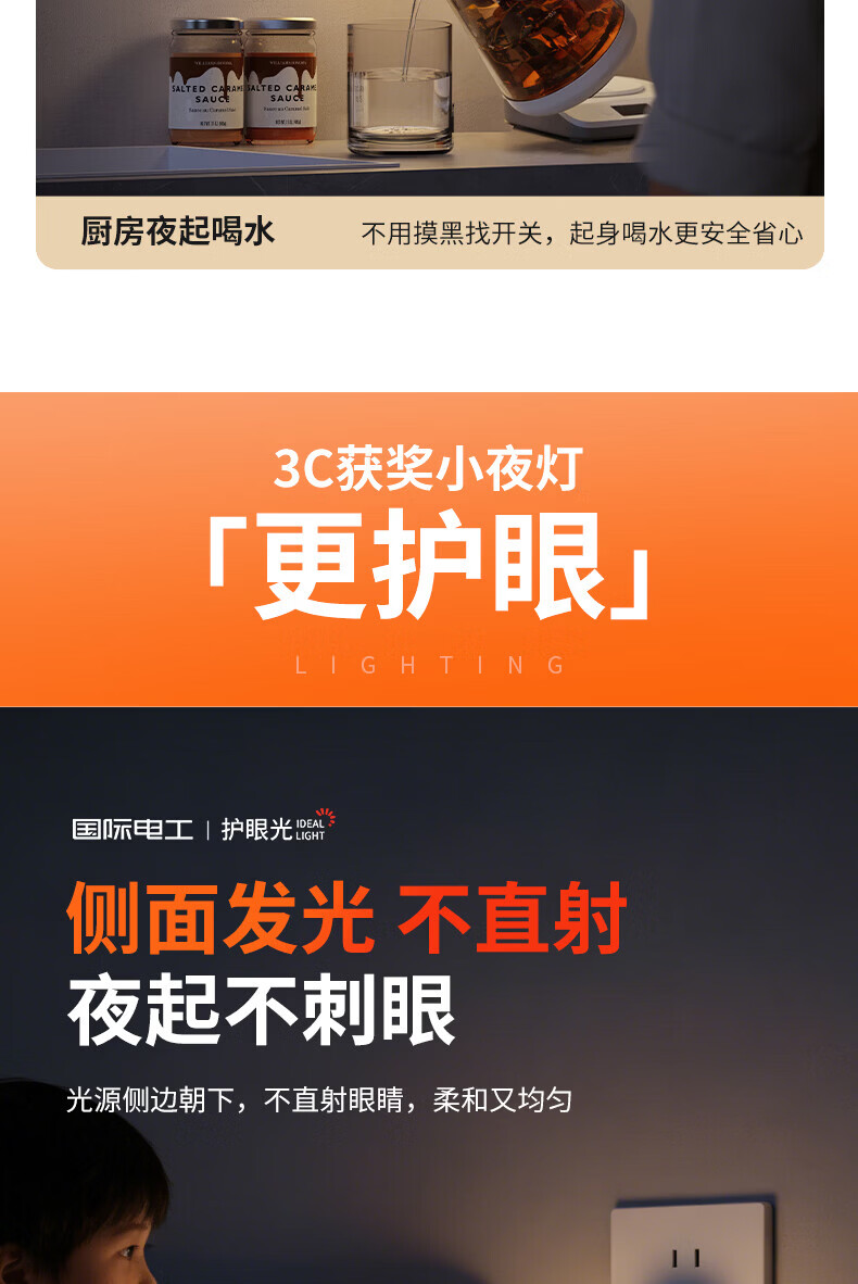 国际电工LED侧发光小夜灯卧室床头宿舍全光谱护眼遥控语音控制起夜睡眠灯 侧发光小夜灯【按键款 1W】