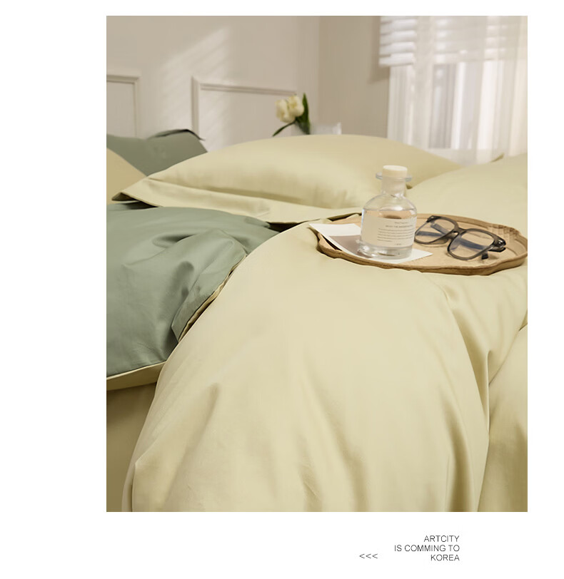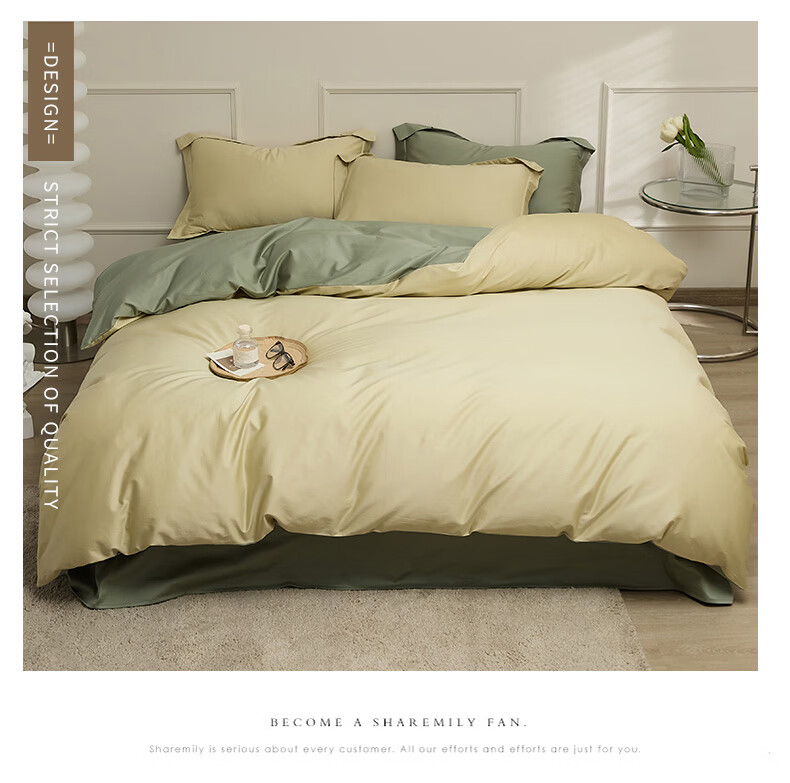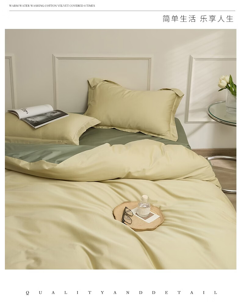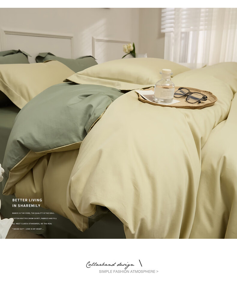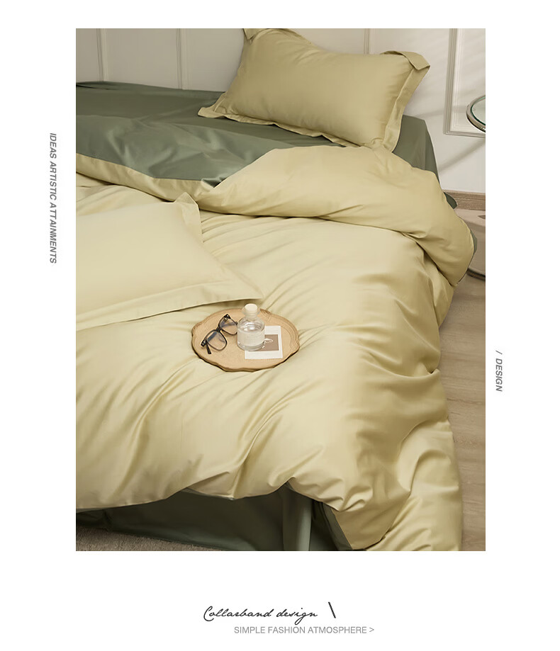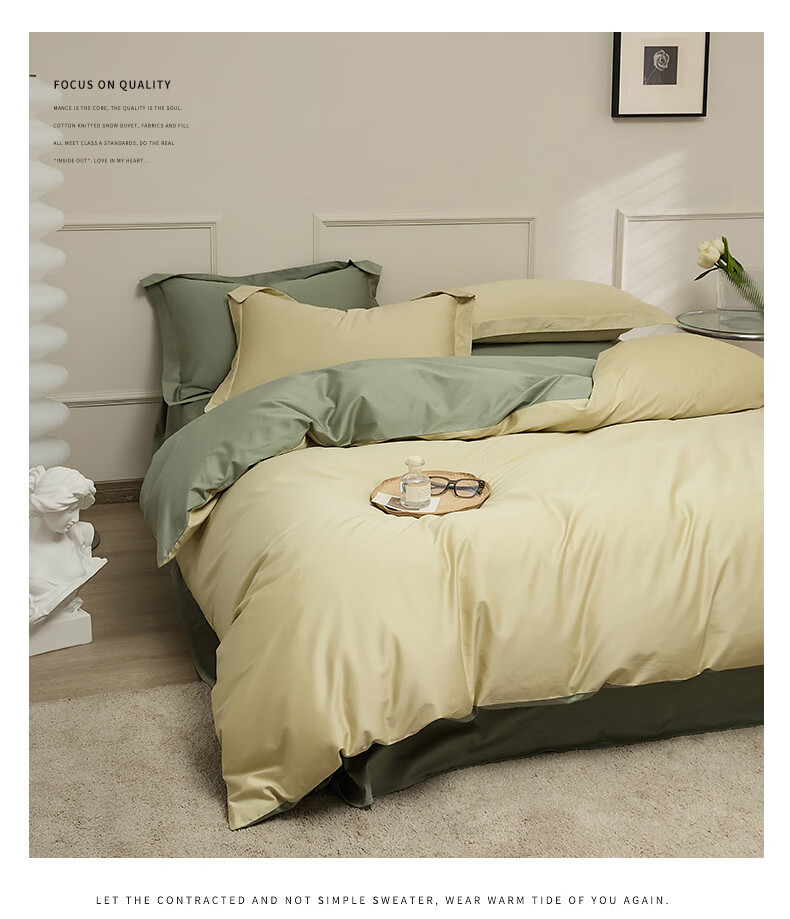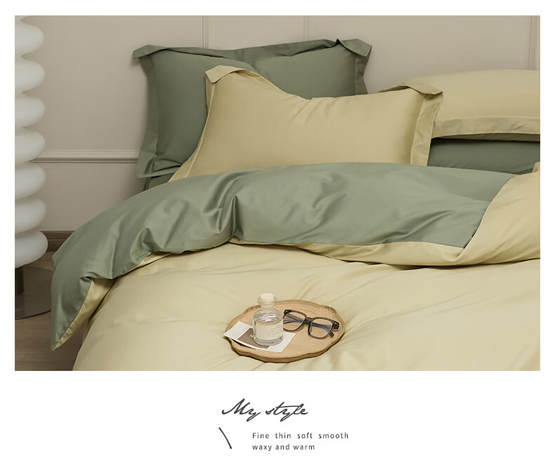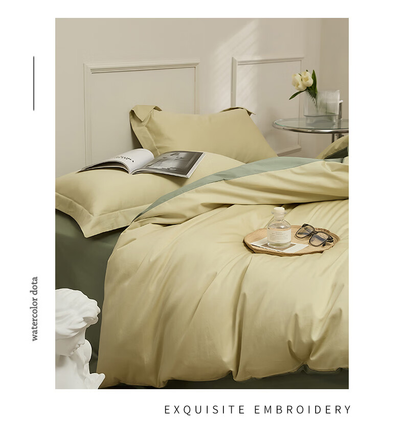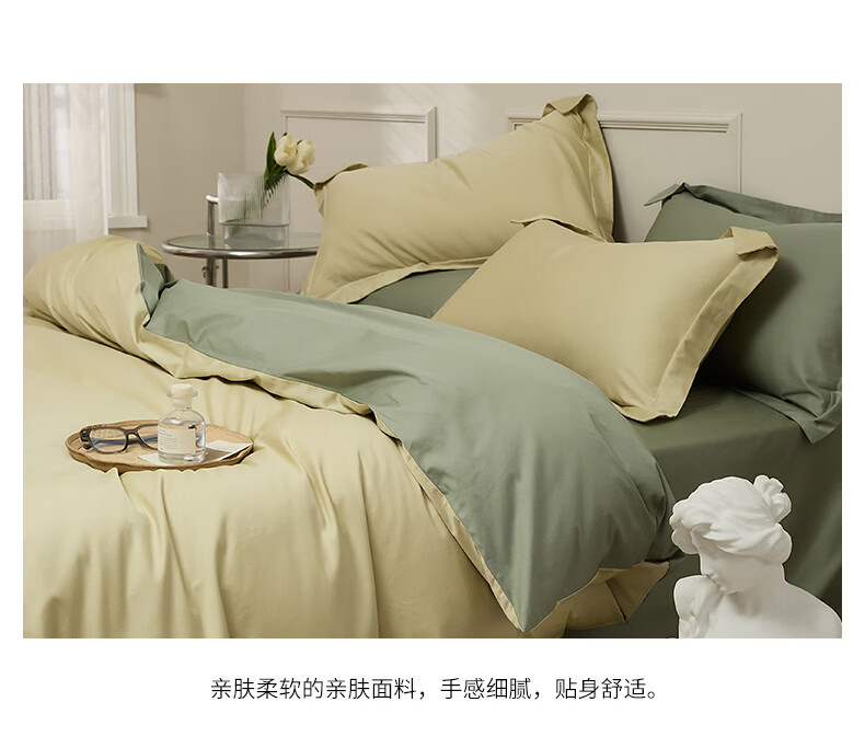无印良品新疆长绒棉全棉四件套纯棉床单被套轻奢高级感家用床笠款床上用品 白茶-草绿 【新疆长绒棉 适合裸睡】 1.8m 床单款 四件套-被套200x230cm