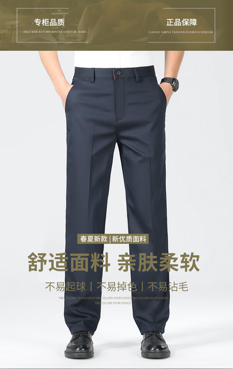 SHANSHAN杉杉【亚麻凉感】休闲裤子男春秋商务休闲直筒通勤百搭 亚麻黑 29 /160