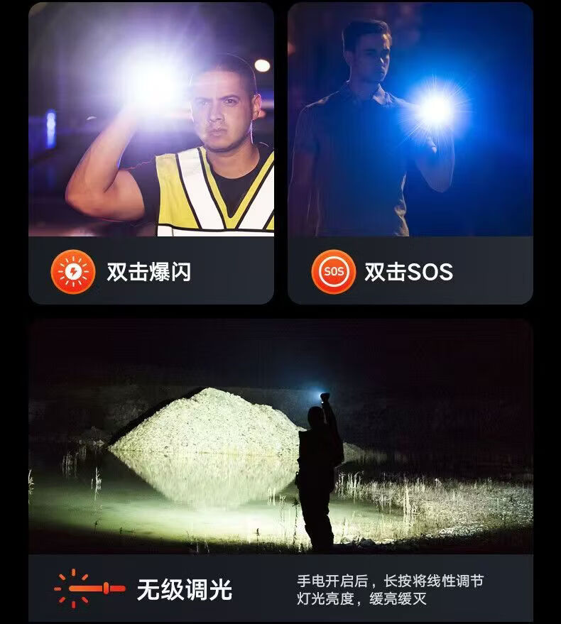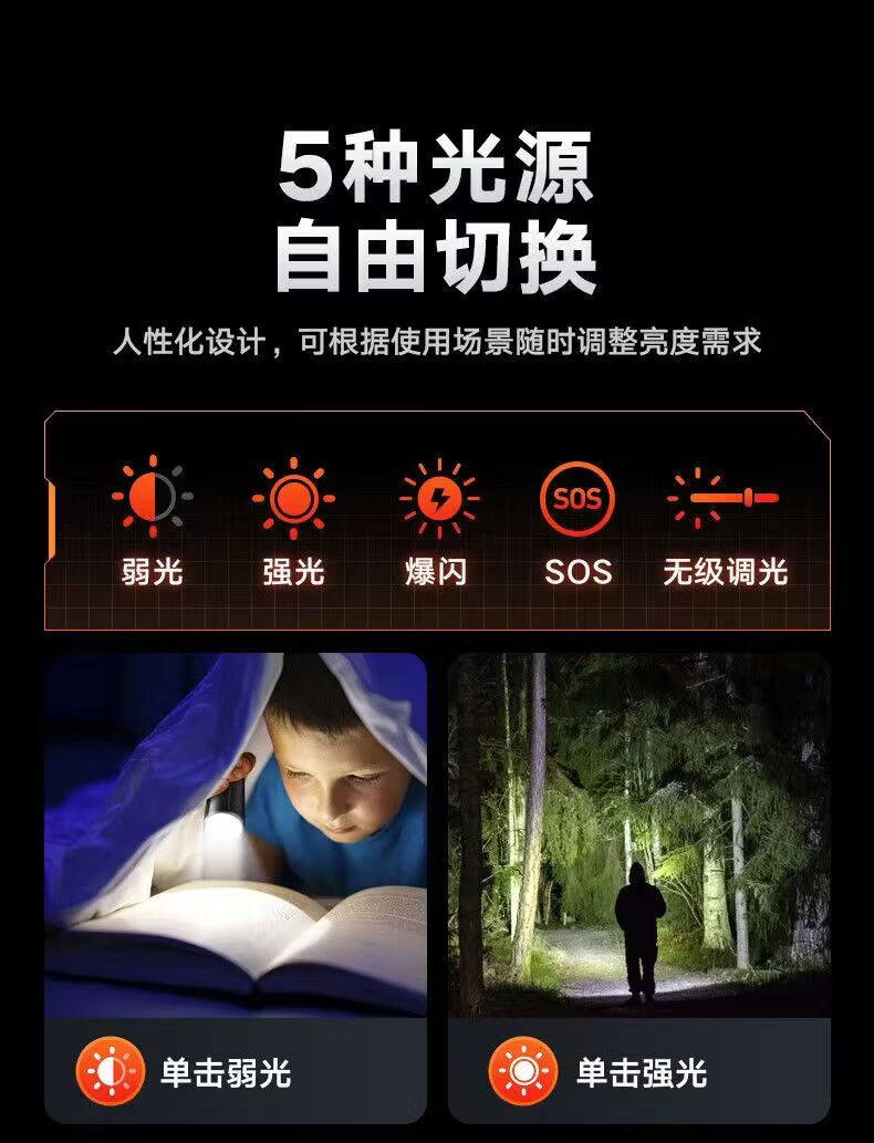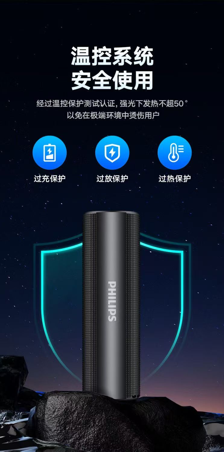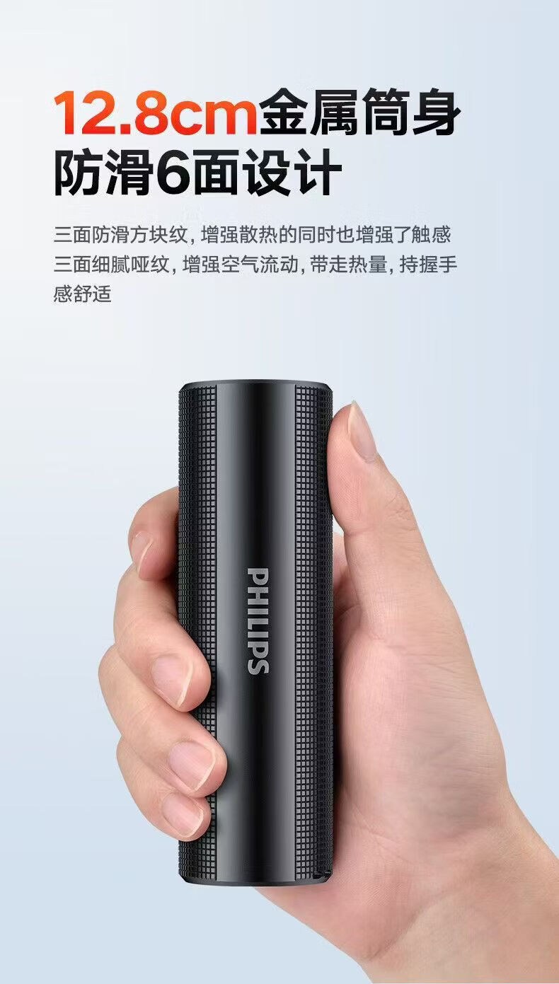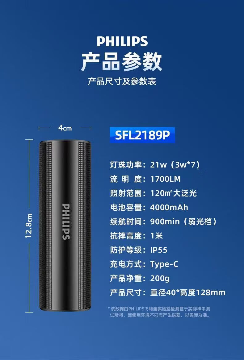 飞利浦(PHILIPS)强光手电筒高亮泛光7核灯珠便携户外应急照明灯低光15H长续航SFL2189P 21W/4000毫安/定焦泛光/SFL2189P