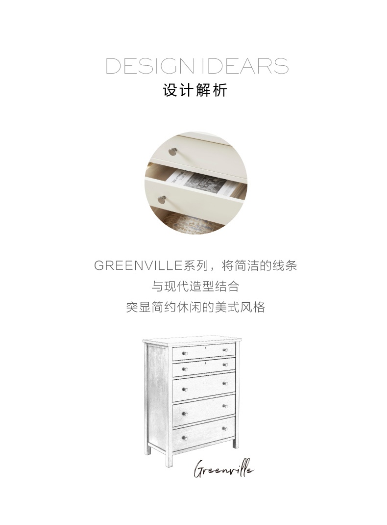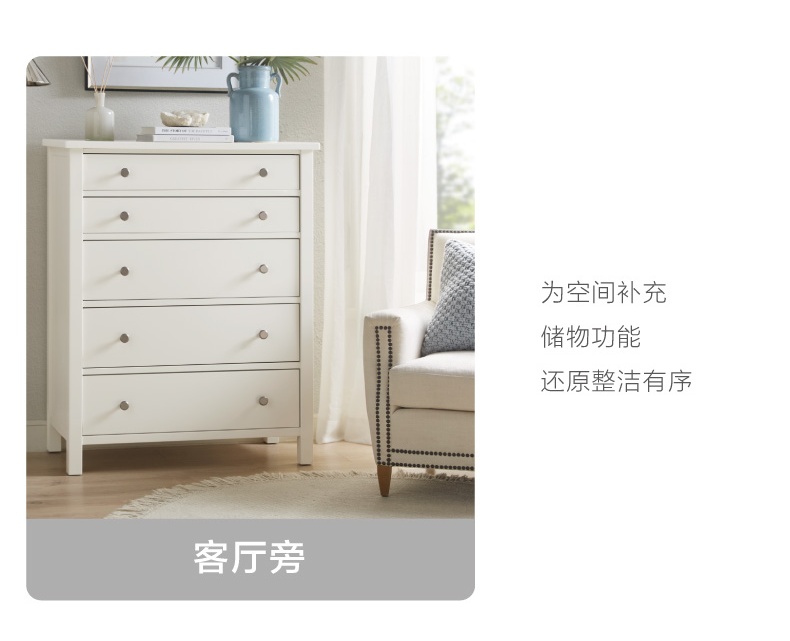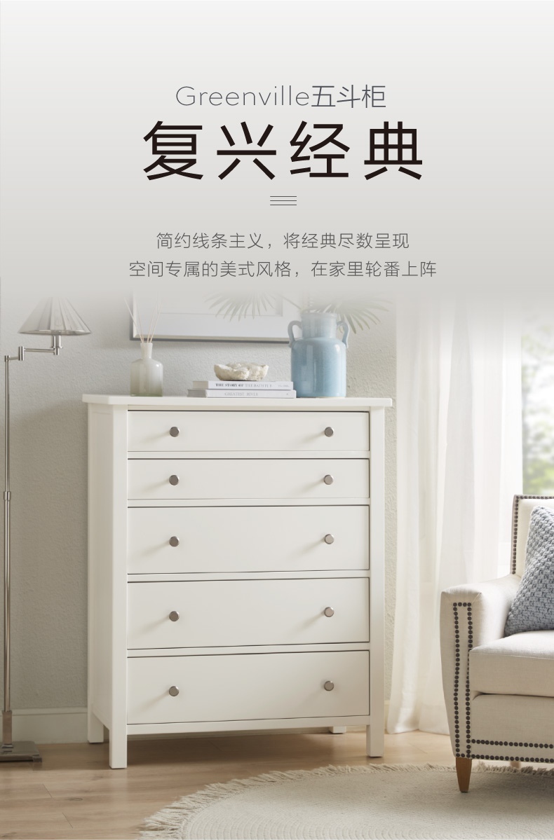 Harbor House【政府补贴】美式五斗柜抽柜储物柜卧室客厅收纳柜家具Greenville 五斗柜【奶白色】