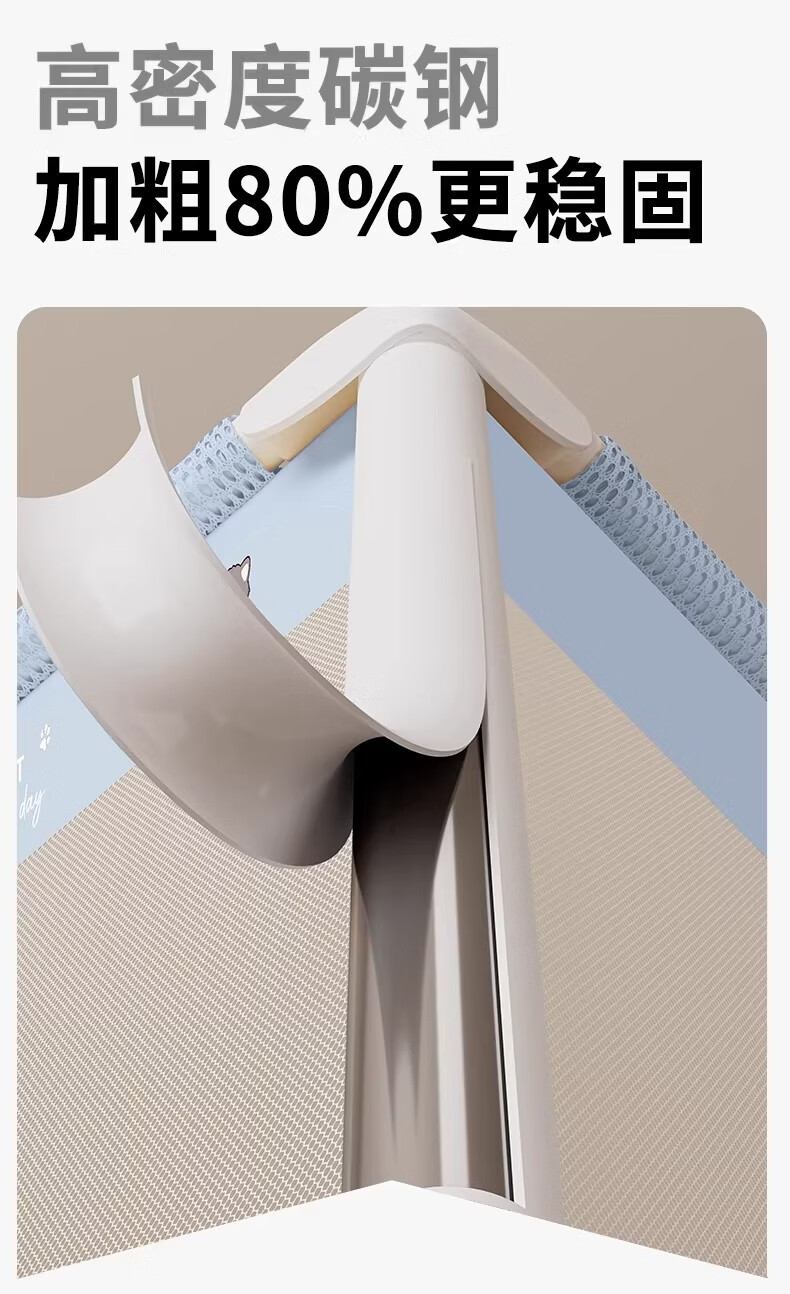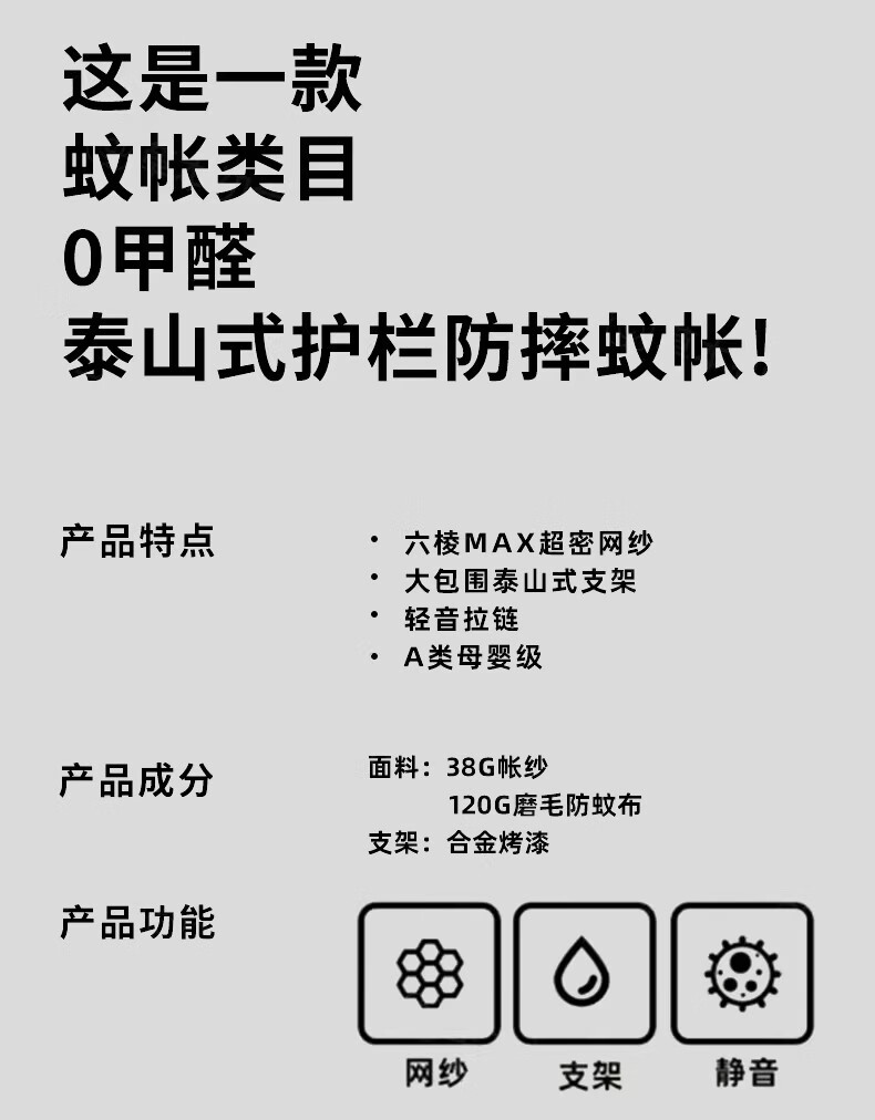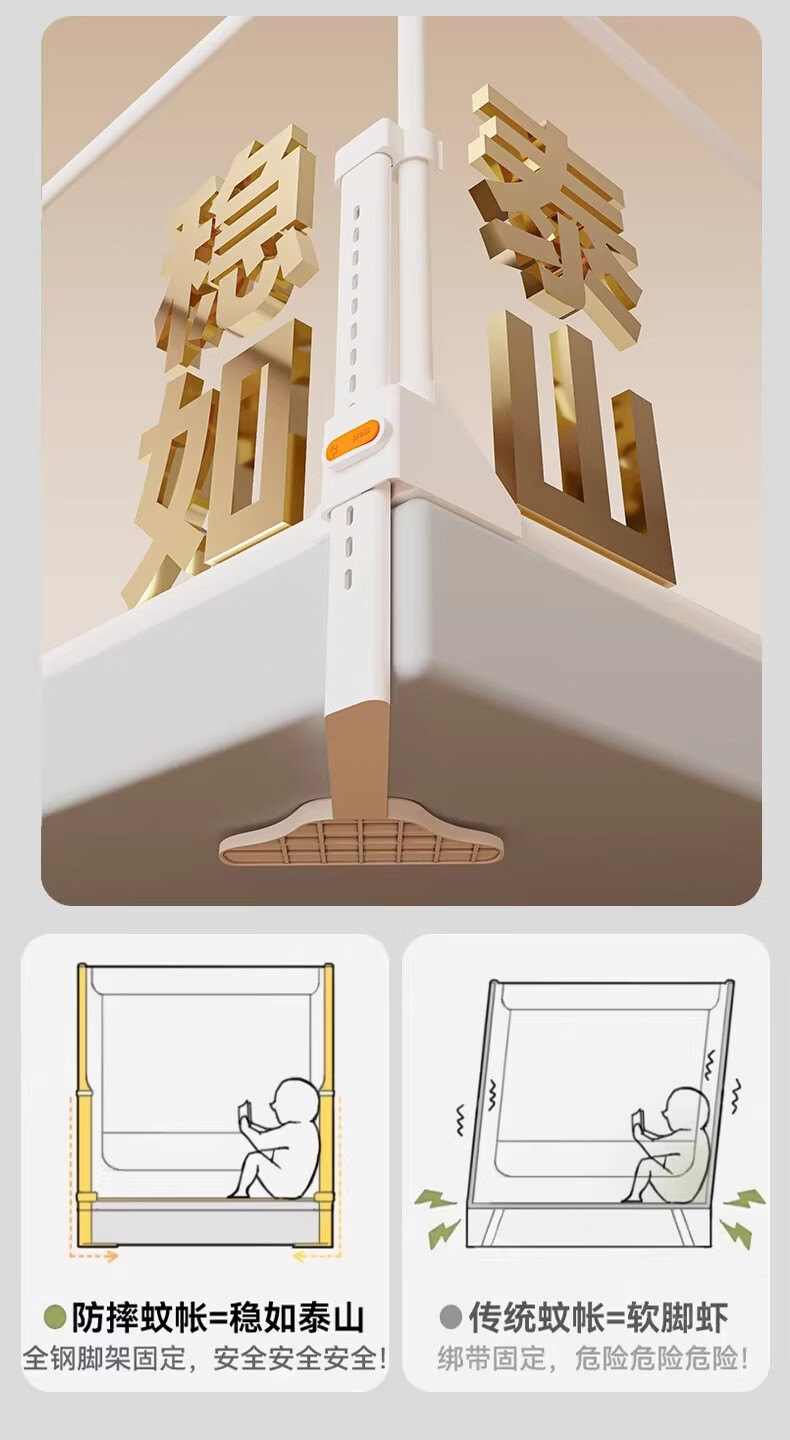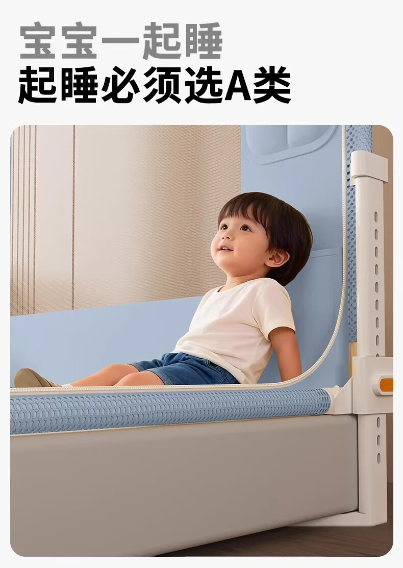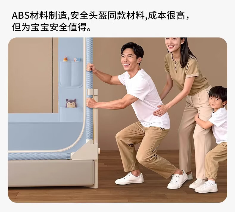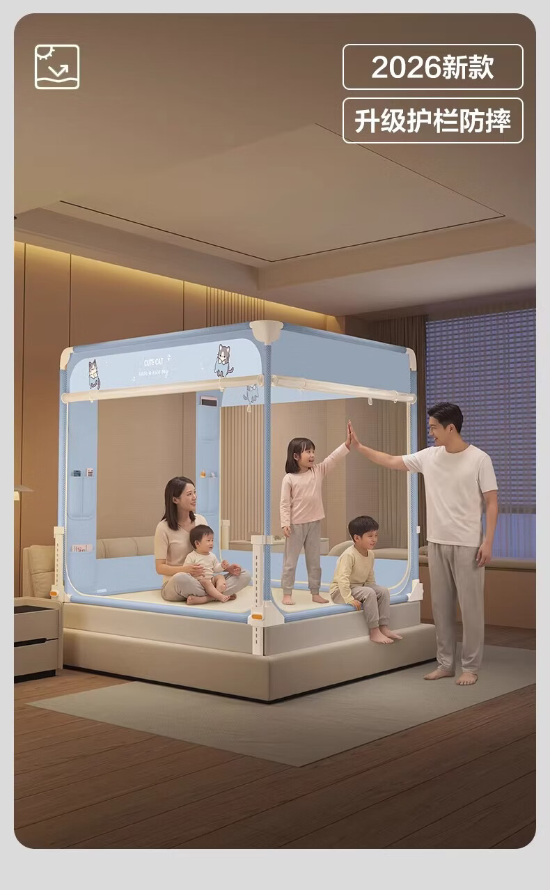 无印良品A类围栏防摔蚊帐1.5米x2米婴儿童家用卧室1.8m大床可升降蚊帐支架 腊肠狗之家【单帐纱】 1.5m床-宽150x长200x高170cm【围栏支架】
