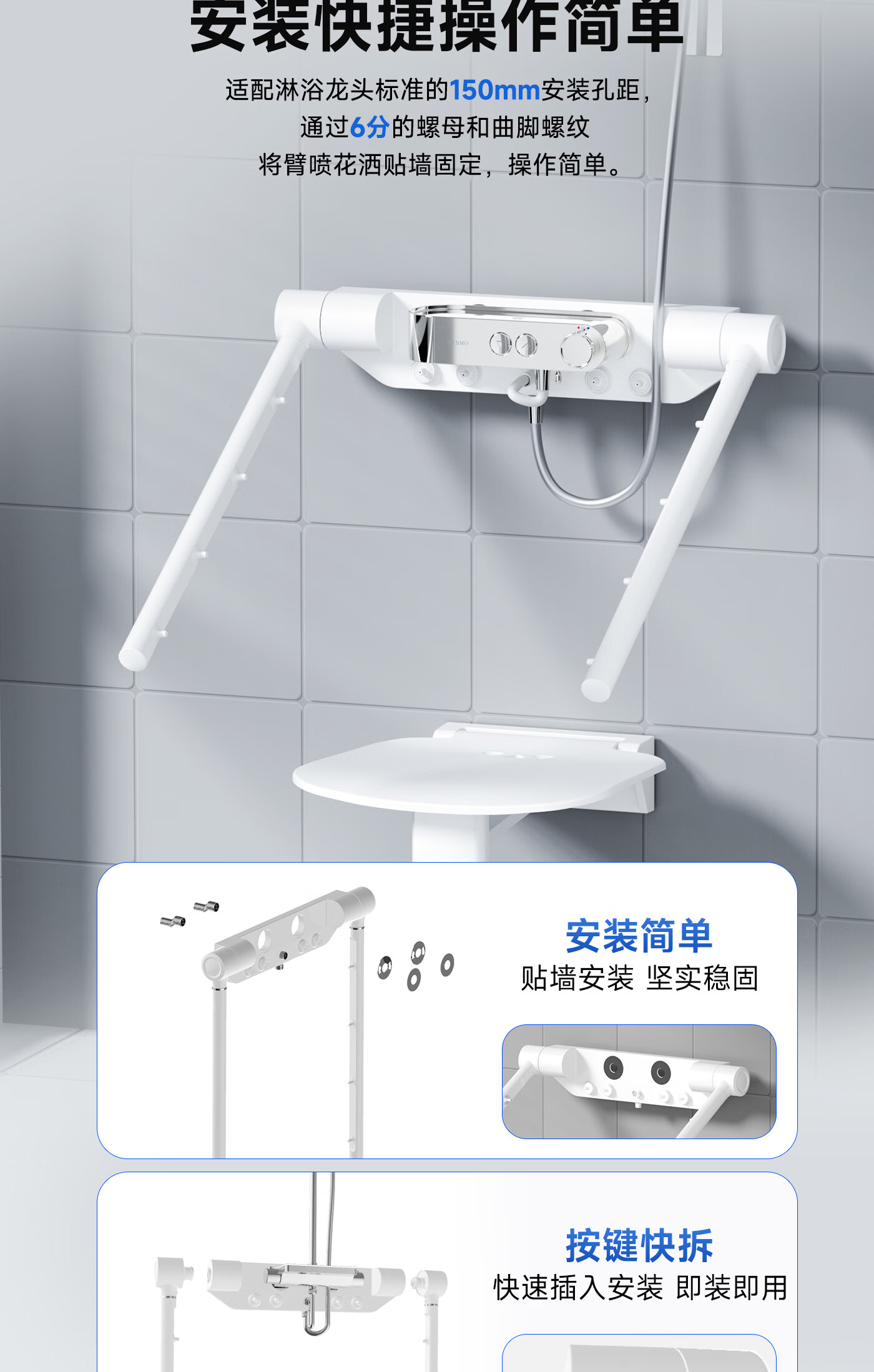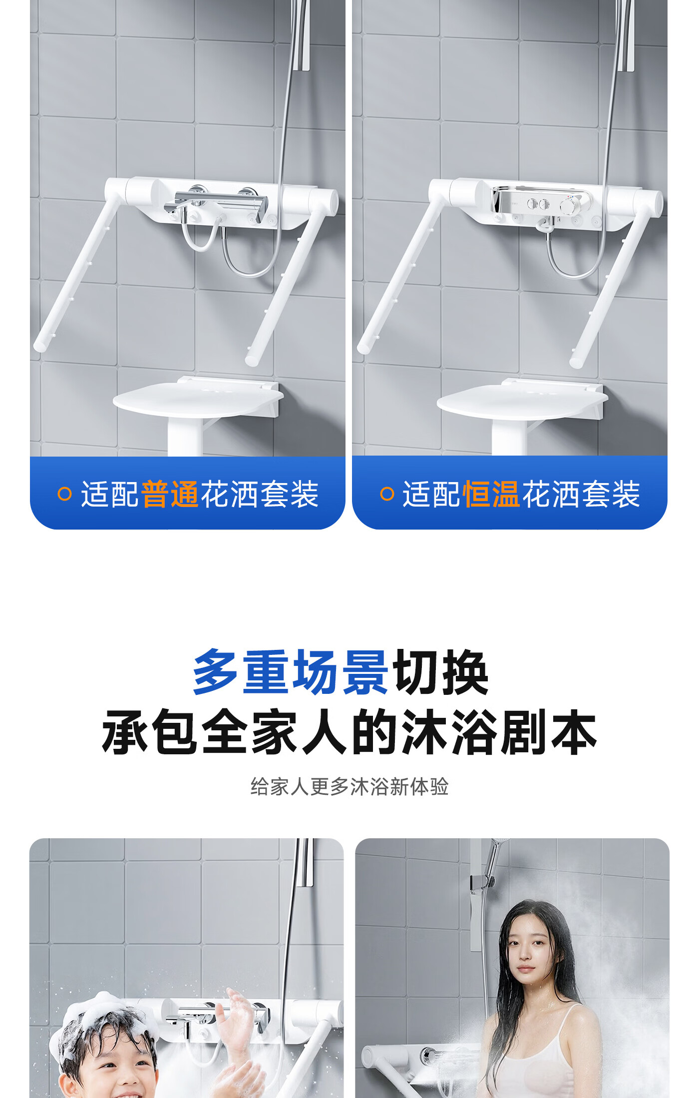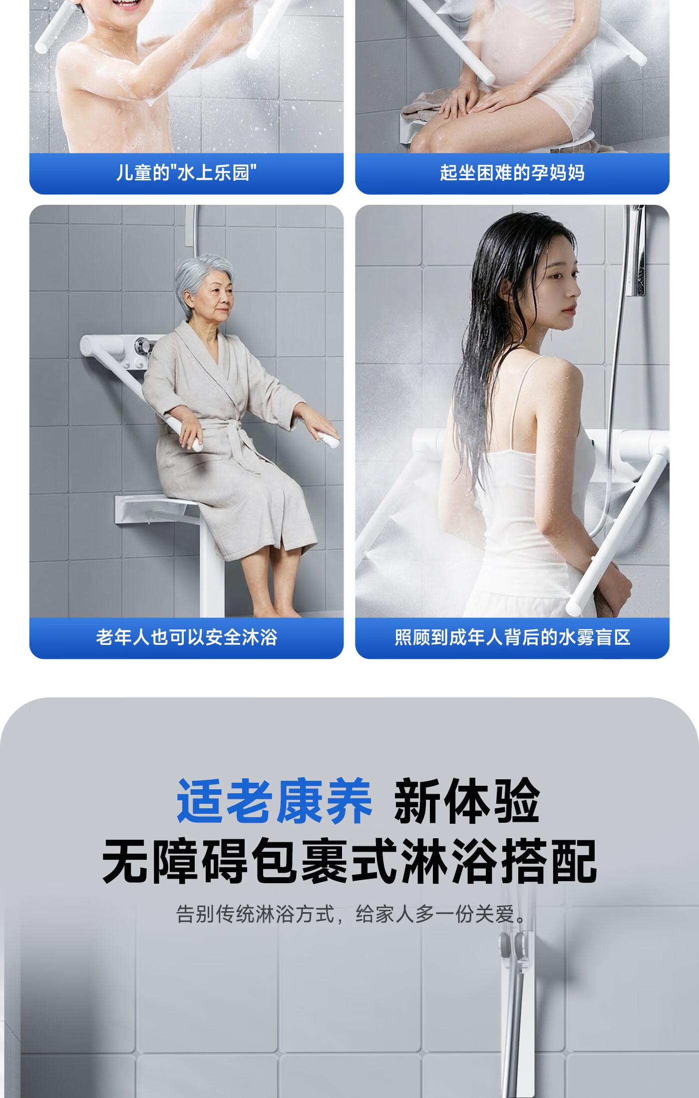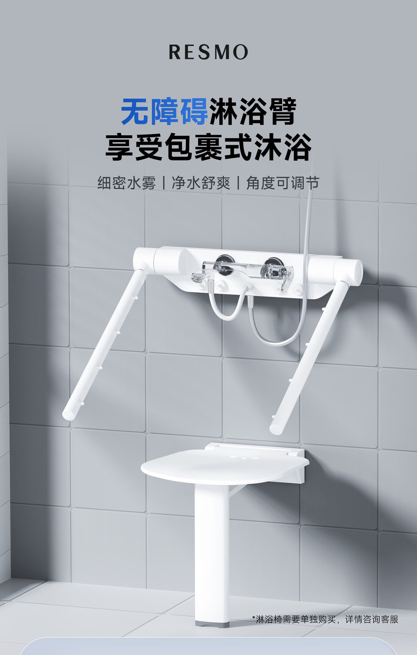 RESMO淋浴臂老人洗澡包裹式坐式淋浴包安装 单独淋浴椅