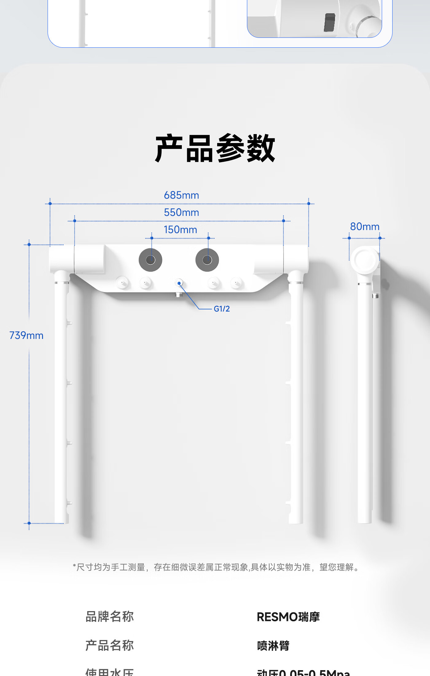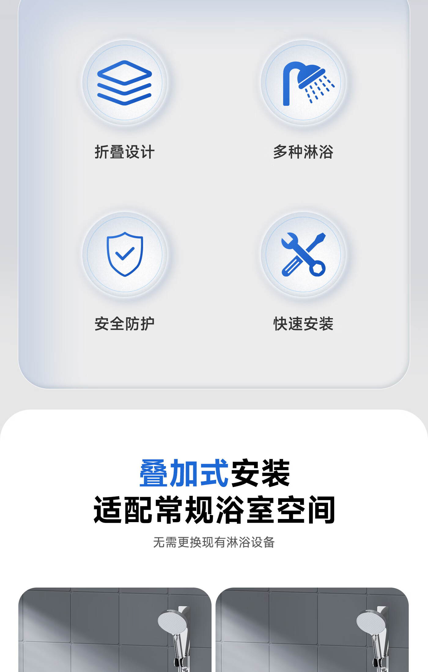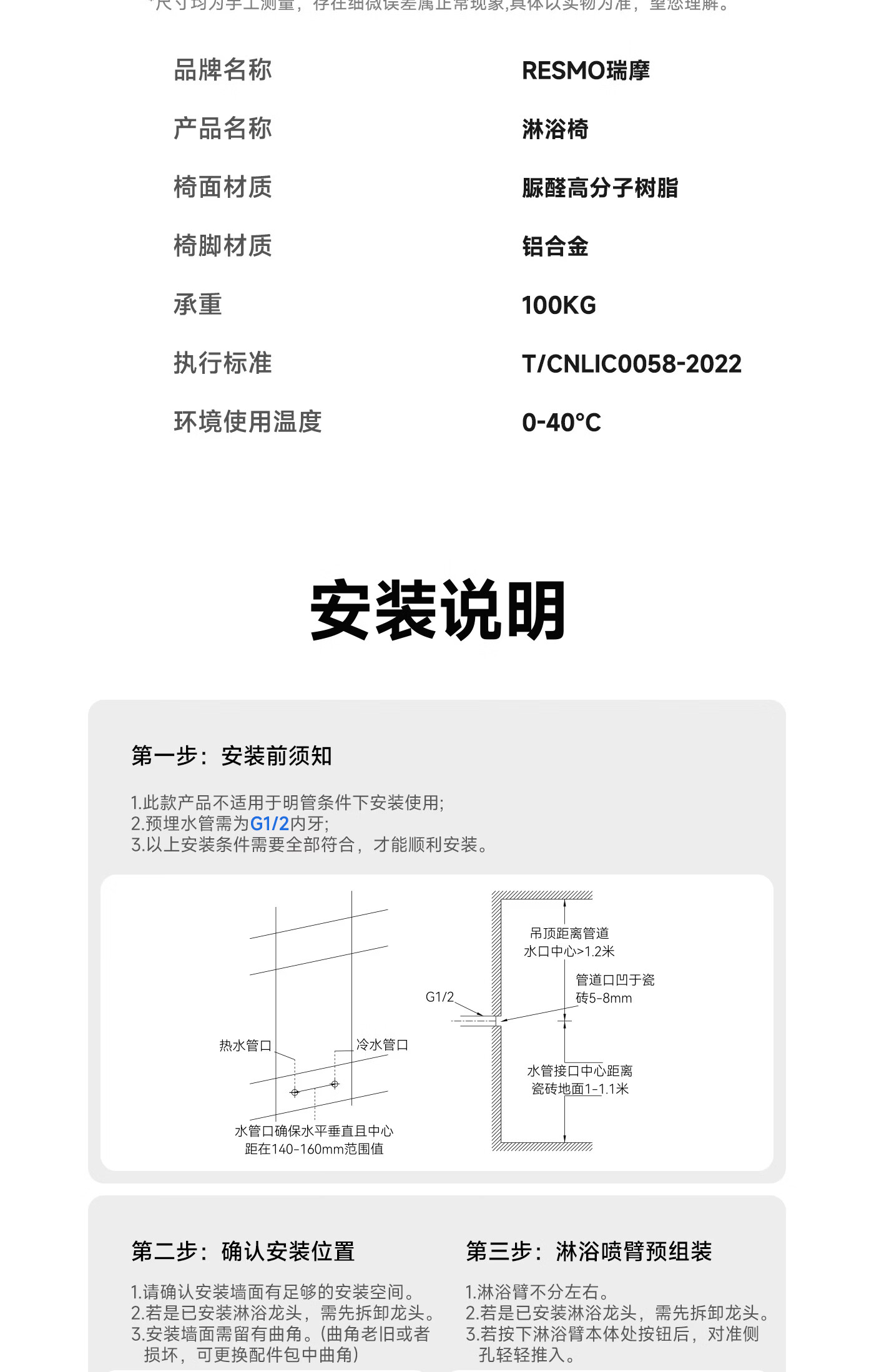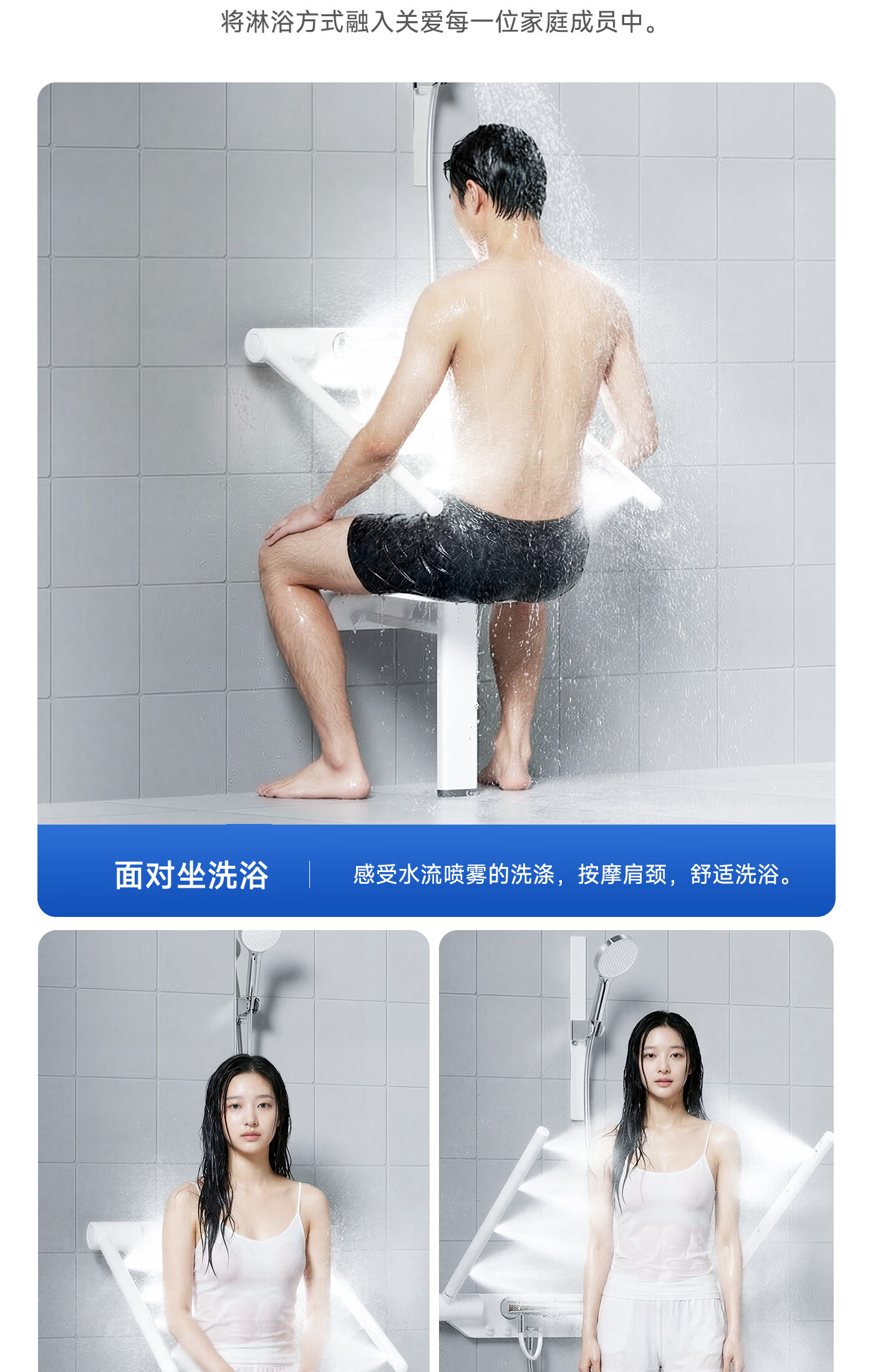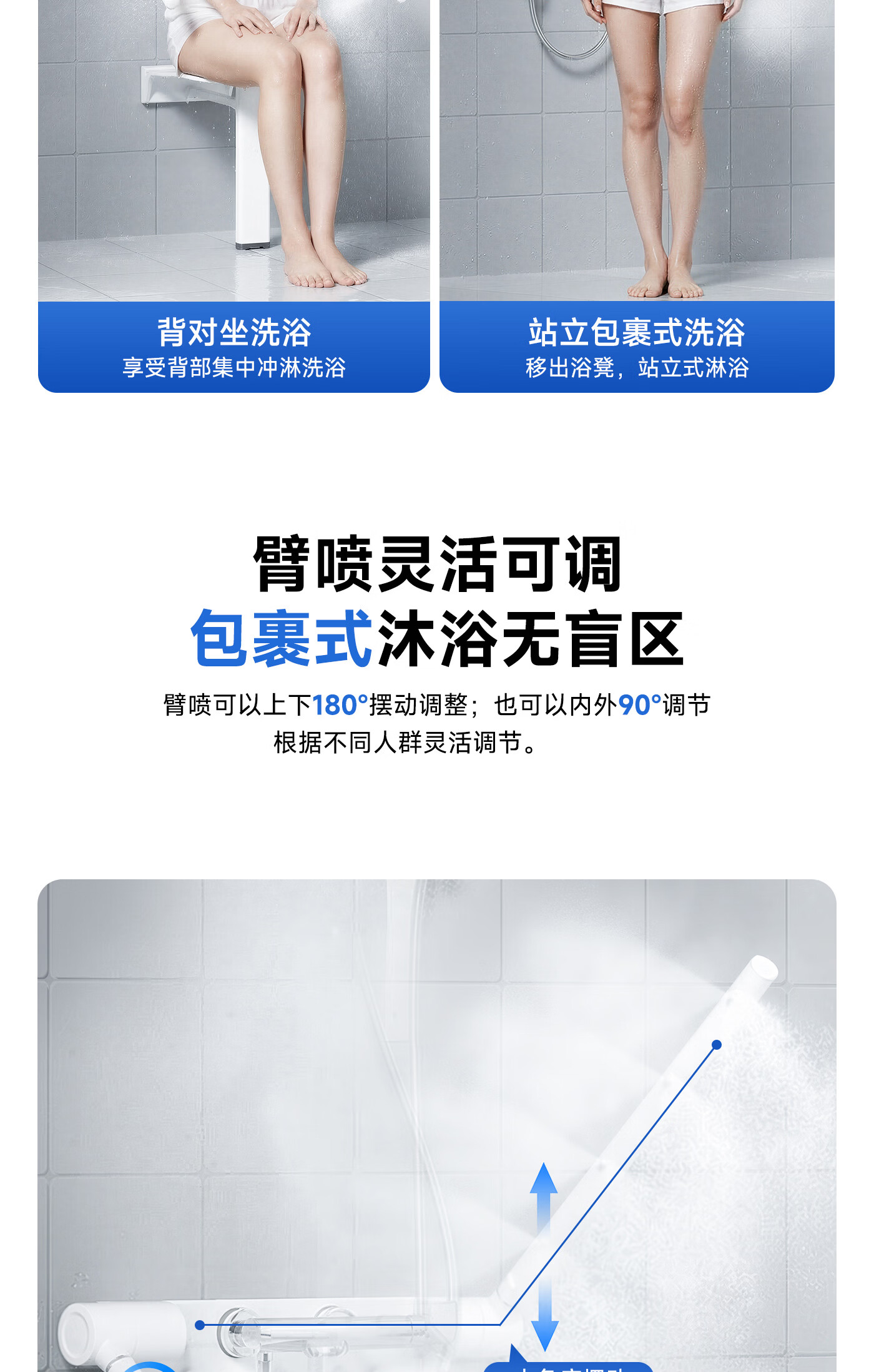 RESMO淋浴臂老人洗澡包裹式坐式淋浴包安装 单独淋浴椅