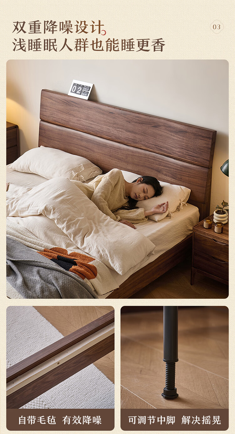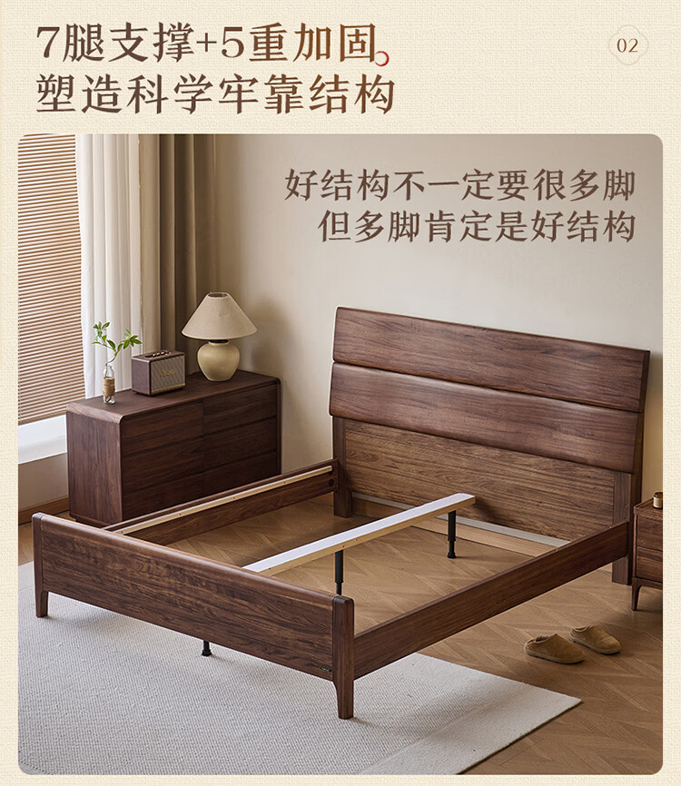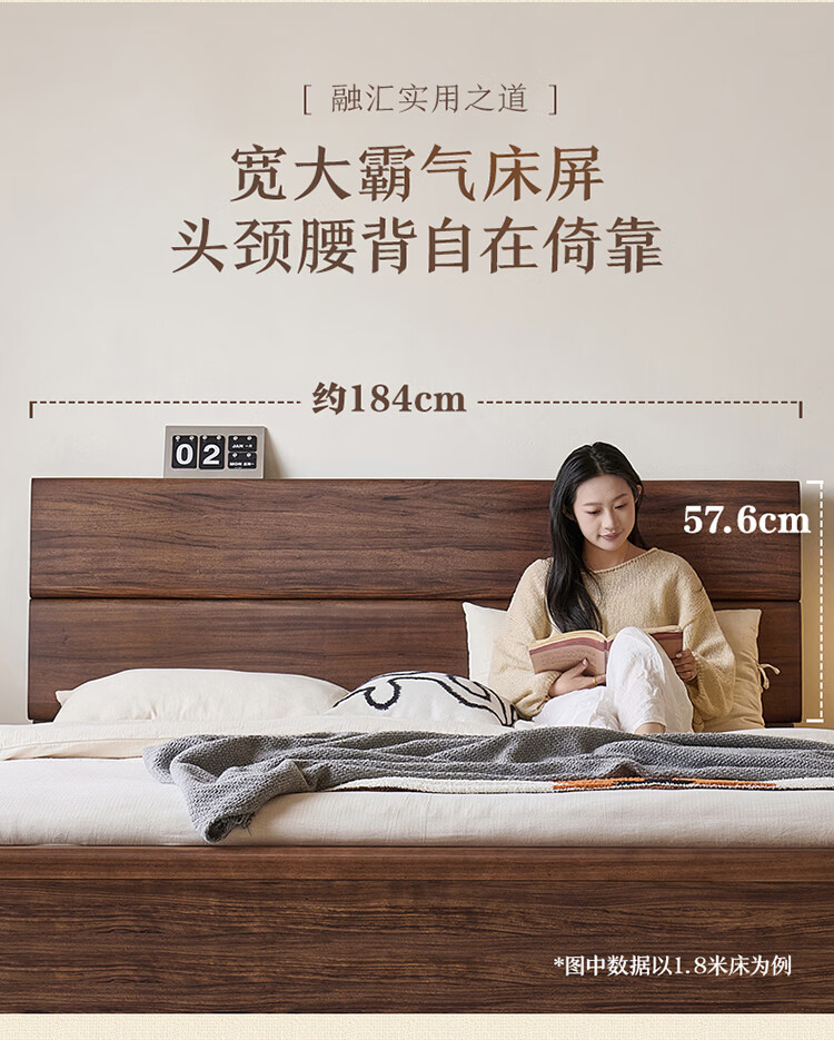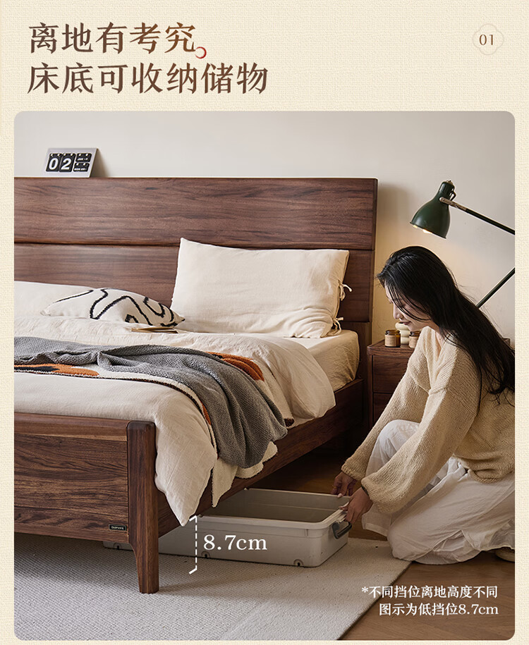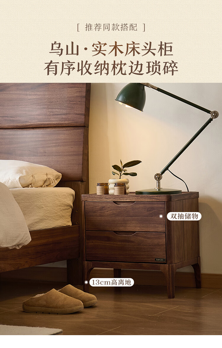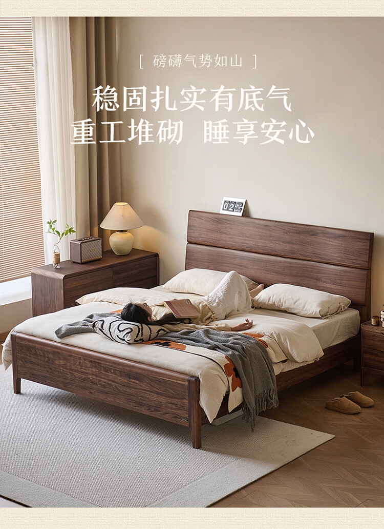全友家居新中式乌金木实木床2026新款双人大床主卧高脚储物床带床垫子 【乌金木 | 床高可调】 1.5x2.0米 床+床垫