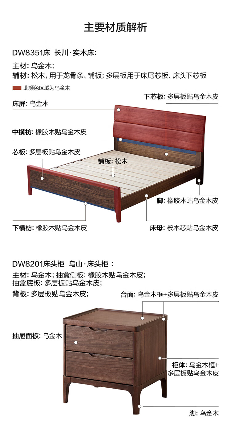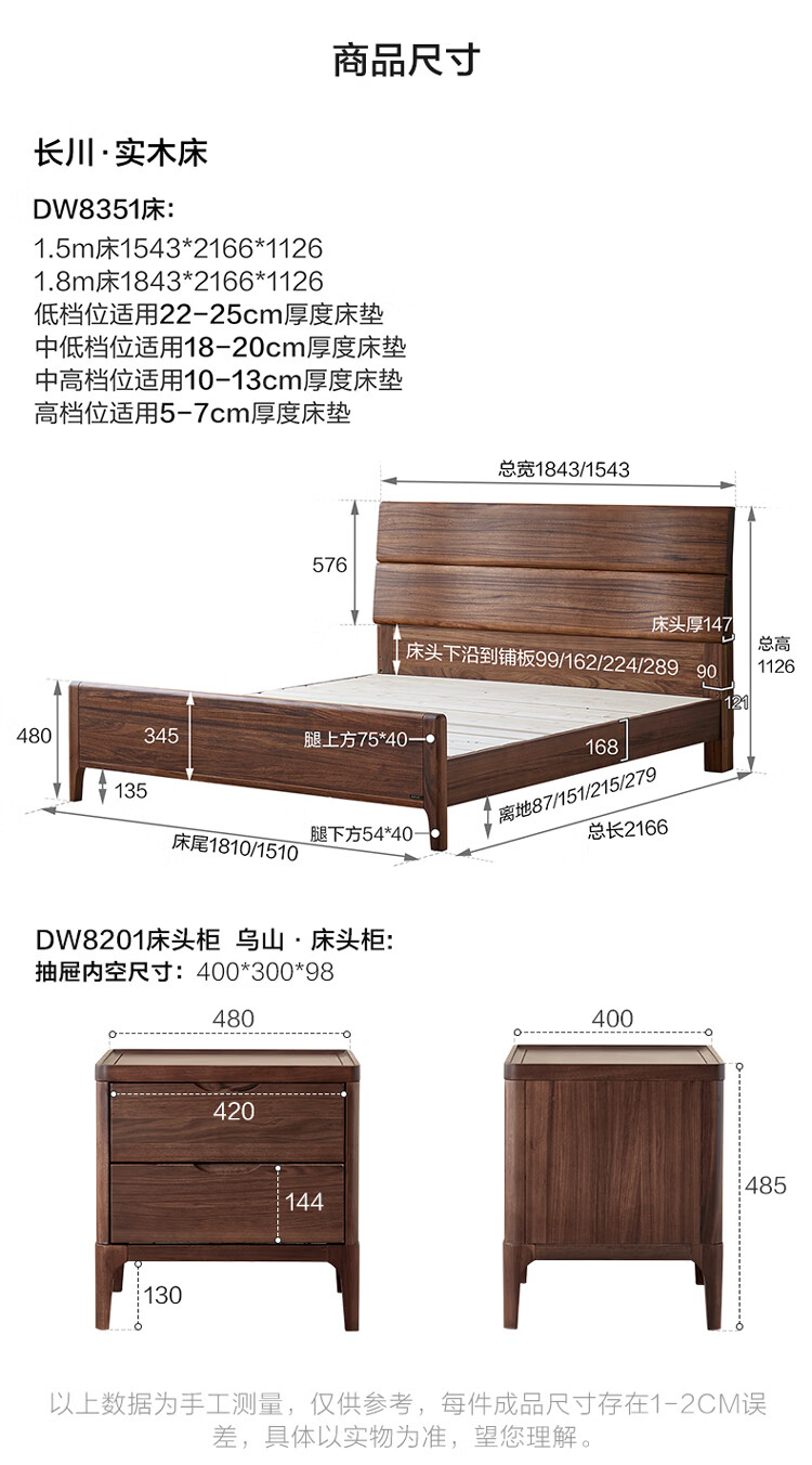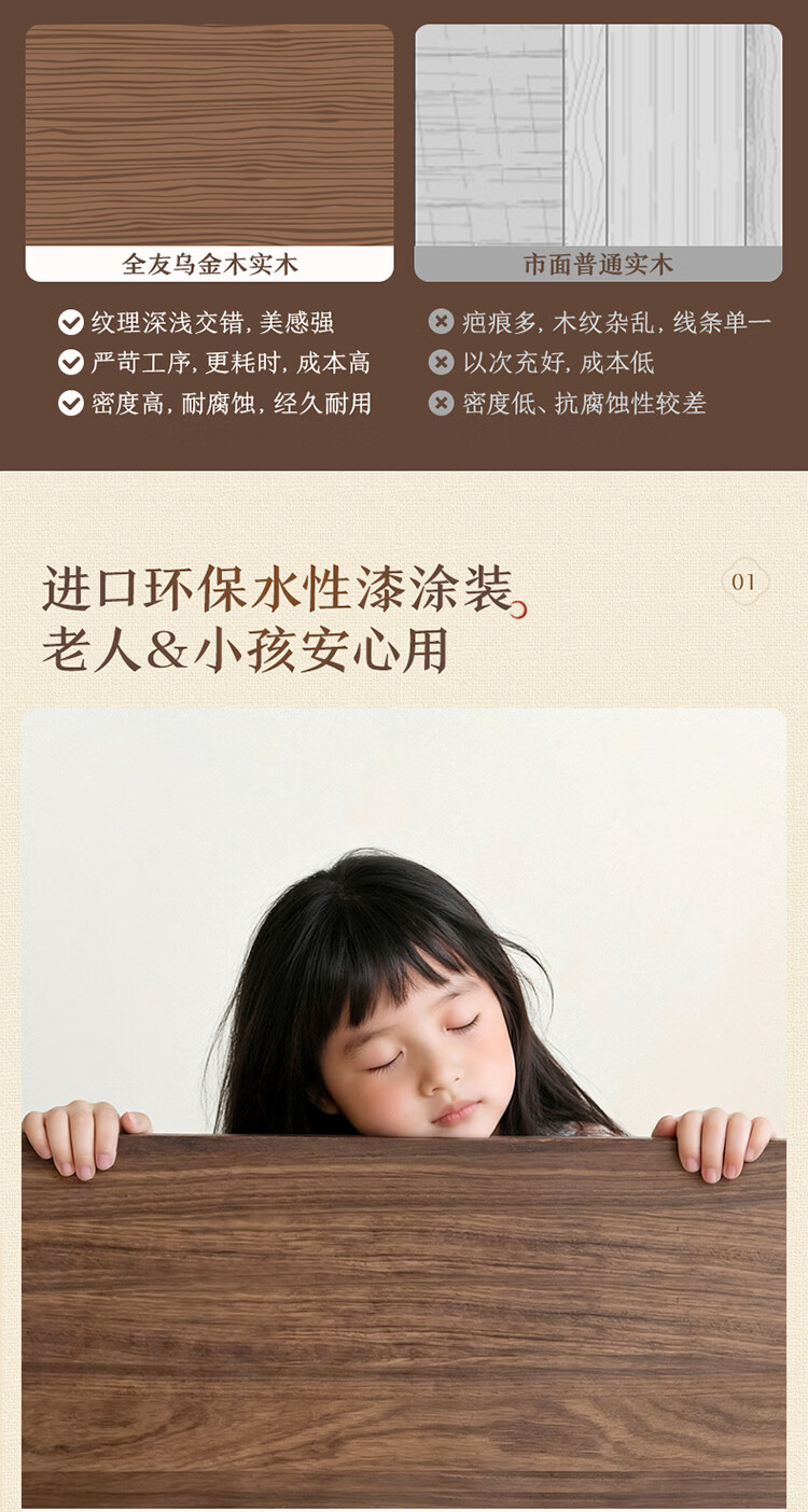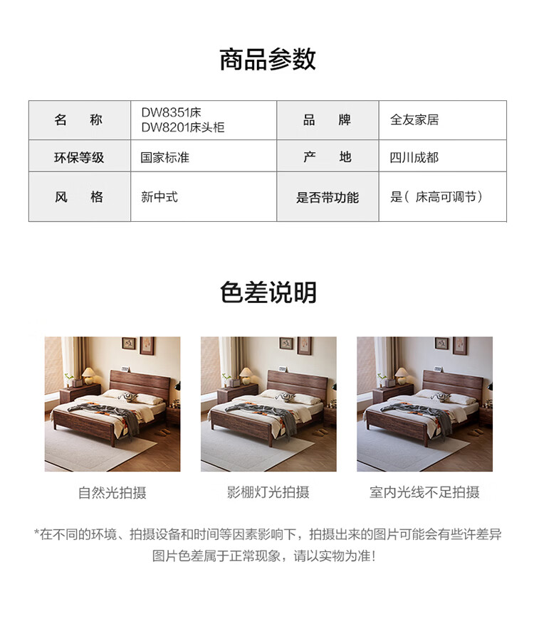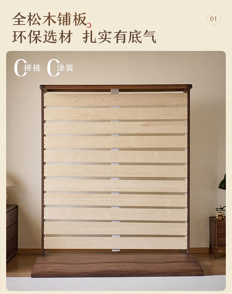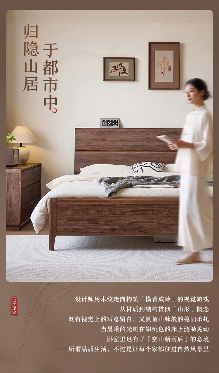 全友家居新中式乌金木实木床2026新款双人大床主卧高脚储物床带床垫子 【乌金木 | 床高可调】 1.5x2.0米 床+床垫