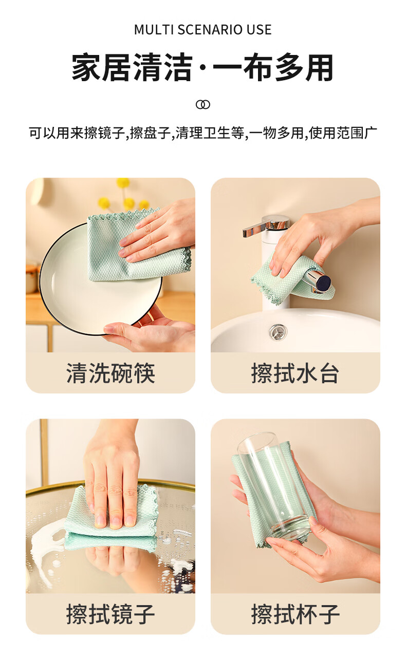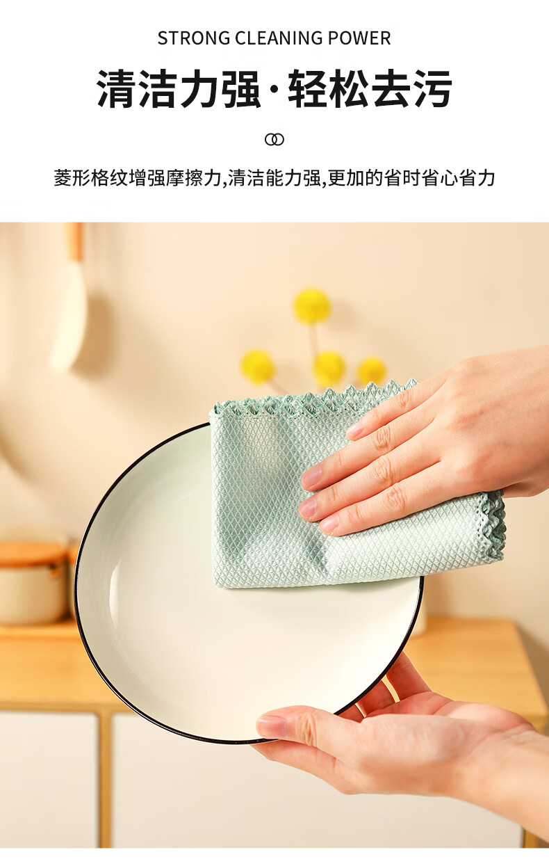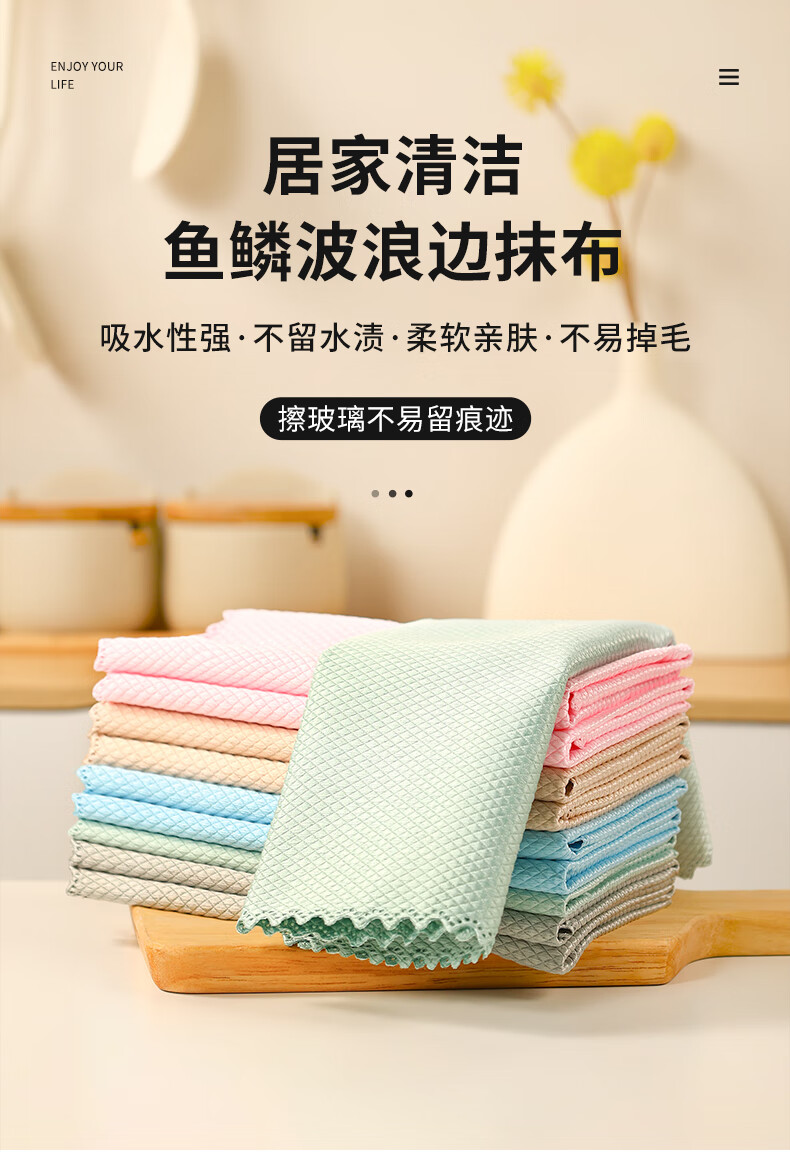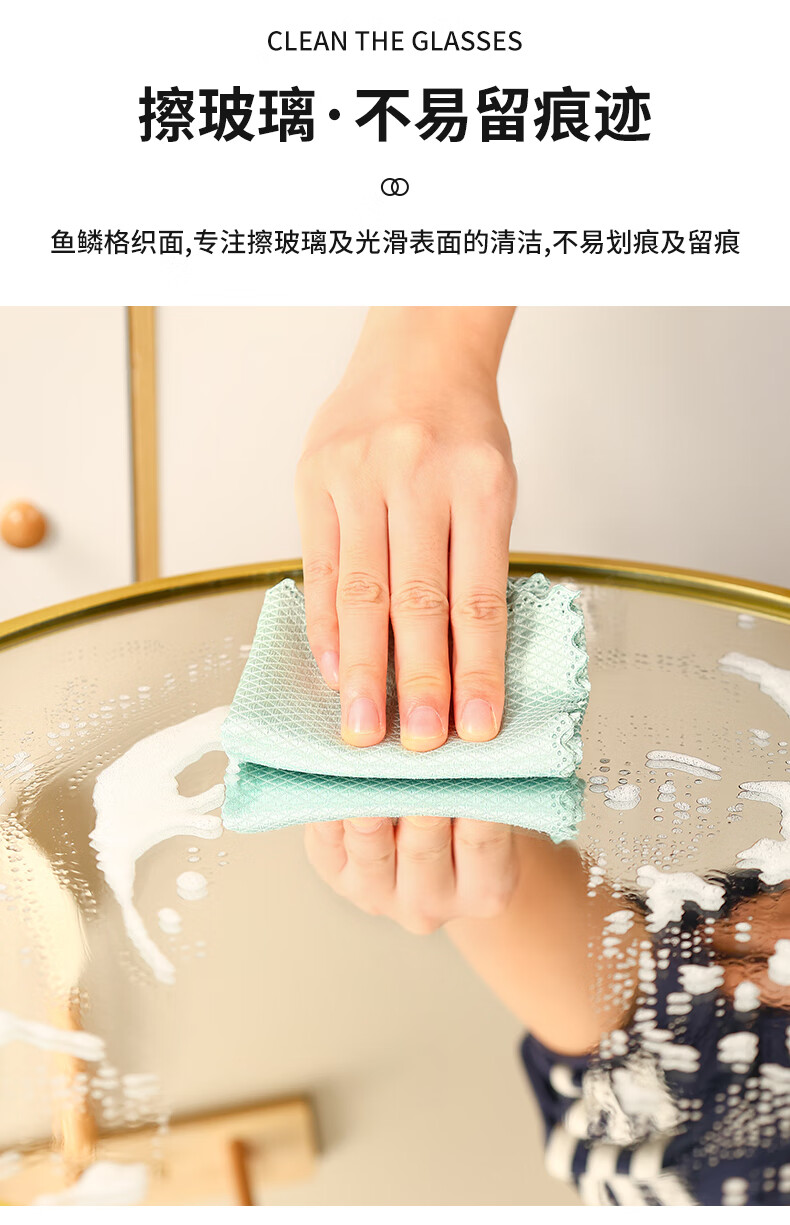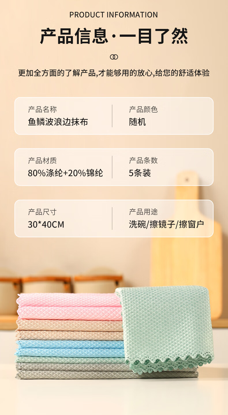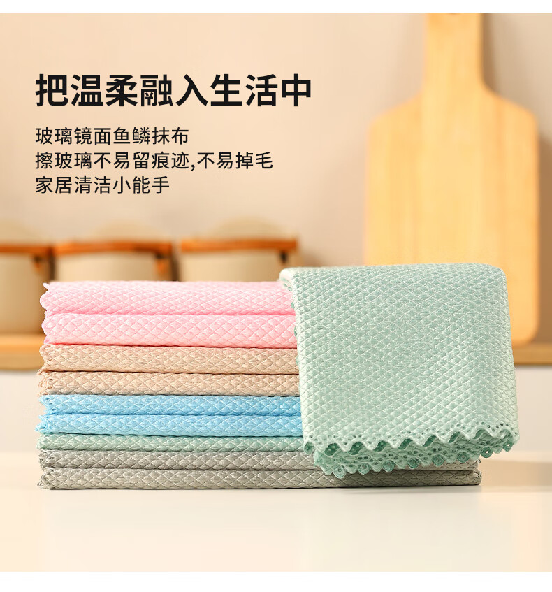 洁丽雅(Grace)鱼鳞抹布30*40cm*5条厨房餐具擦拭家务清洁擦玻璃巾