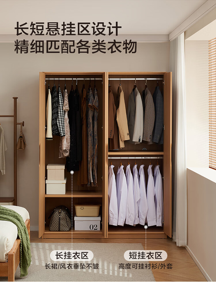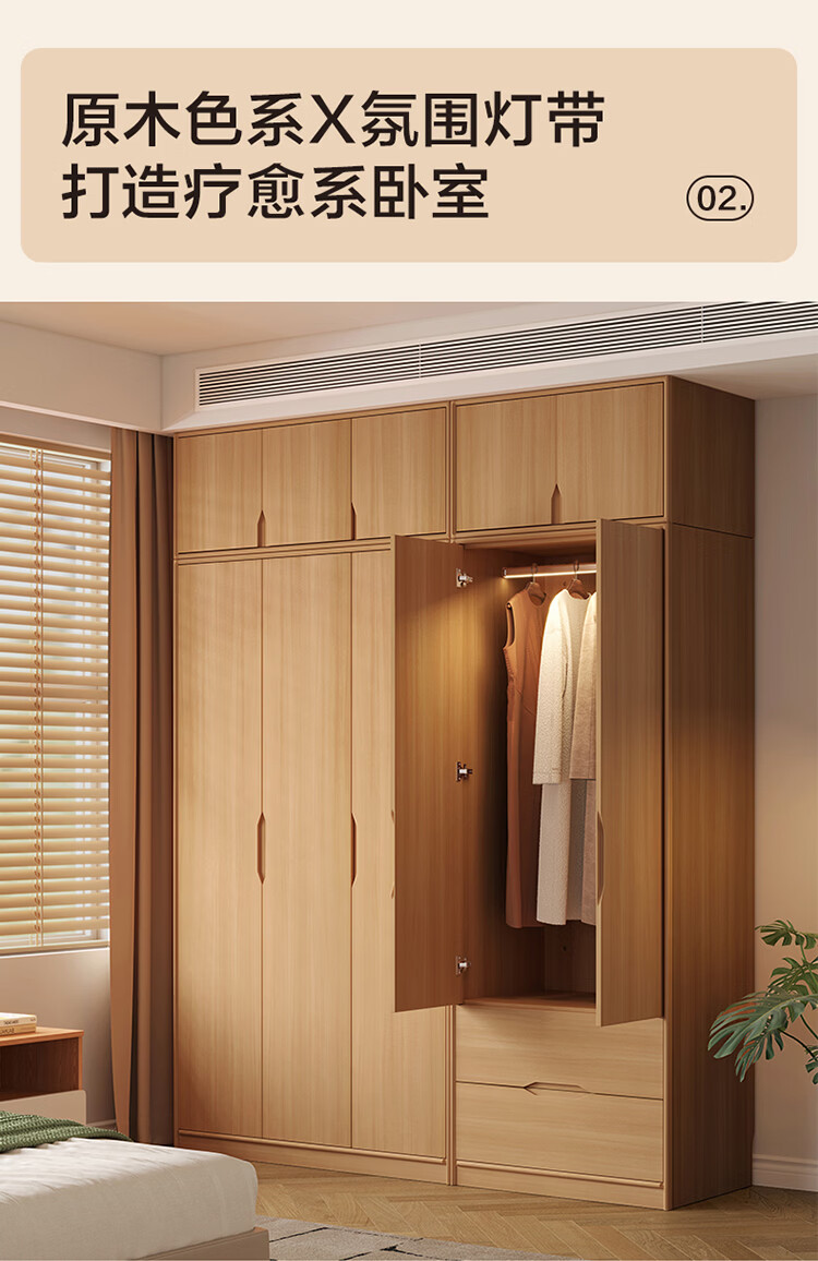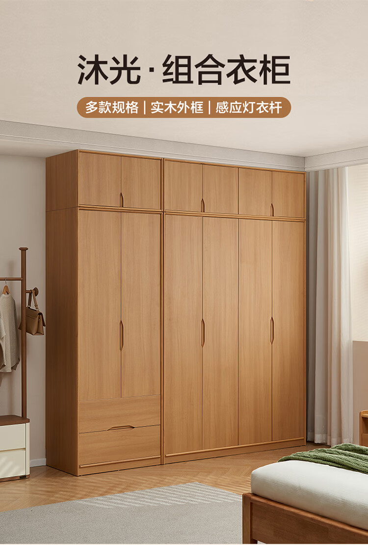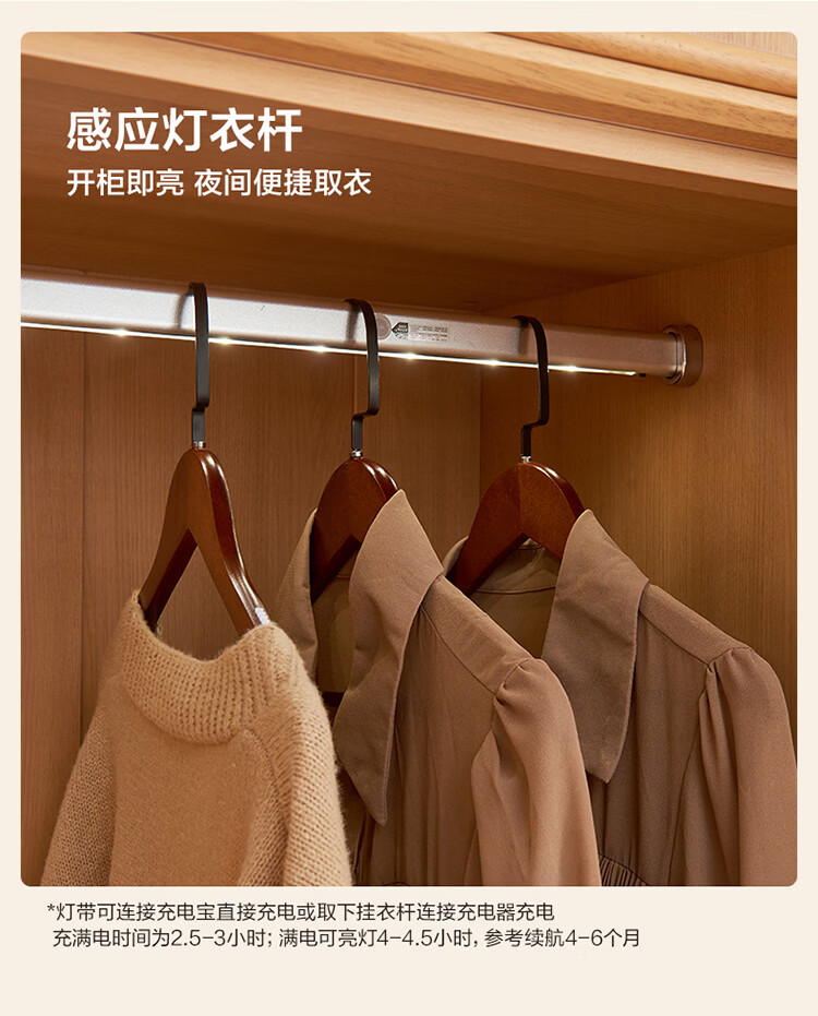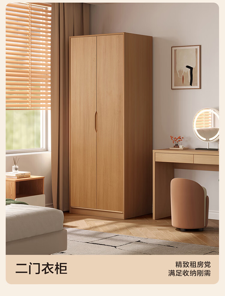 全友家居现代简约成品衣柜卧室家用收纳柜一体靠墙2026新款感应灯衣杆 【0.82*2.14米】二门衣柜