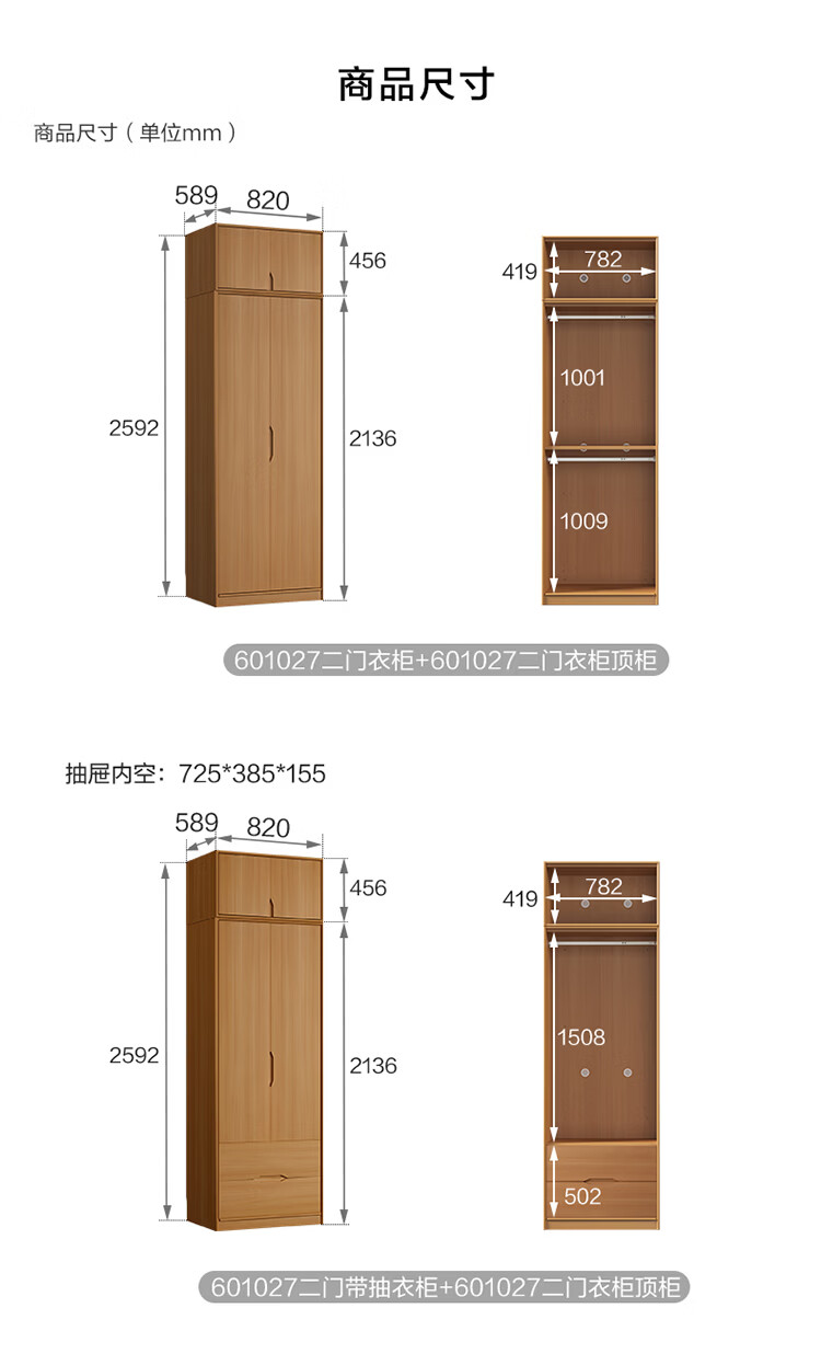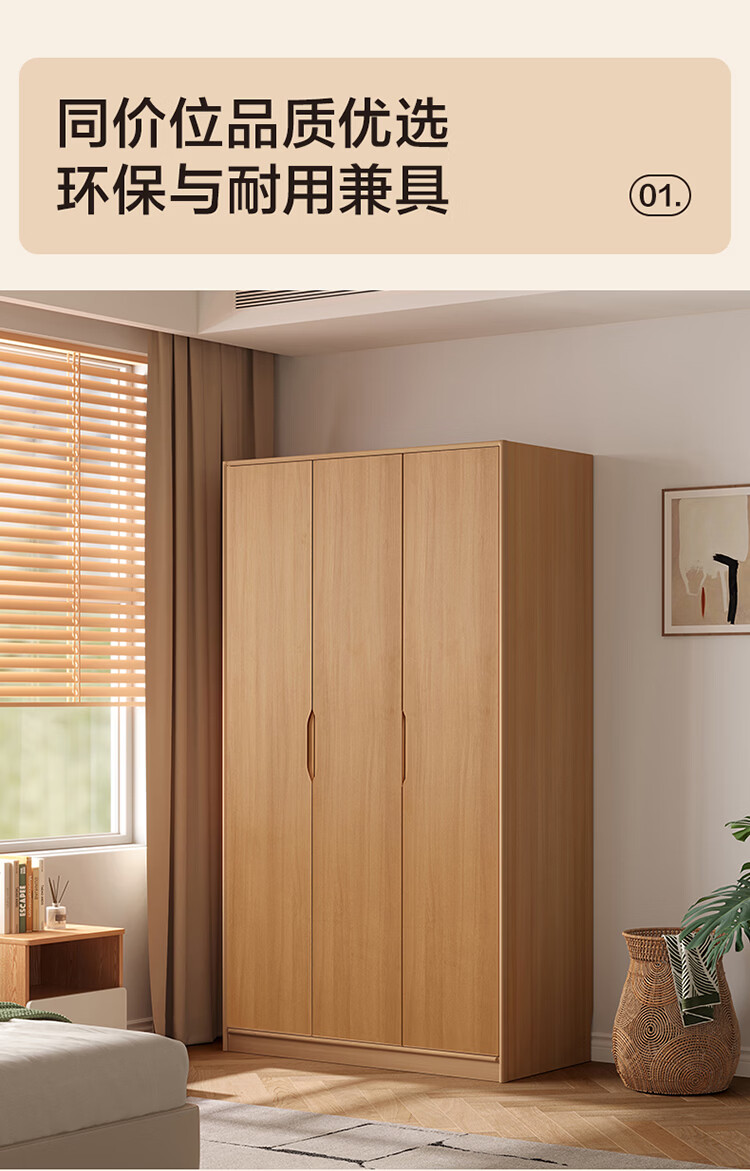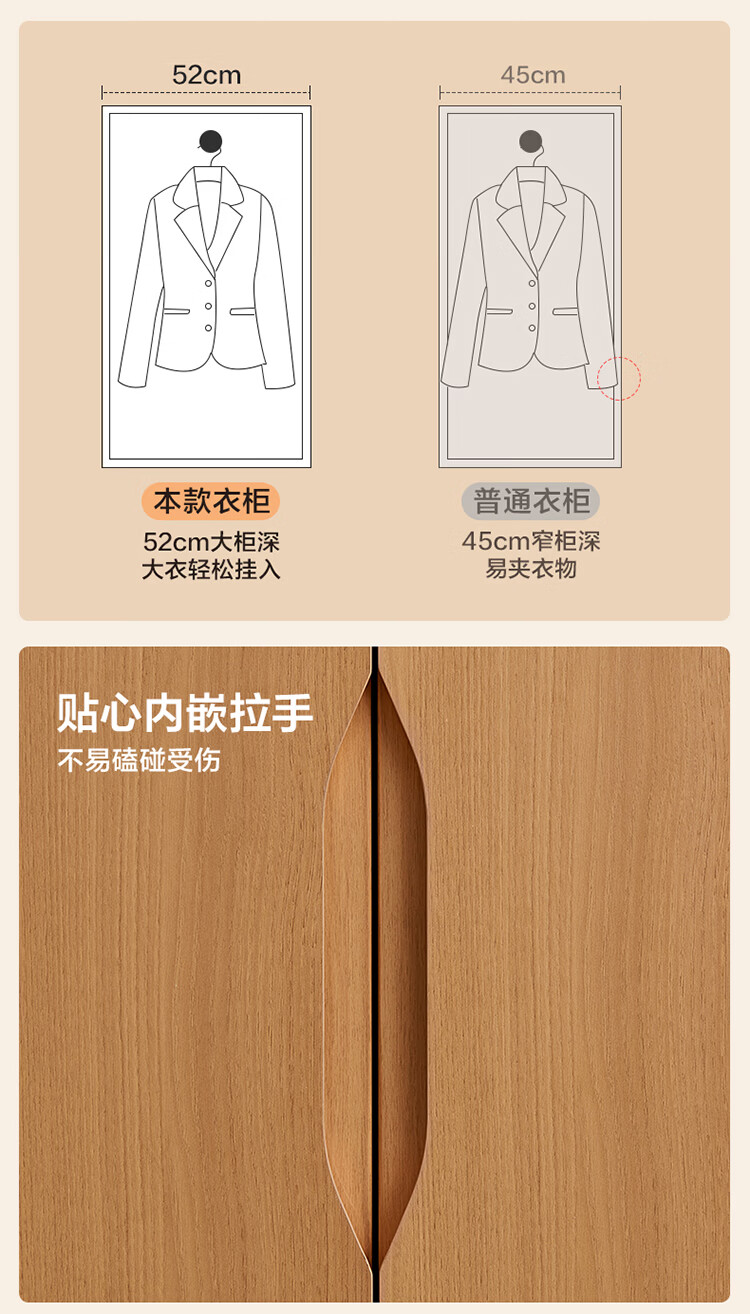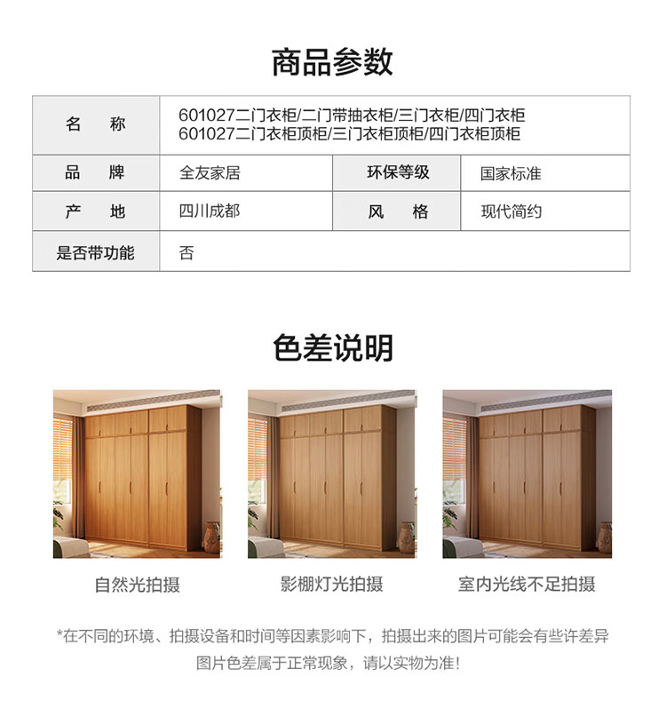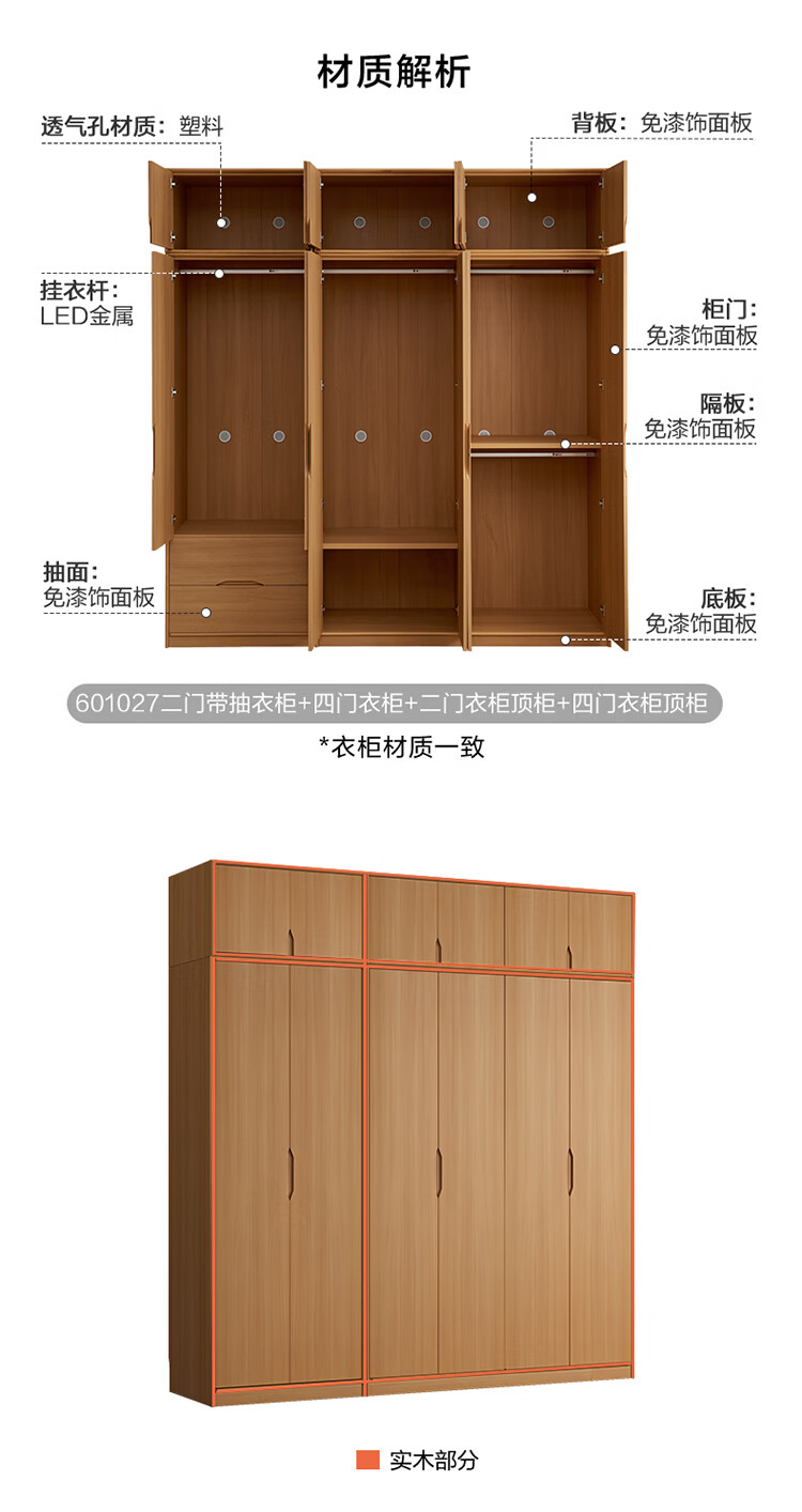 全友家居现代简约成品衣柜卧室家用收纳柜一体靠墙2026新款感应灯衣杆 【0.82*2.14米】二门衣柜