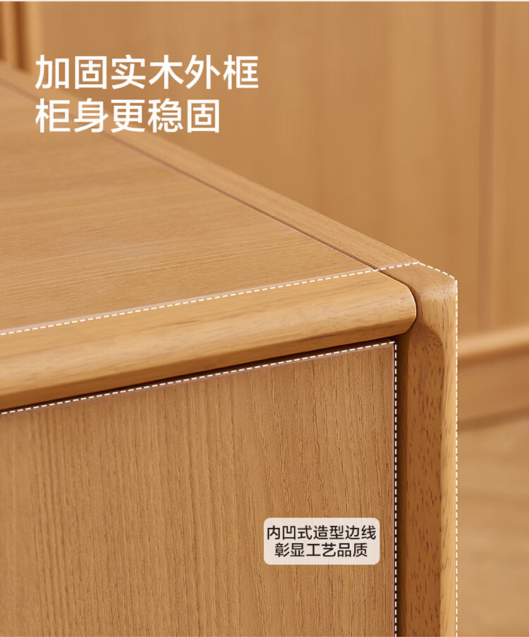 全友家居原木风实木餐边柜家用玻璃展示柜收纳储物小柜子沙发边柜KS 【樱桃木色|橡胶木】双门款餐边柜