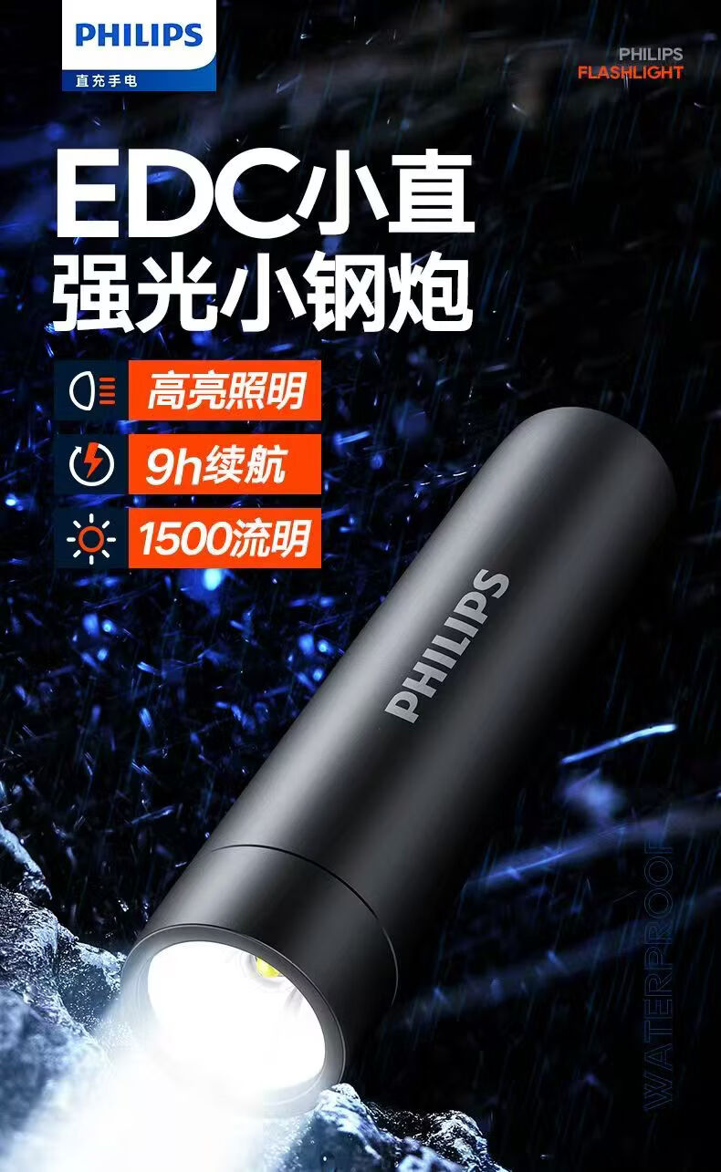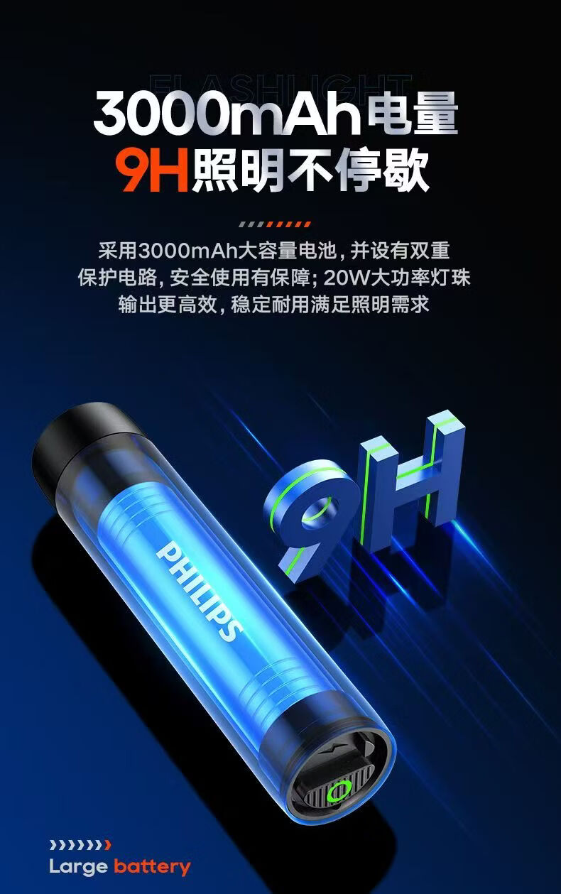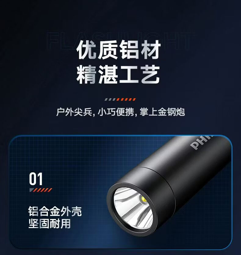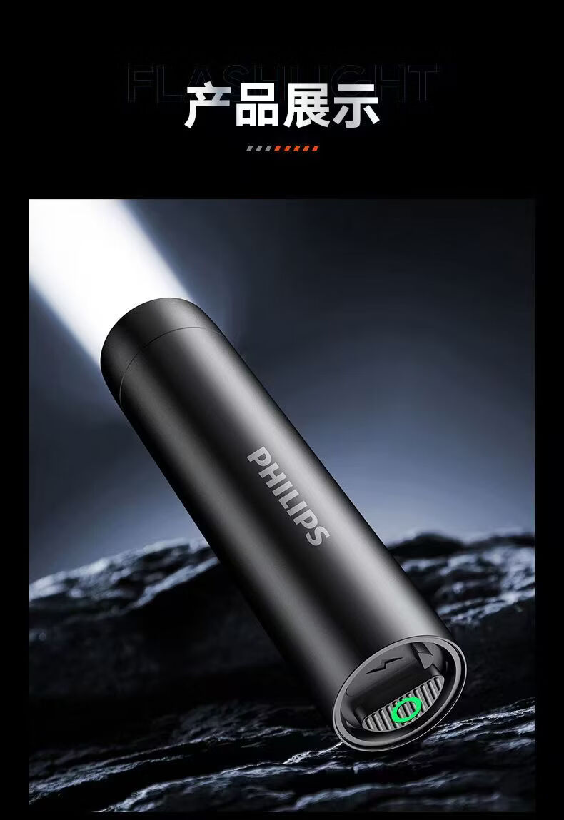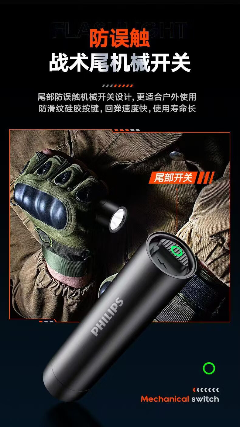 飞利浦(PHILIPS)战术手电筒强光充电高亮迷你便携户外远射巡逻小型手电SFL2202 20W/3000毫安/定焦/SFL2202