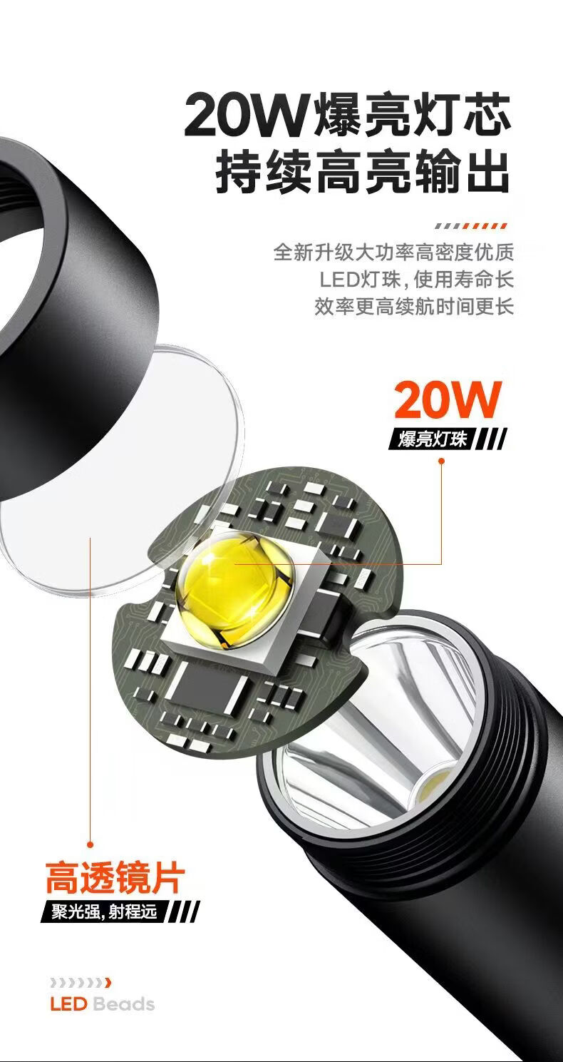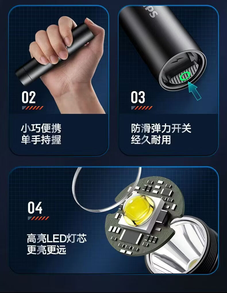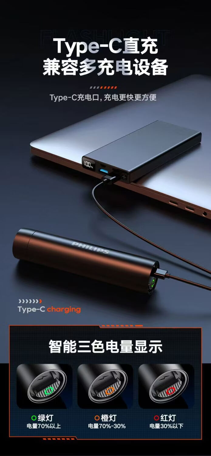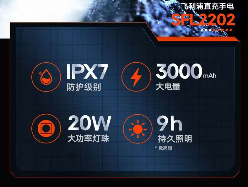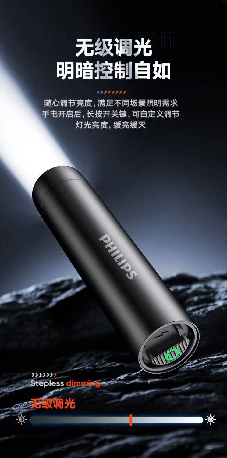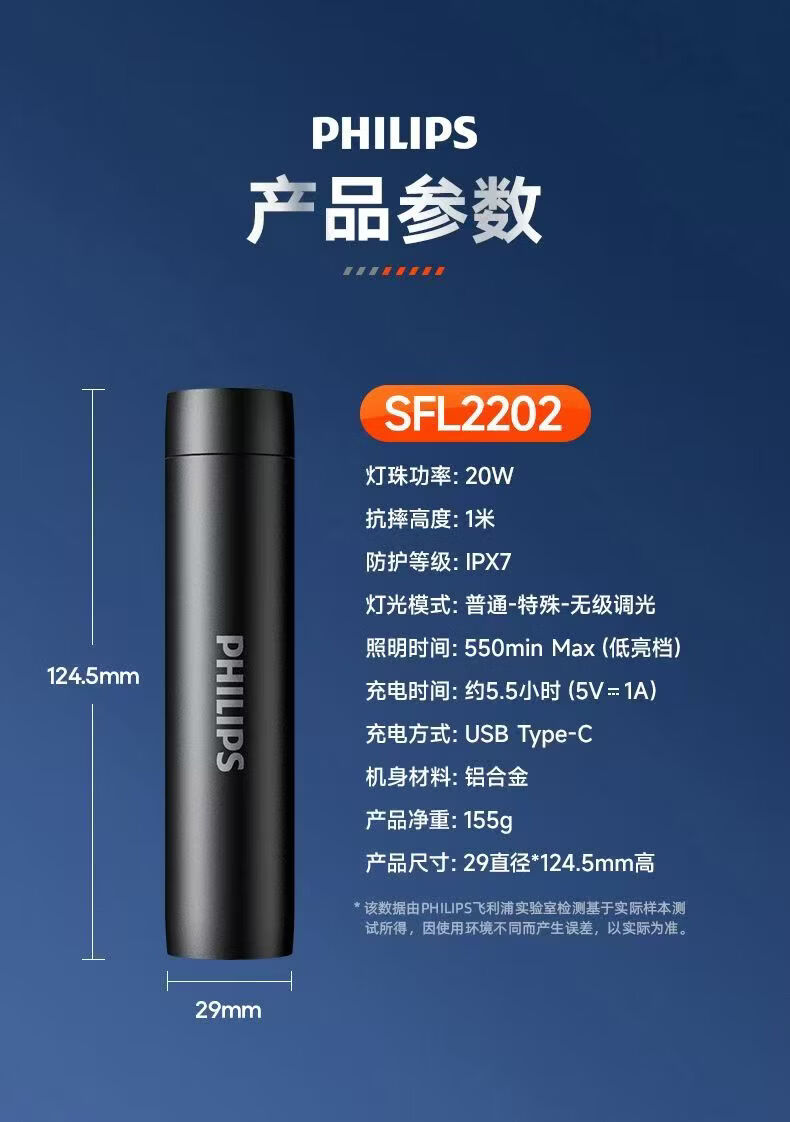 飞利浦(PHILIPS)战术手电筒强光充电高亮迷你便携户外远射巡逻小型手电SFL2202 20W/3000毫安/定焦/SFL2202