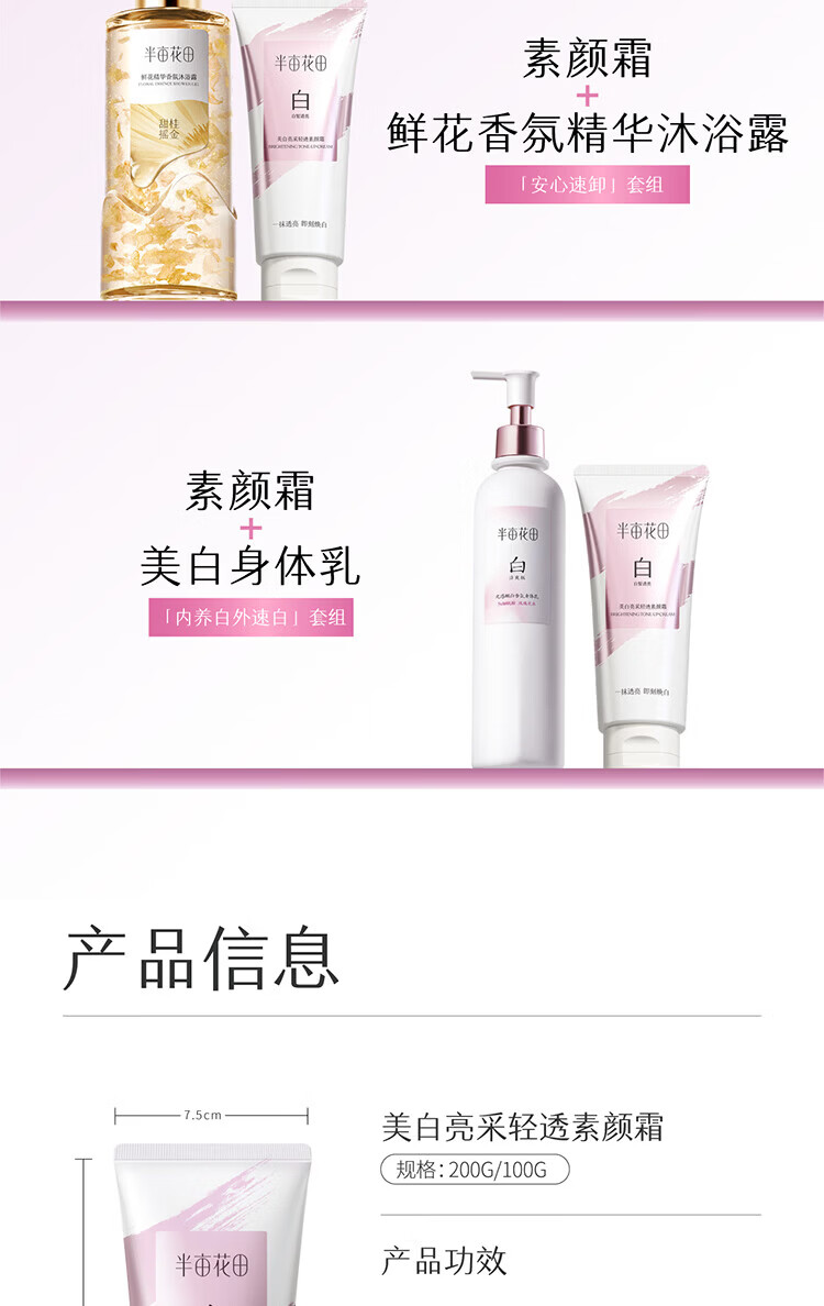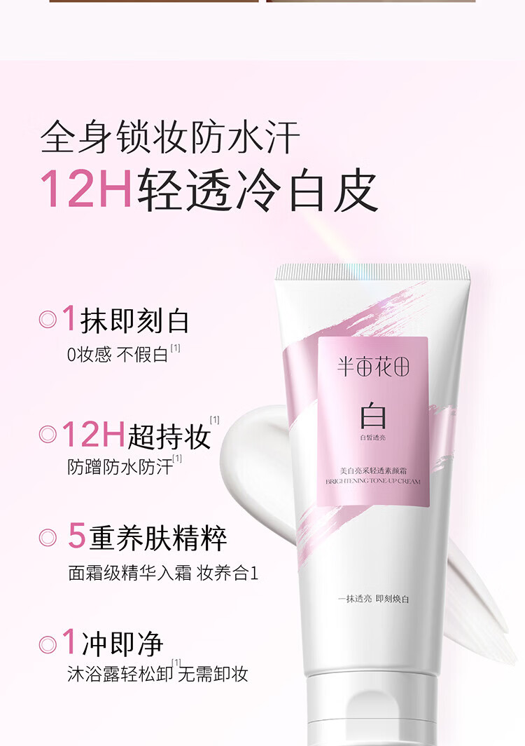半亩花田【面身通用】美白素颜霜懒人面霜提亮遮瑕淡斑保湿留香不假白200g
