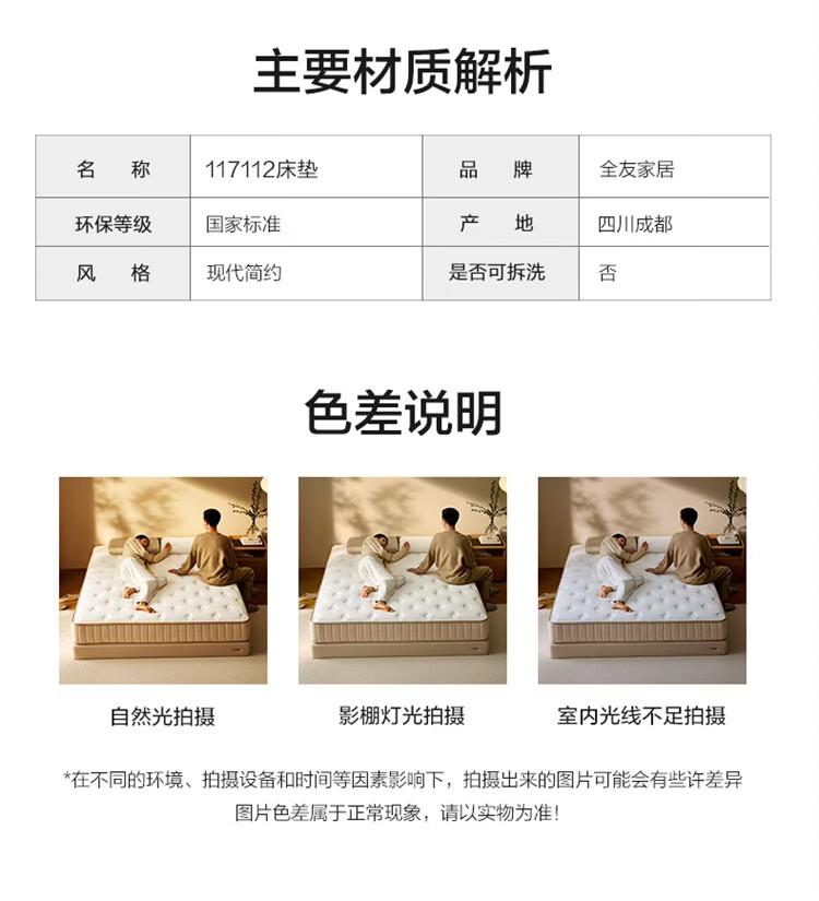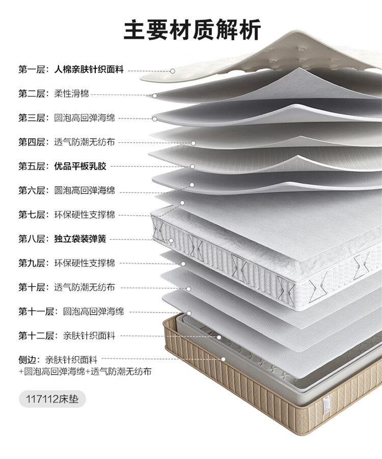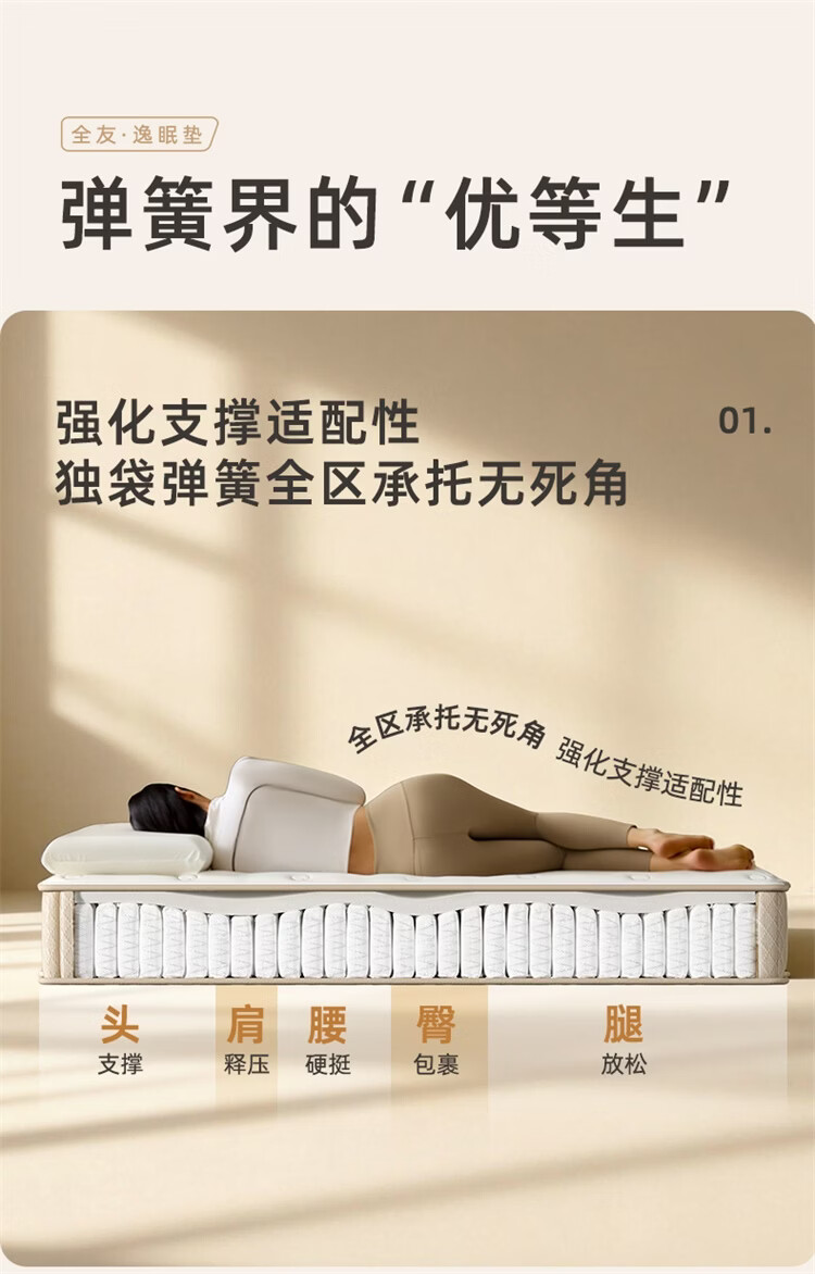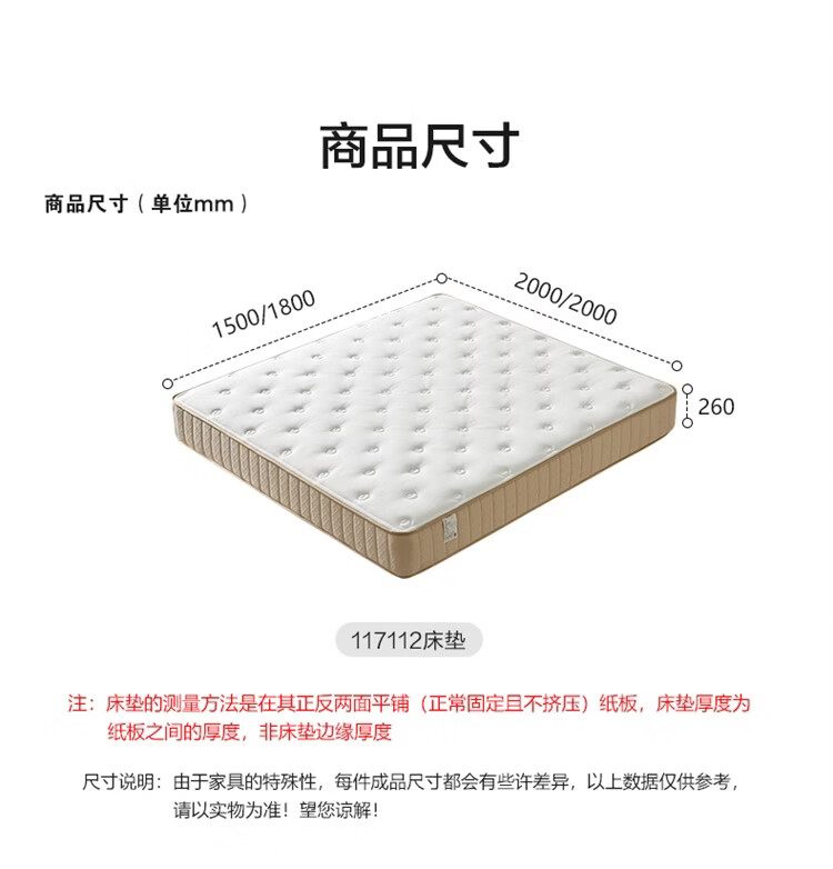 全友家居独立装袋三段式静音弹簧床垫进口乳胶软硬适中席梦思床垫家具 【三段式渐进弹簧+乳胶】床垫(厚26cm) 1.5x2米