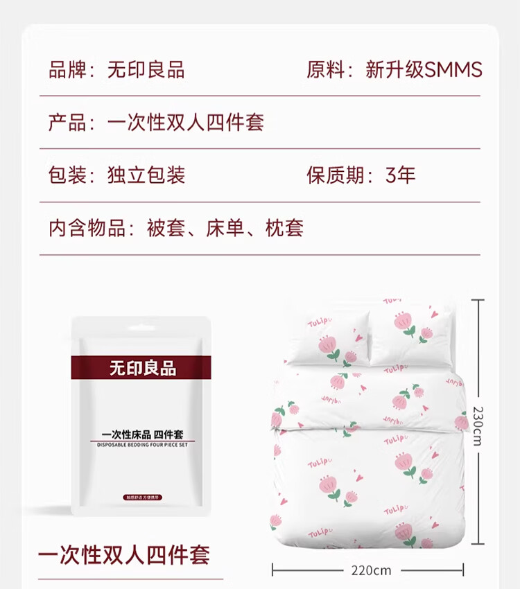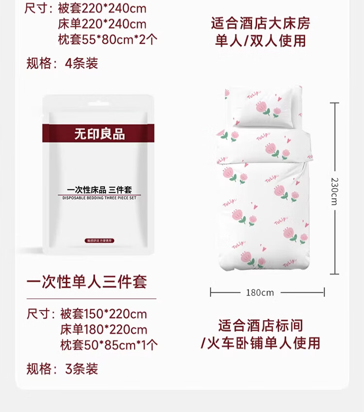 无印良品一次性床品四件套旅行用品必备一次性床单被罩床品四件套酒店用品