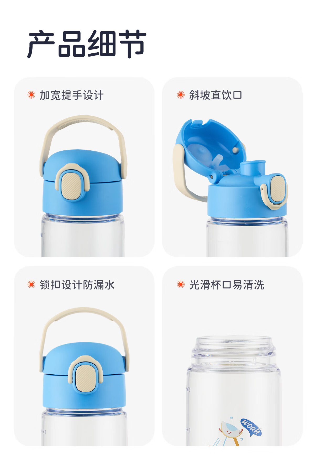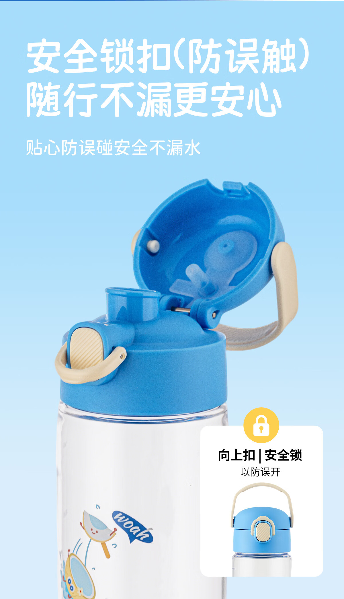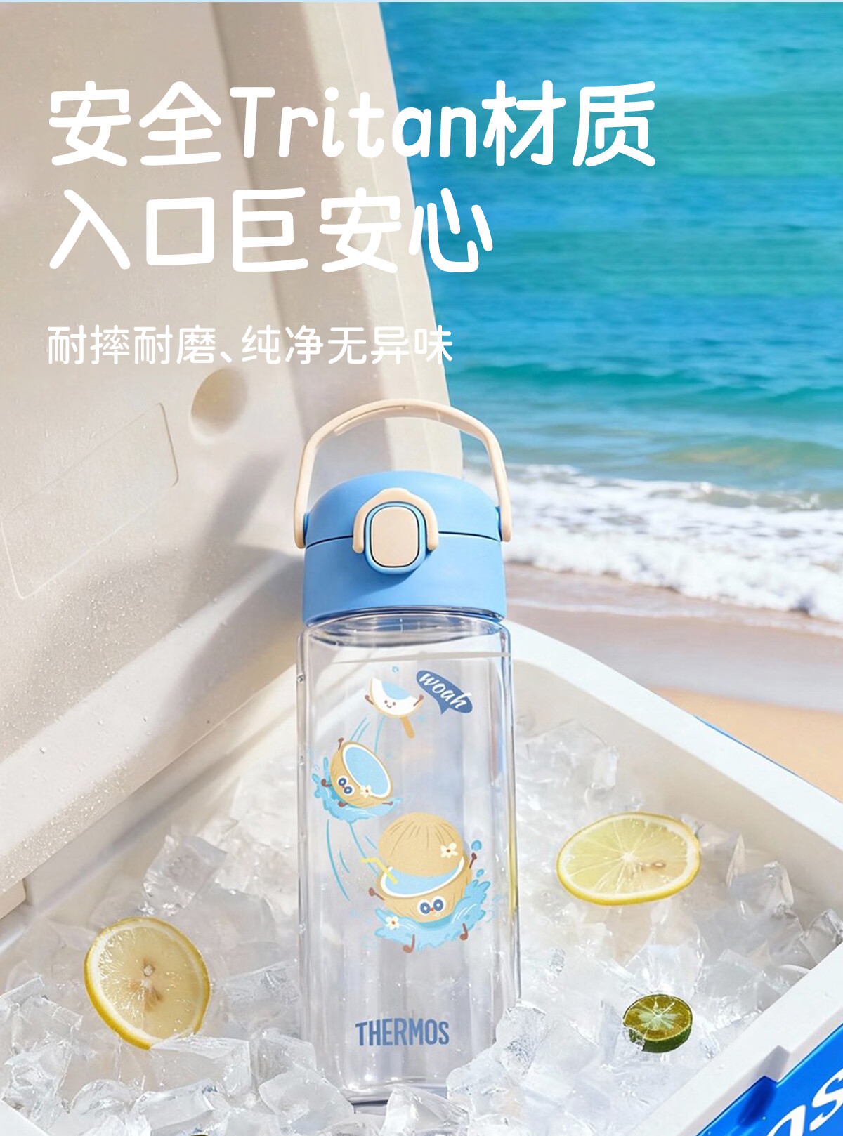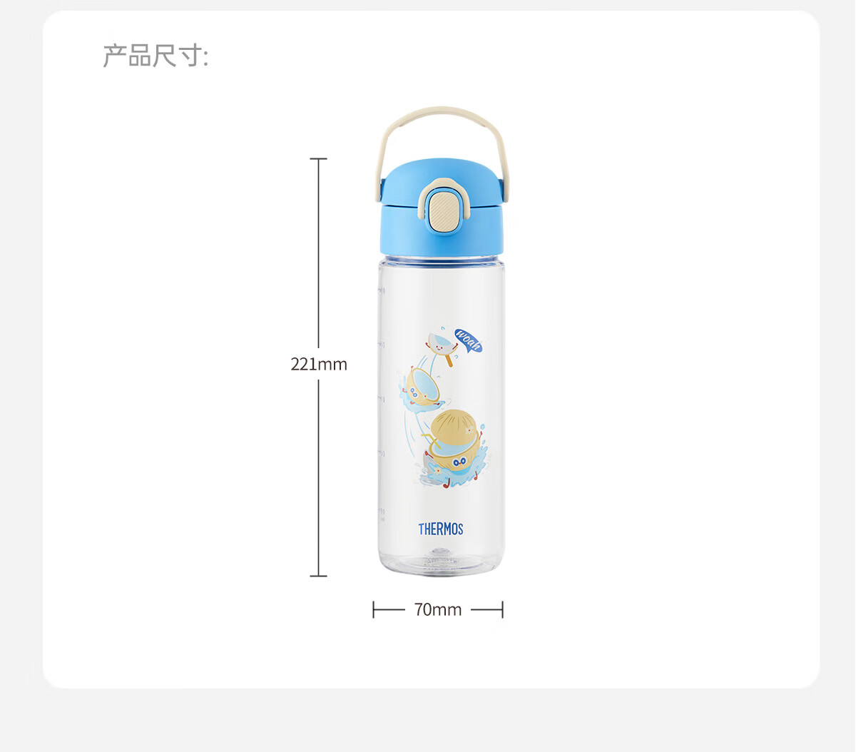 膳魔师(THERMOS)Tritan运动水杯直饮杯儿童学生塑料杯安全锁扣600ml 蓝