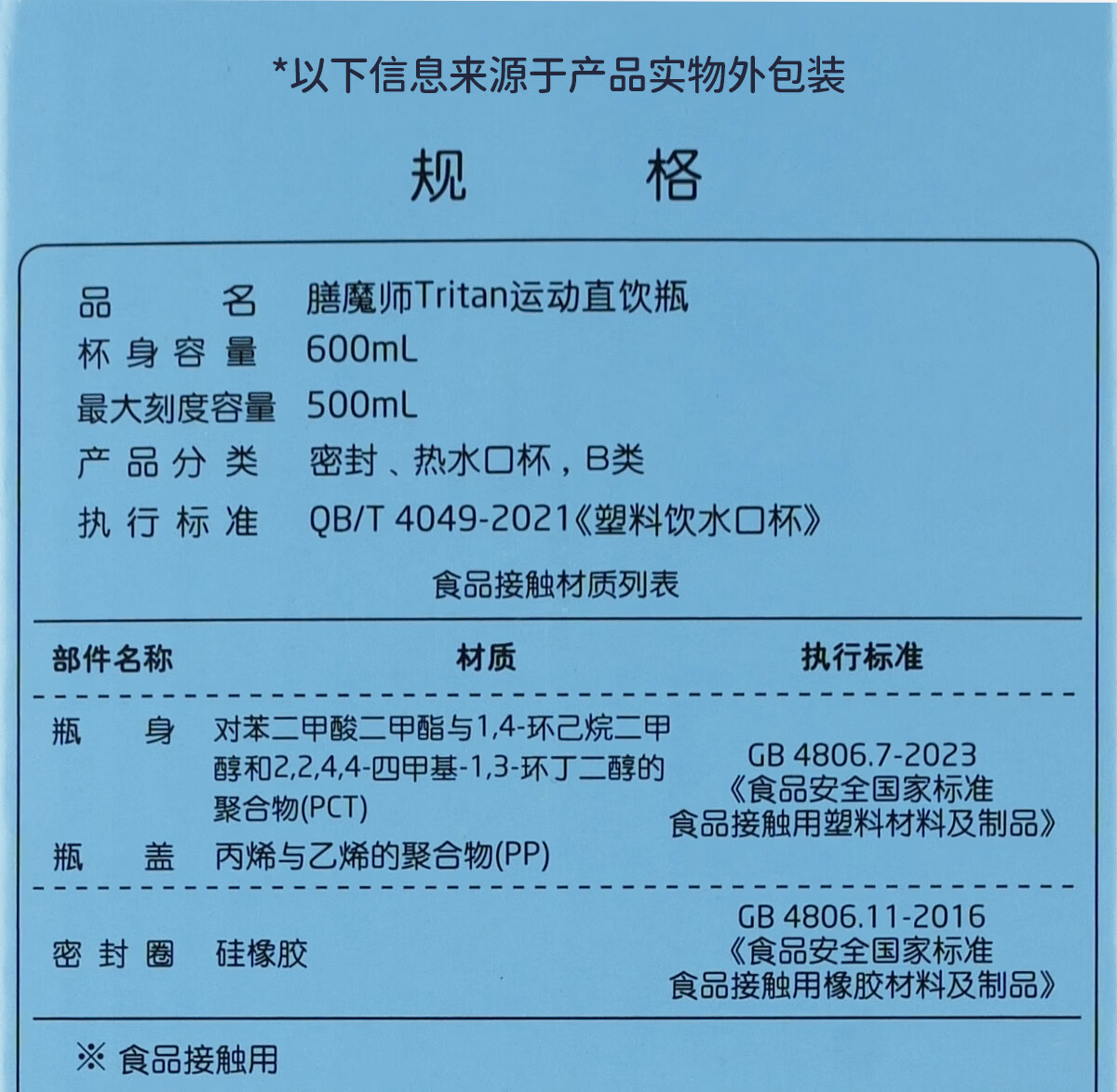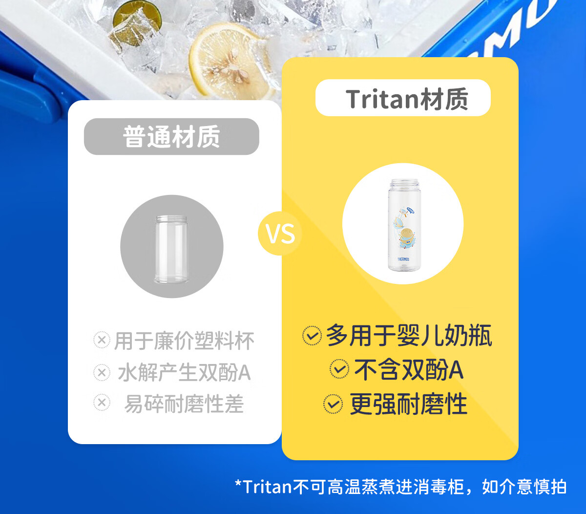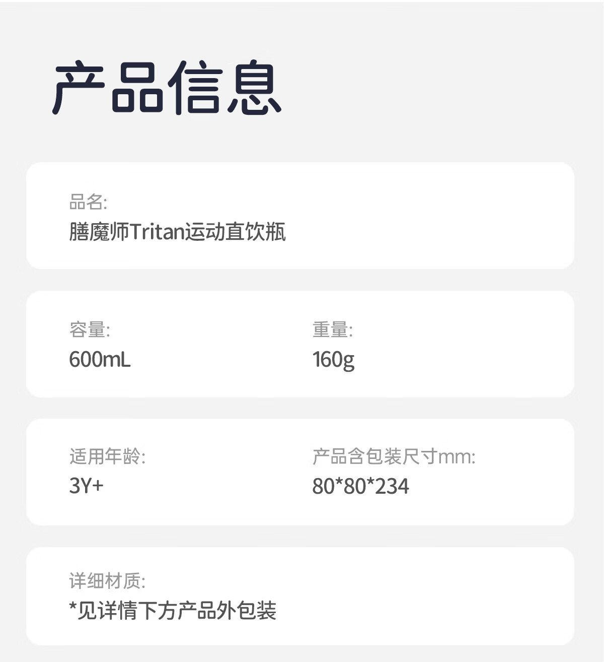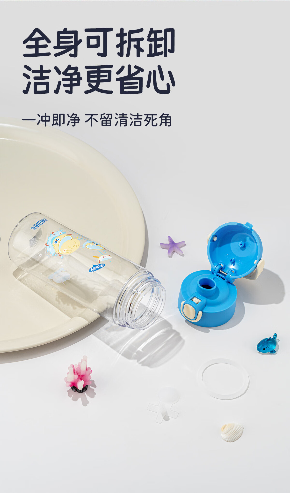 膳魔师(THERMOS)Tritan运动水杯直饮杯儿童学生塑料杯安全锁扣600ml 蓝