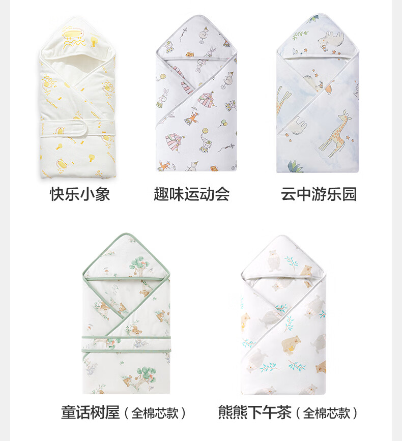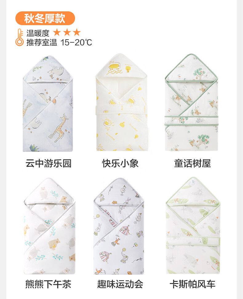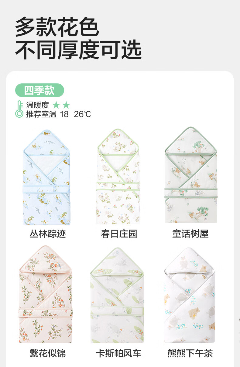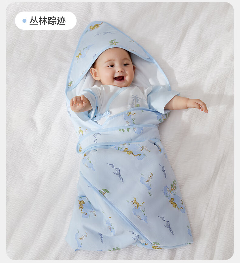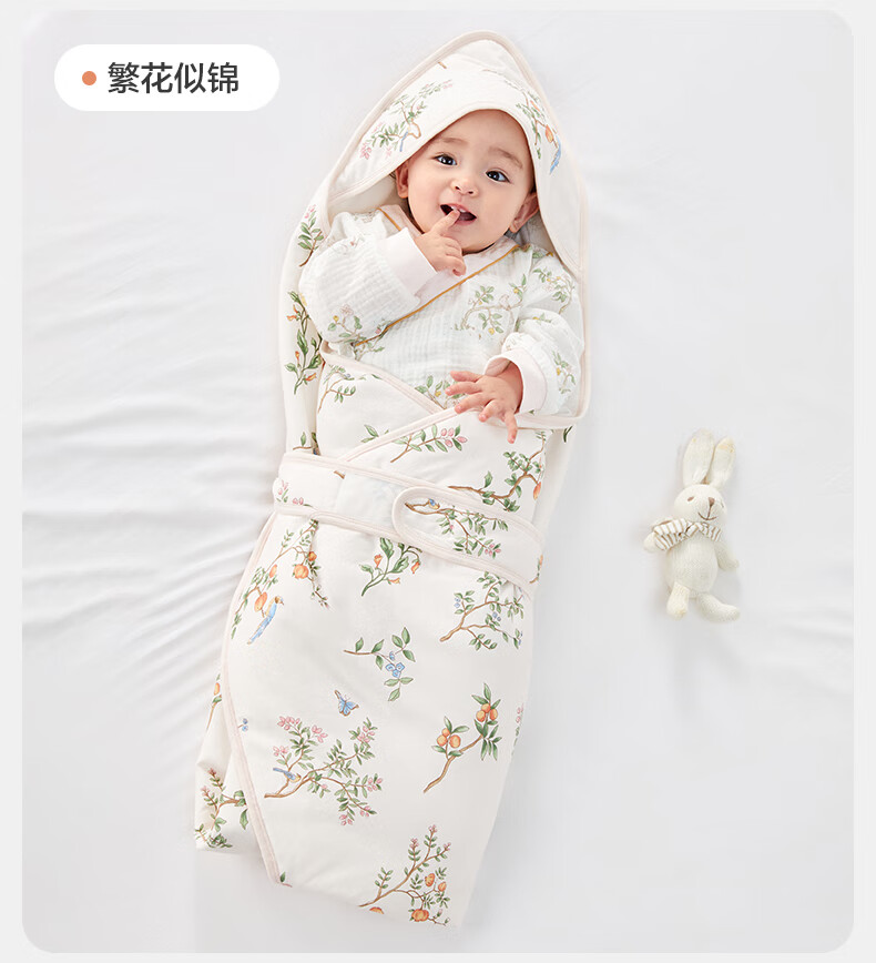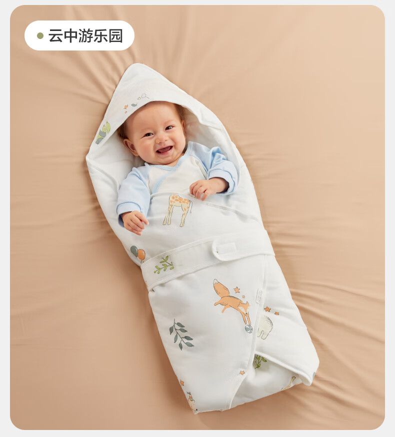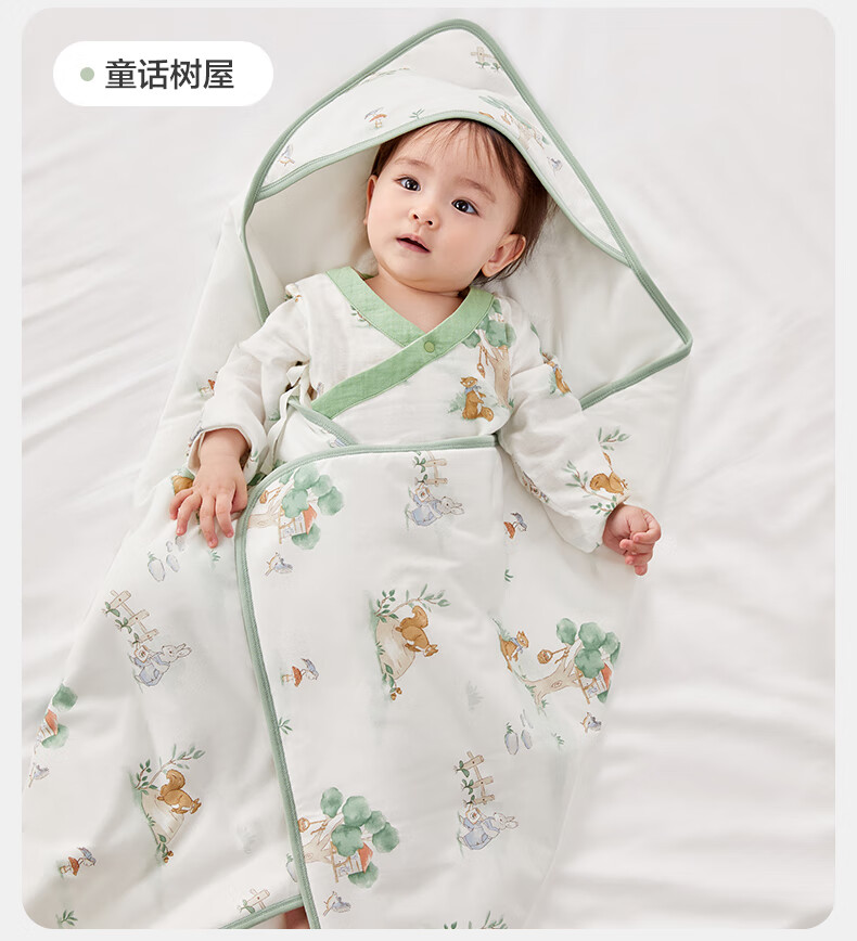 全棉时代婴儿抱被纯棉新生儿包被襁褓微厚包单四季通用 童话树屋90*90cm