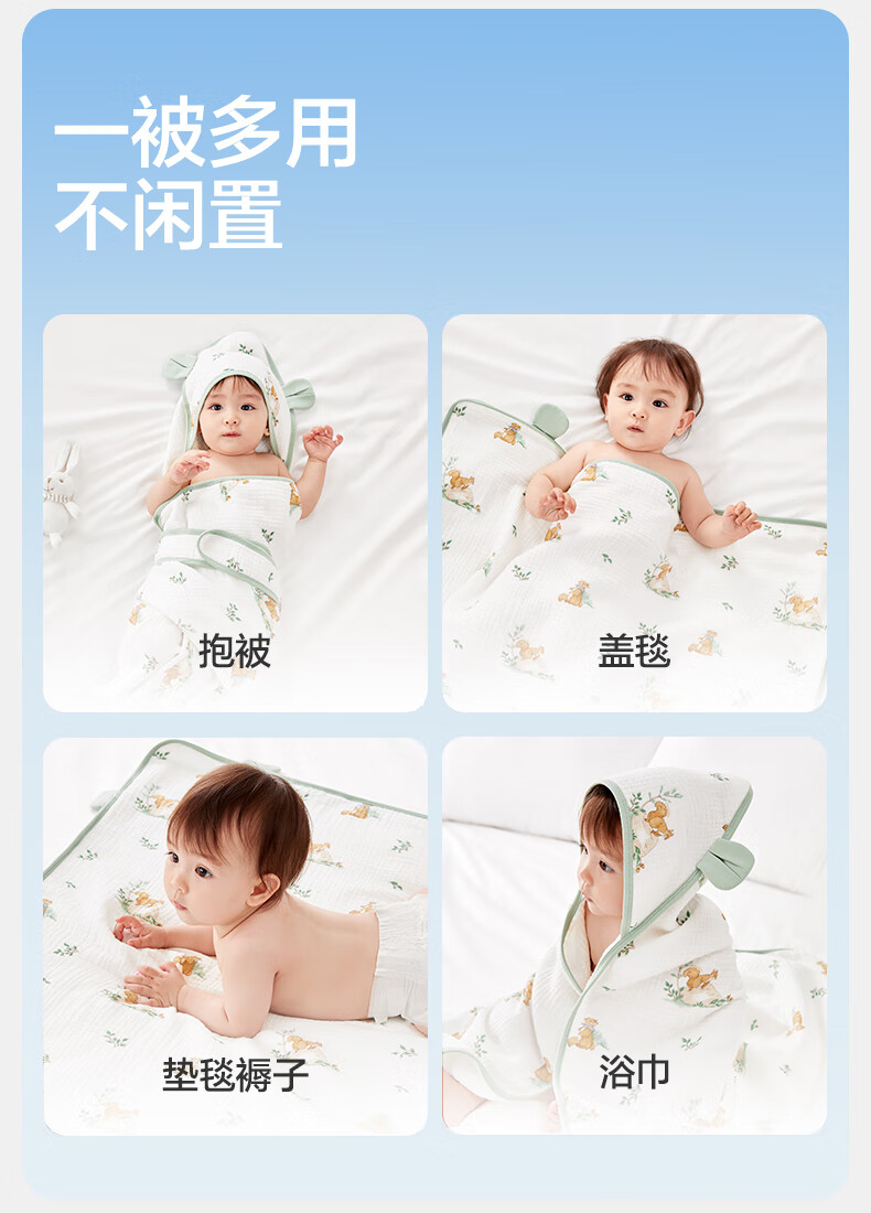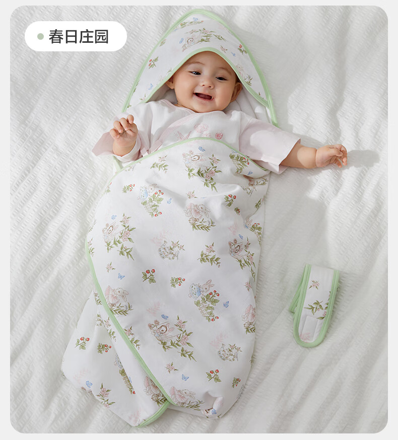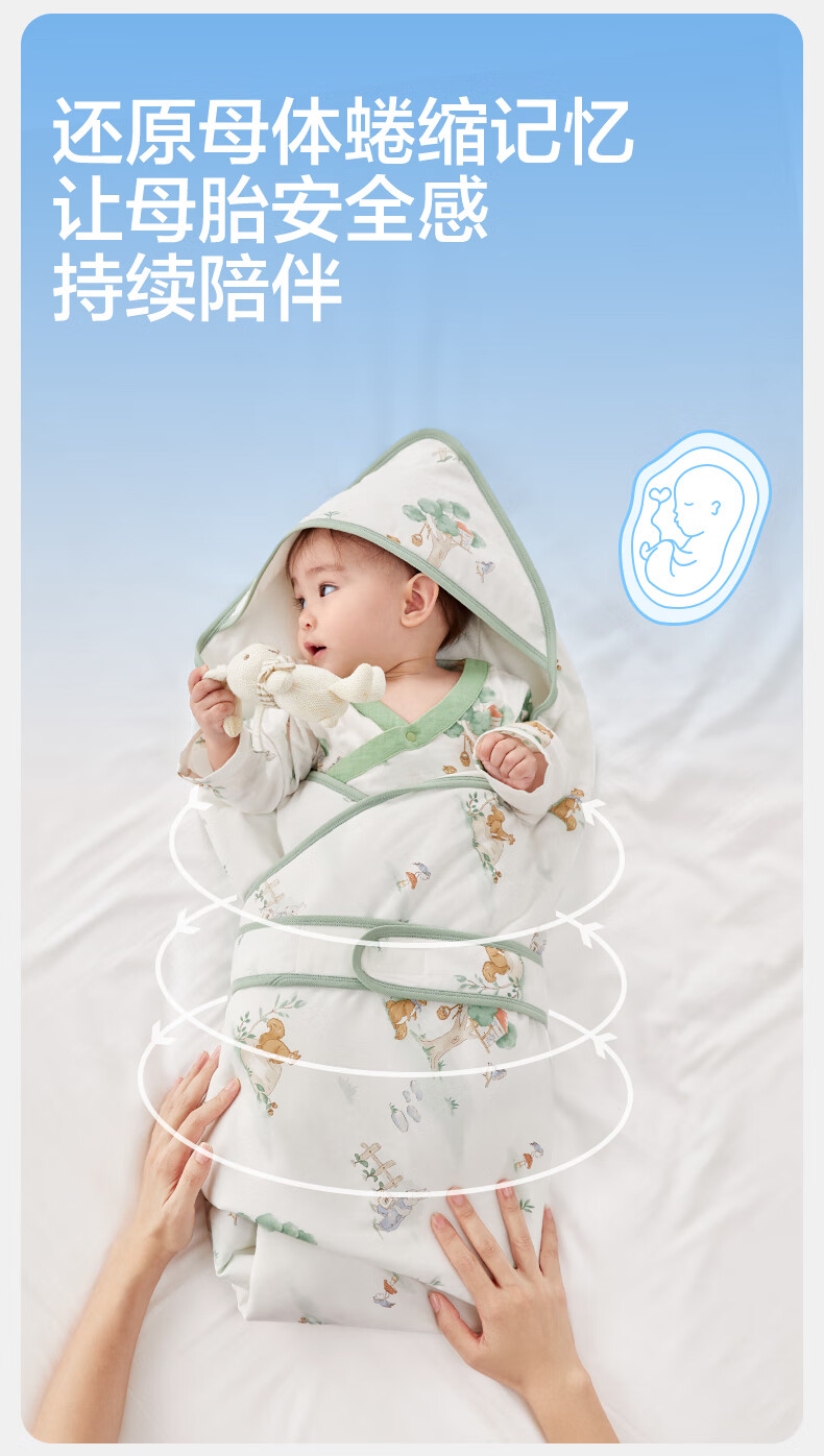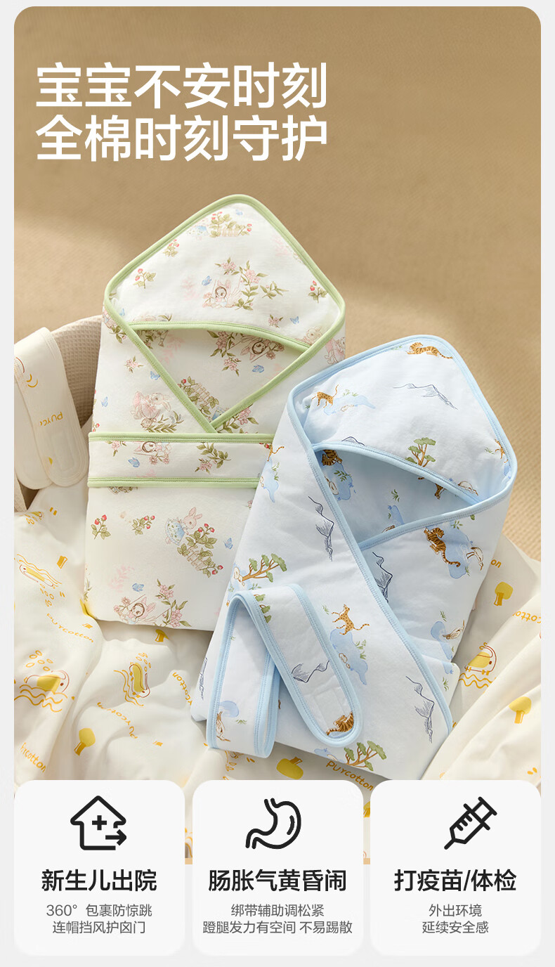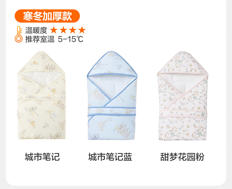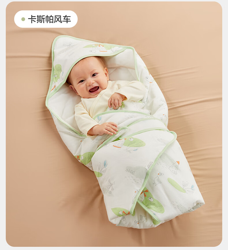 全棉时代婴儿抱被纯棉新生儿包被襁褓微厚包单四季通用 童话树屋90*90cm