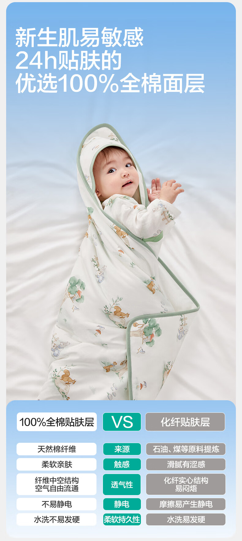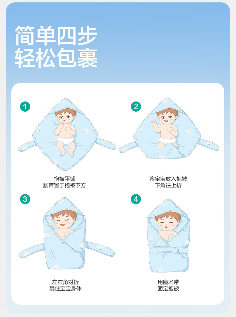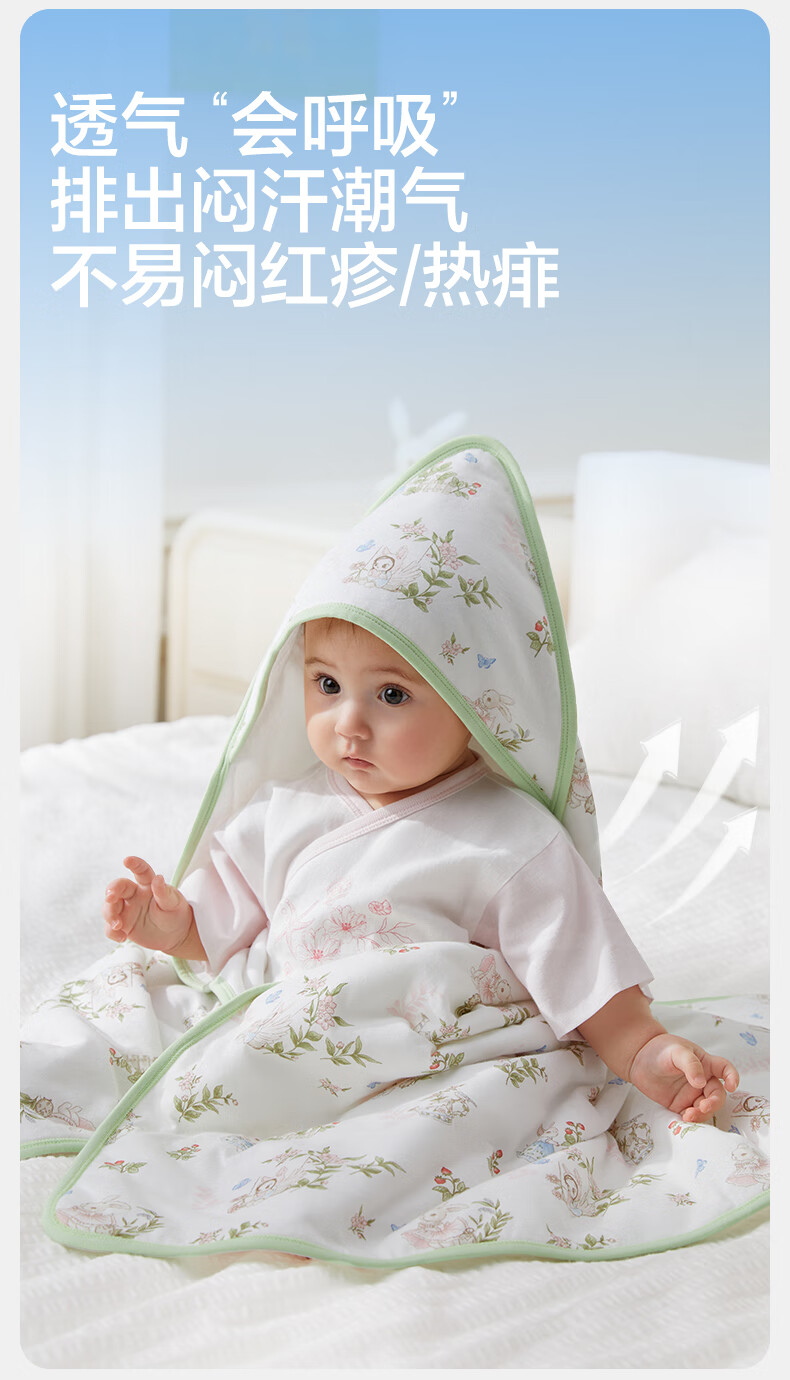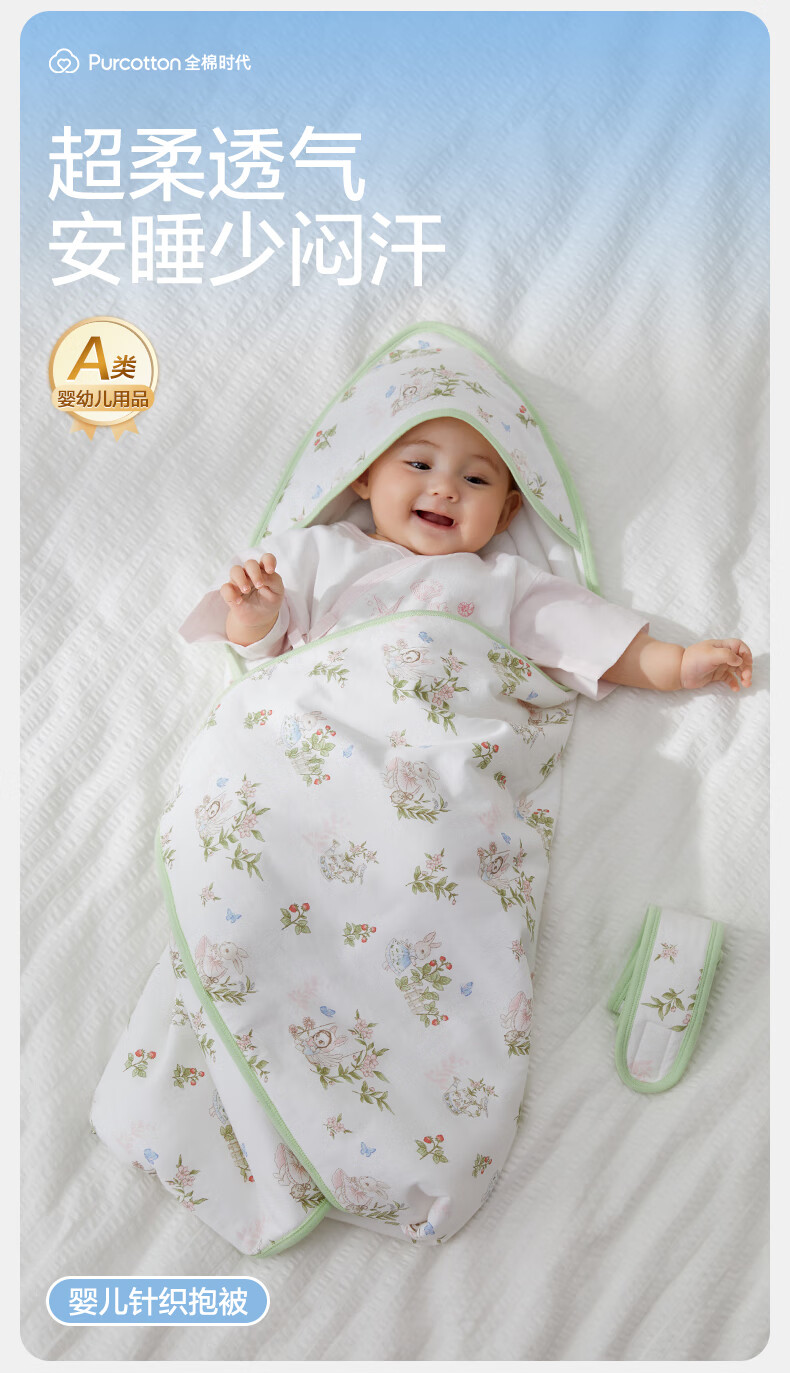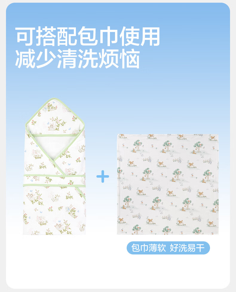 全棉时代婴儿抱被纯棉新生儿包被襁褓微厚包单四季通用 童话树屋90*90cm