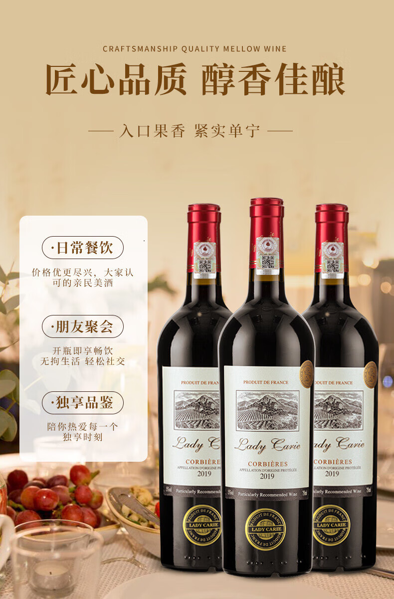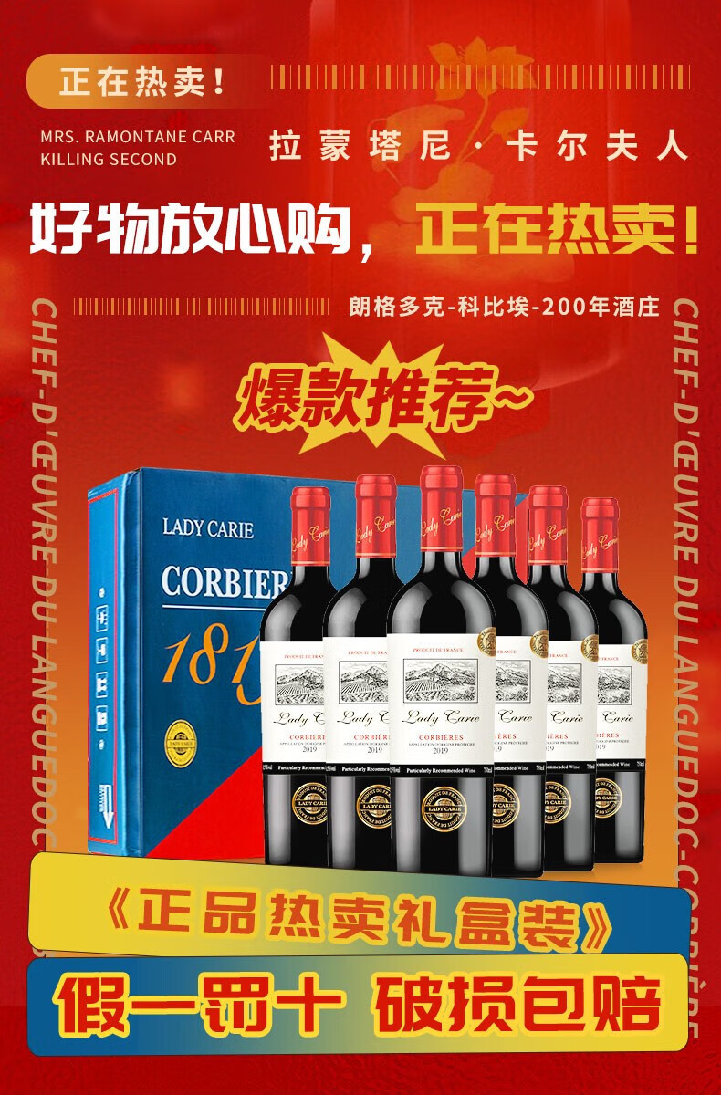 拉蒙塔尼【品牌金奖】法国进口红酒卡尔夫人窖藏15度干红葡萄酒整箱礼盒装 原酒进口750ML*6支