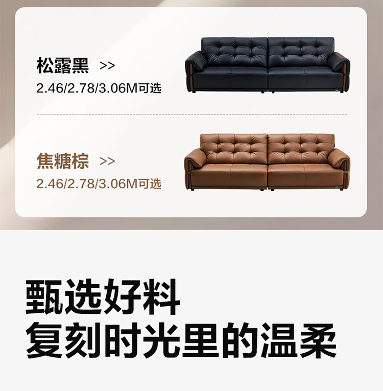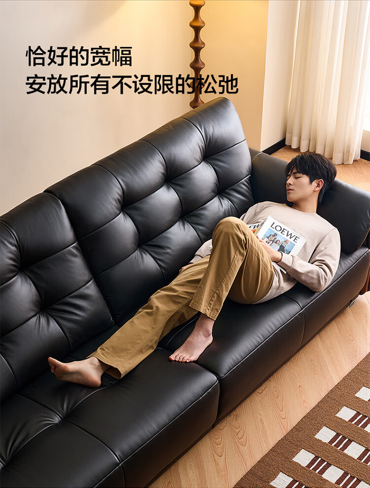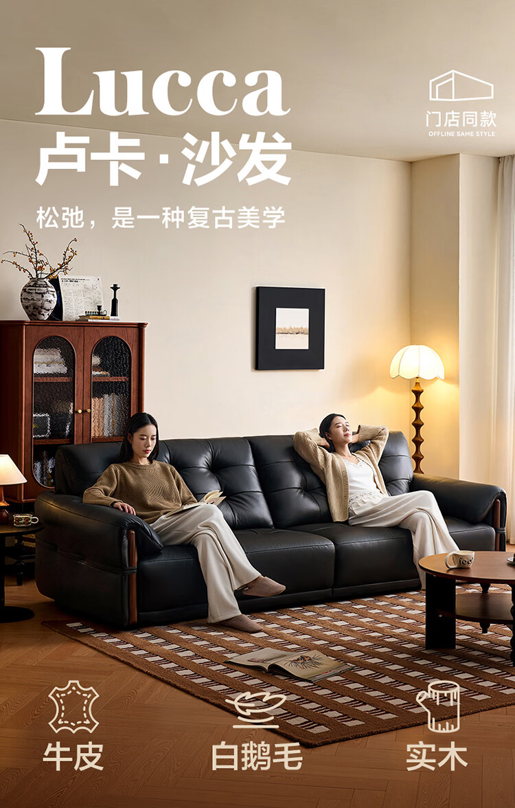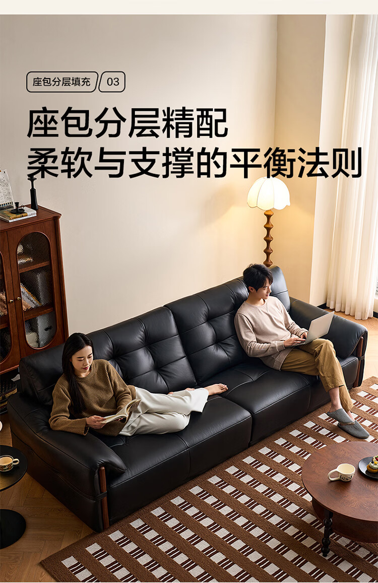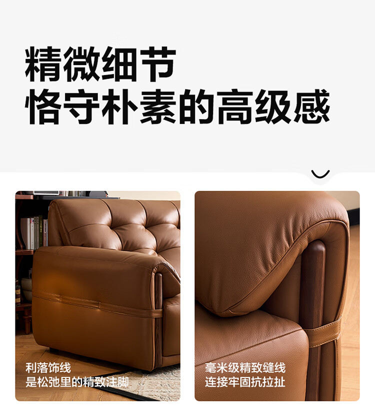 全友家居线下门店同款卢卡沙发复古风头层牛皮真皮沙发客厅沙发U10001 【焦糖棕 | 牛皮】3.06m直排沙发
