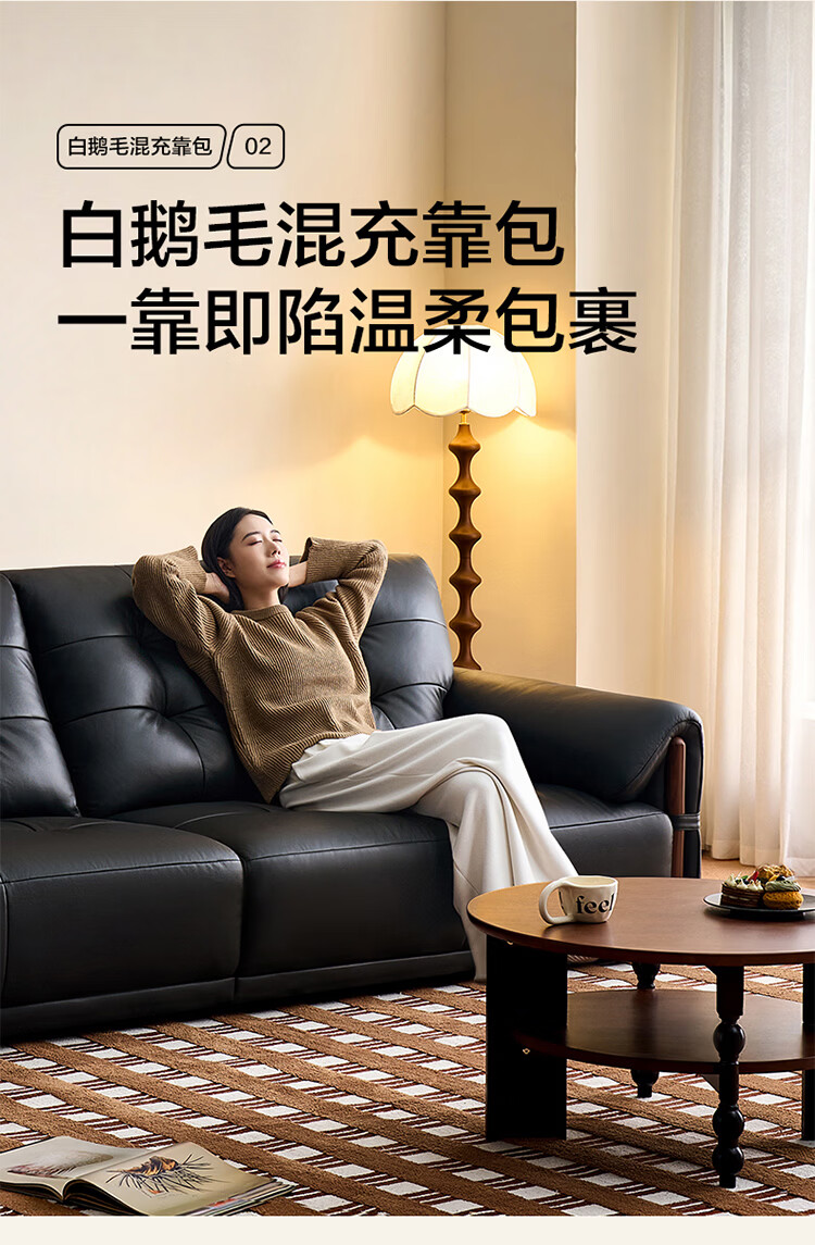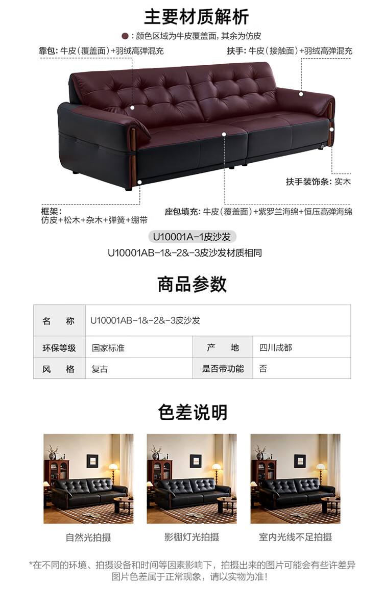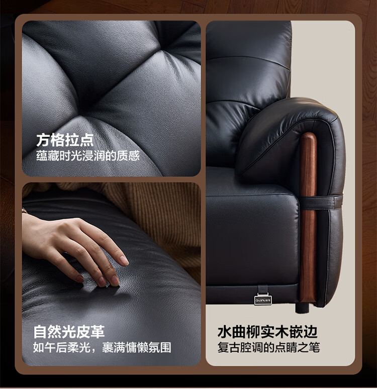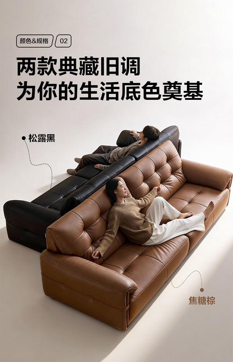 全友家居线下门店同款卢卡沙发复古风头层牛皮真皮沙发客厅沙发U10001 【焦糖棕 | 牛皮】3.06m直排沙发