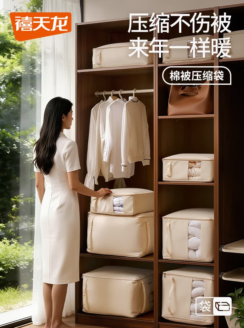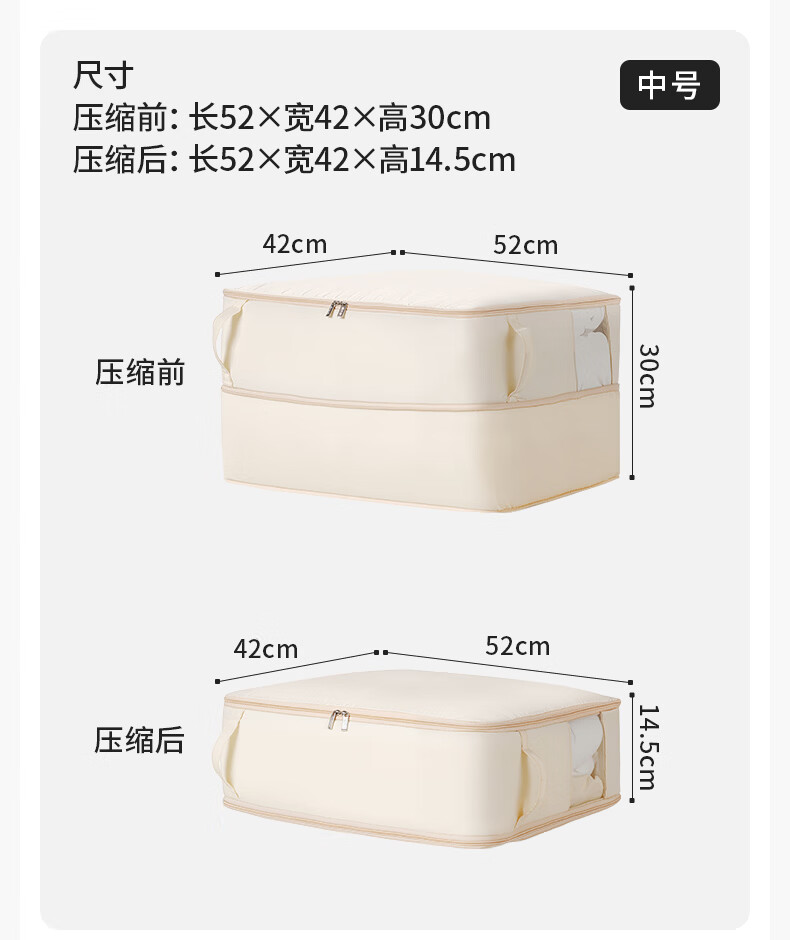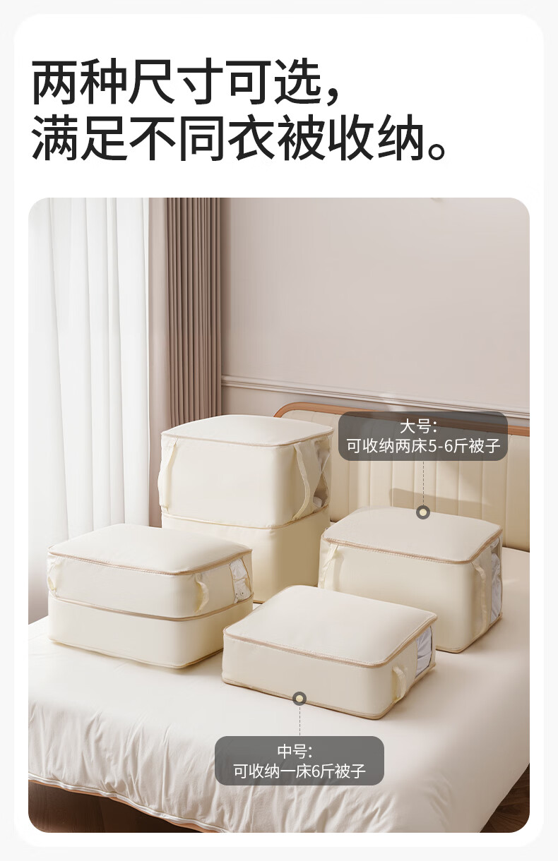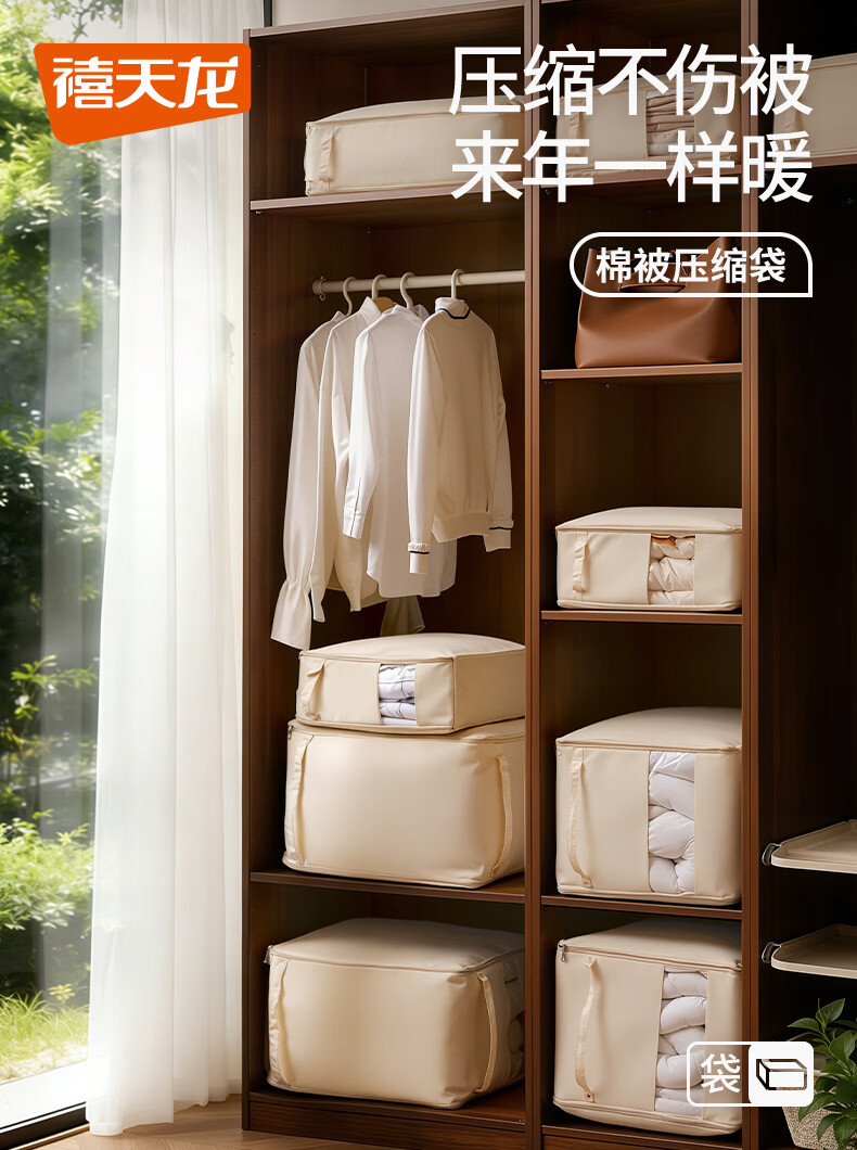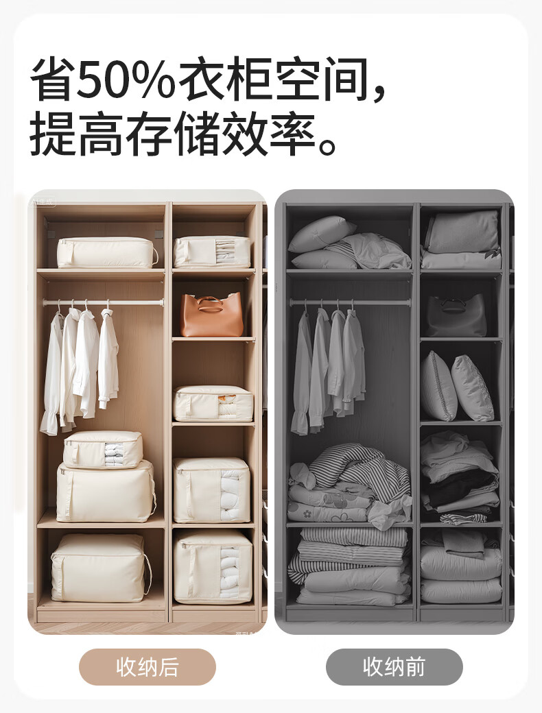 禧天龙收纳箱布艺衣服衣物被子衣柜整理储物箱搬家袋收纳盒子可压缩 【压缩省50%空间】 52*42*14.5cm 中号1个