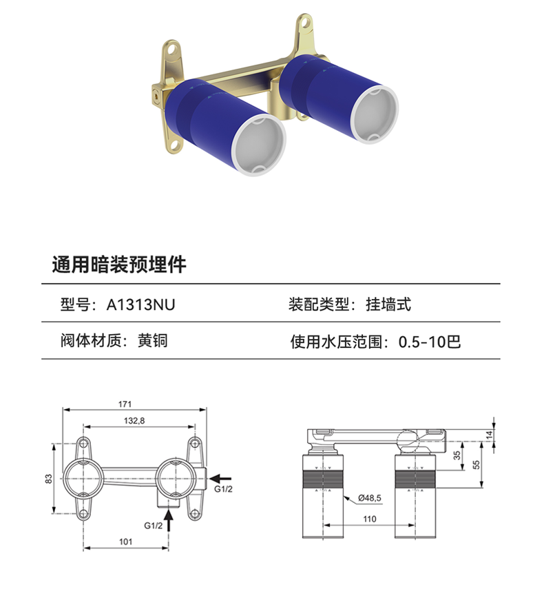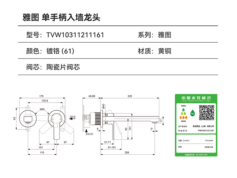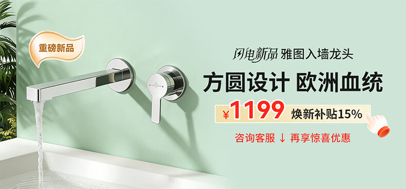 德国唯宝(Villeroy&Boch)欧洲进口 入墙式暗装水龙头 卫生间洗脸盆水龙头 冷热面盆龙头 雅图入墙龙头(欧洲原产)