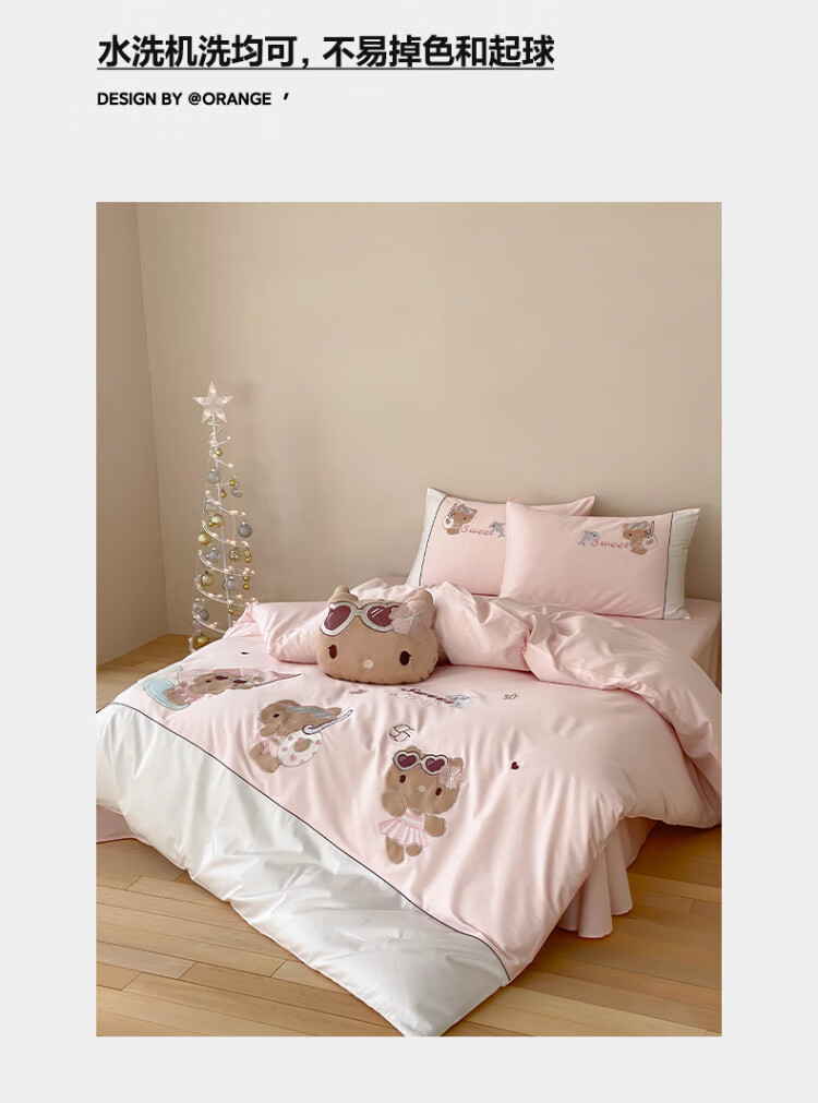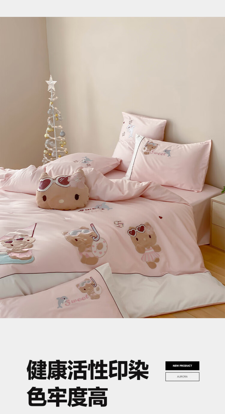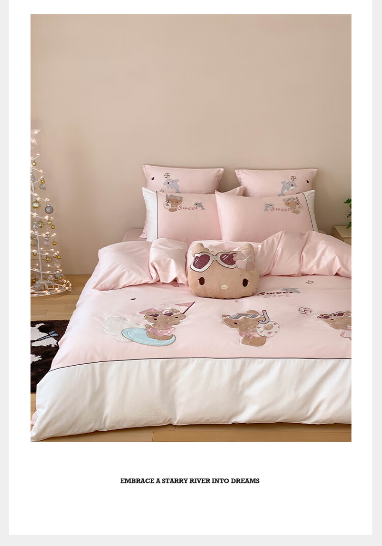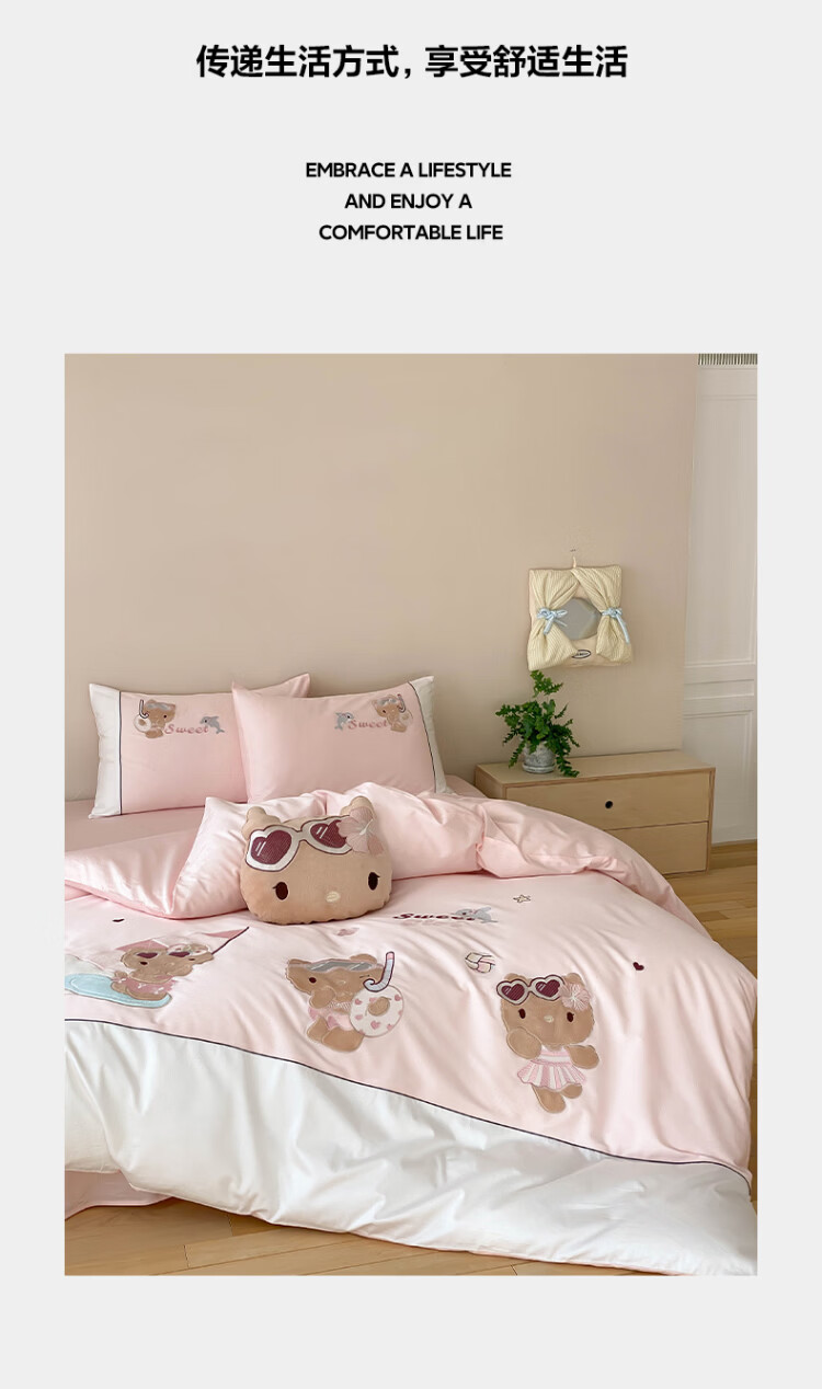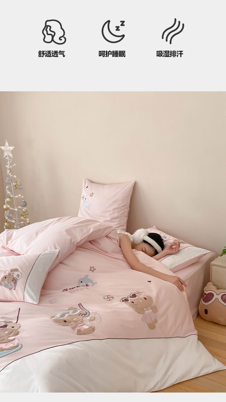 ROLAND LIVE儿童卡通长绒棉四件套软萌粉色全棉被套床单女孩子床上用品三件套 FX 长绒棉套件-假日喵喵酱 1.2米床 床单款 【被套150*200cm】