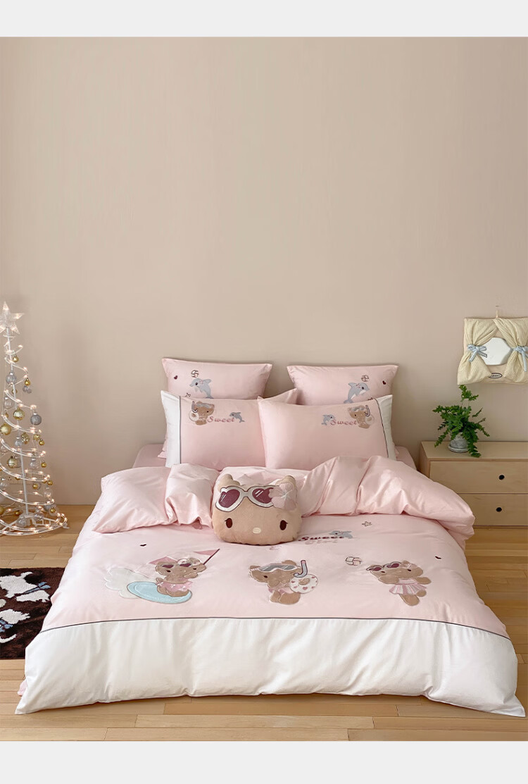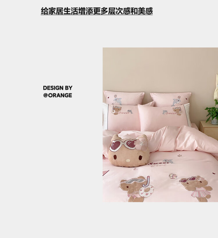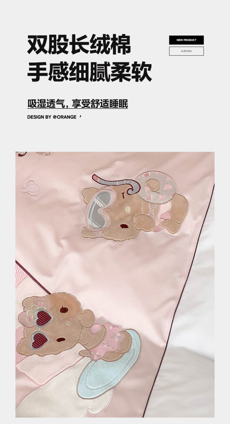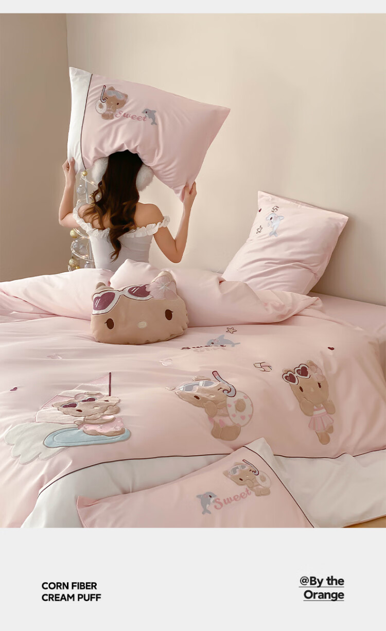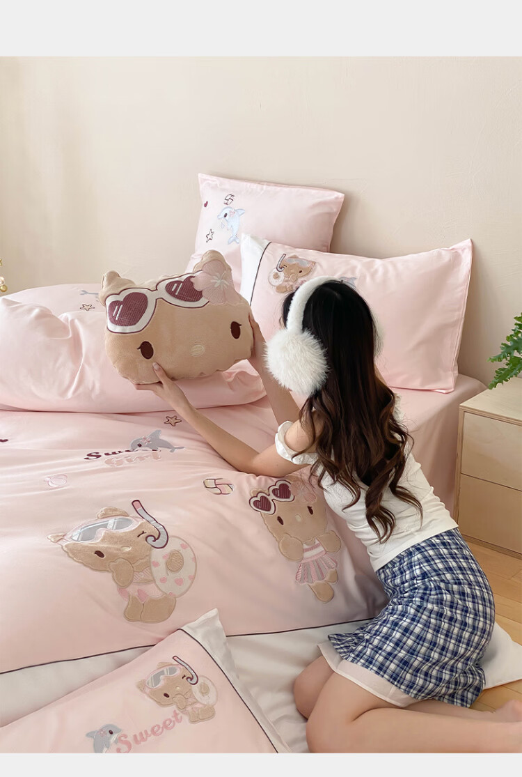 ROLAND LIVE儿童卡通长绒棉四件套软萌粉色全棉被套床单女孩子床上用品三件套 FX 长绒棉套件-假日喵喵酱 1.2米床 床单款 【被套150*200cm】