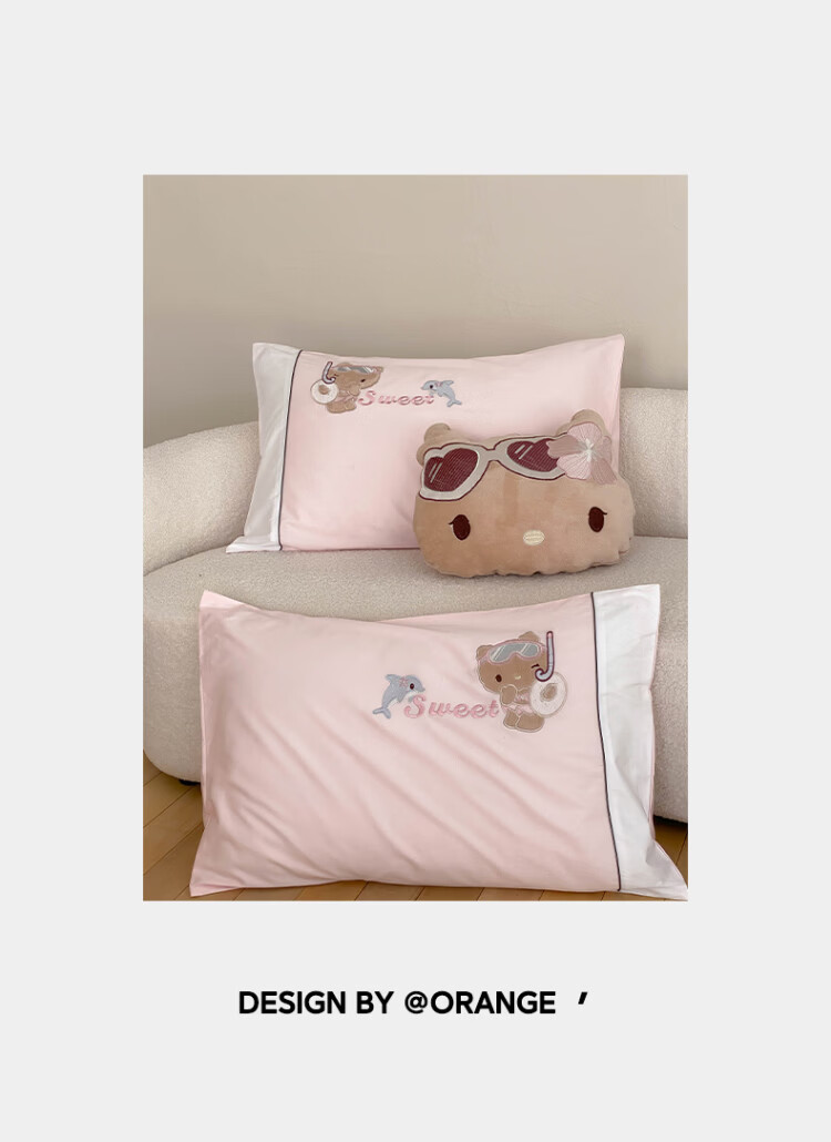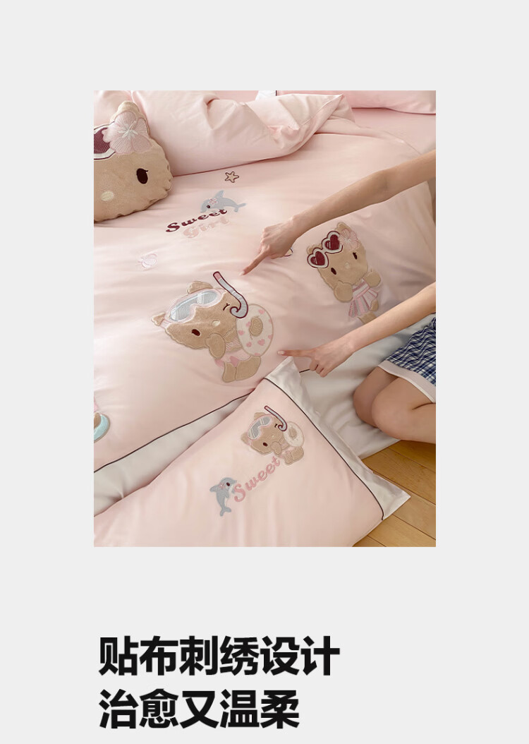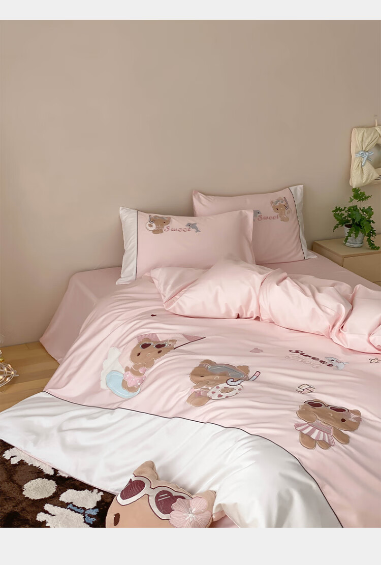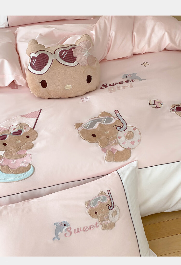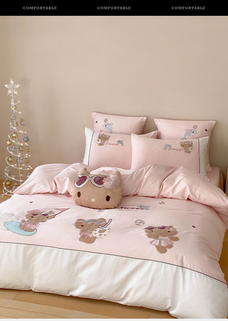 ROLAND LIVE儿童卡通长绒棉四件套软萌粉色全棉被套床单女孩子床上用品三件套 FX 长绒棉套件-假日喵喵酱 1.2米床 床单款 【被套150*200cm】