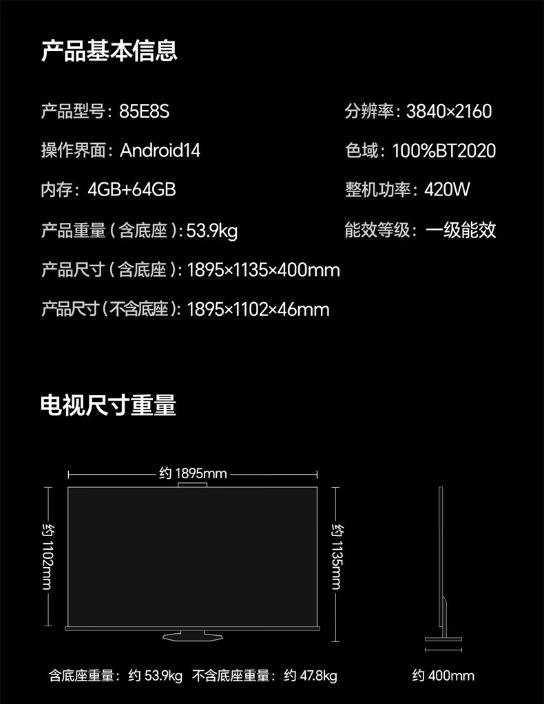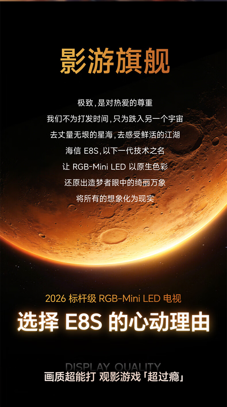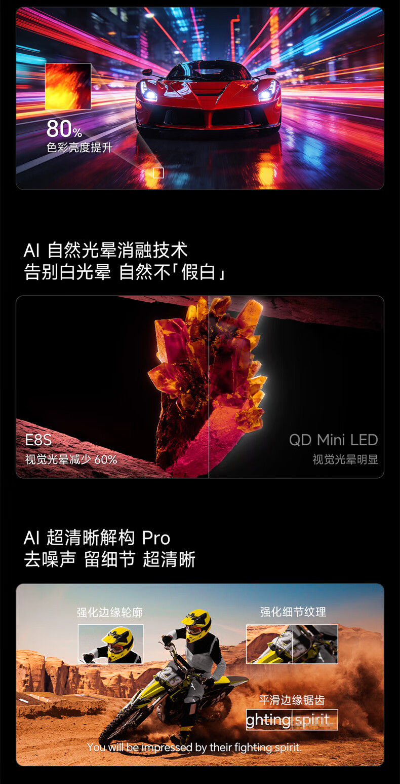 海信RGB-MiniLED电视 E8S 85吋 7020分区 H7芯片黑曜屏Pro 180Hz高刷 世界杯定制电视 E8QPro升级85E8S 85英寸 咨询享免费安装
