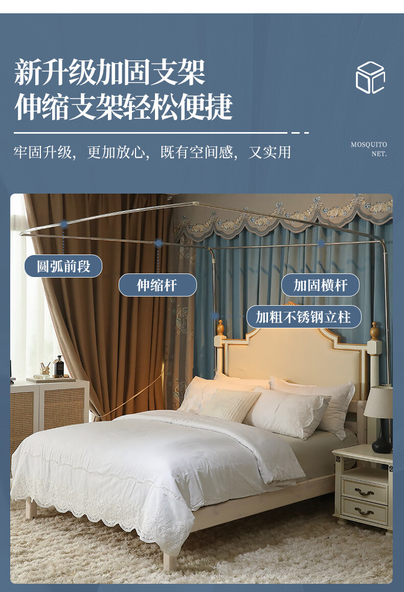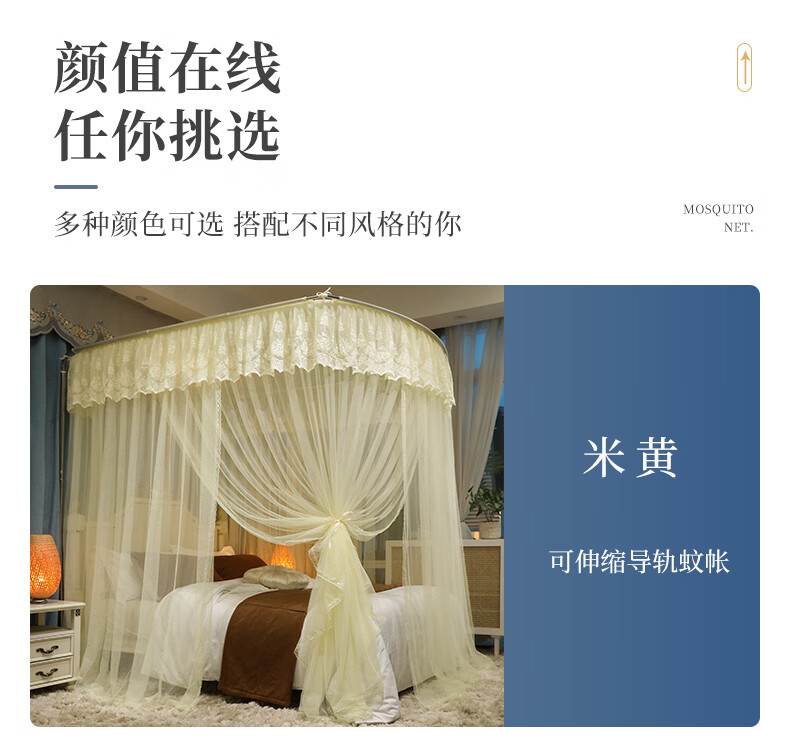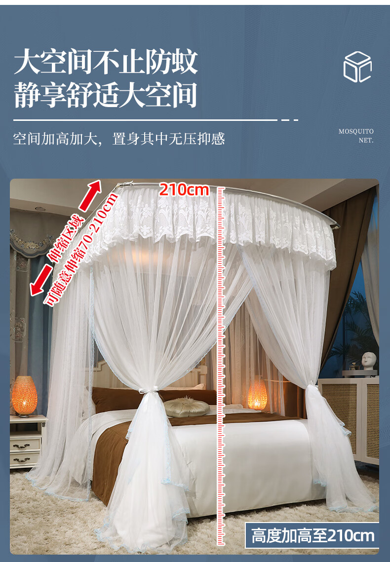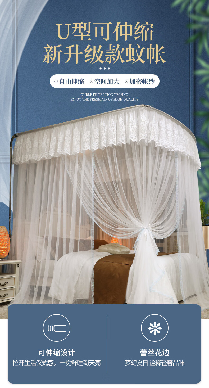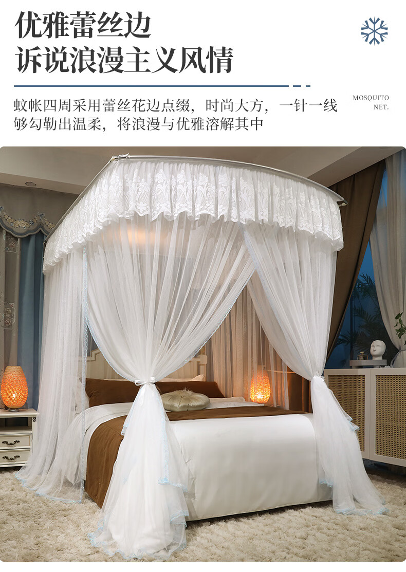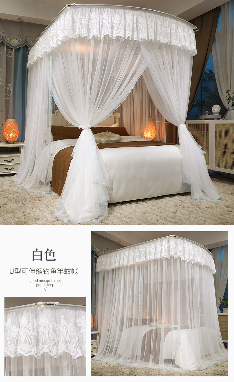 无印良品u型导轨蚊帐2.0米x2.2米家用宫廷1.8米大床公主风床幔可伸缩支架 白色【自由调节长度 加大空间】 180cm*200cm*200cm 适用1.8*2米床