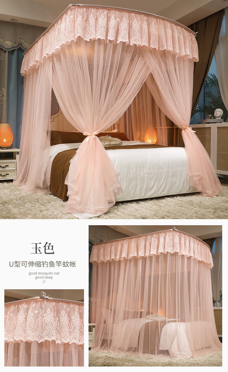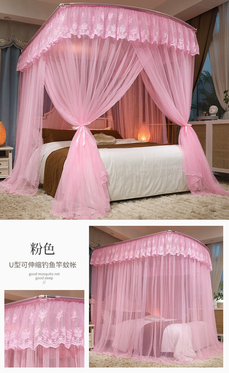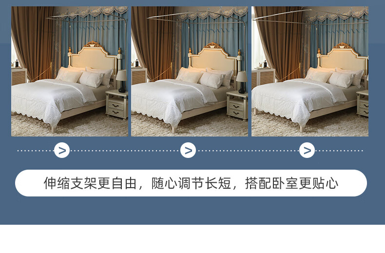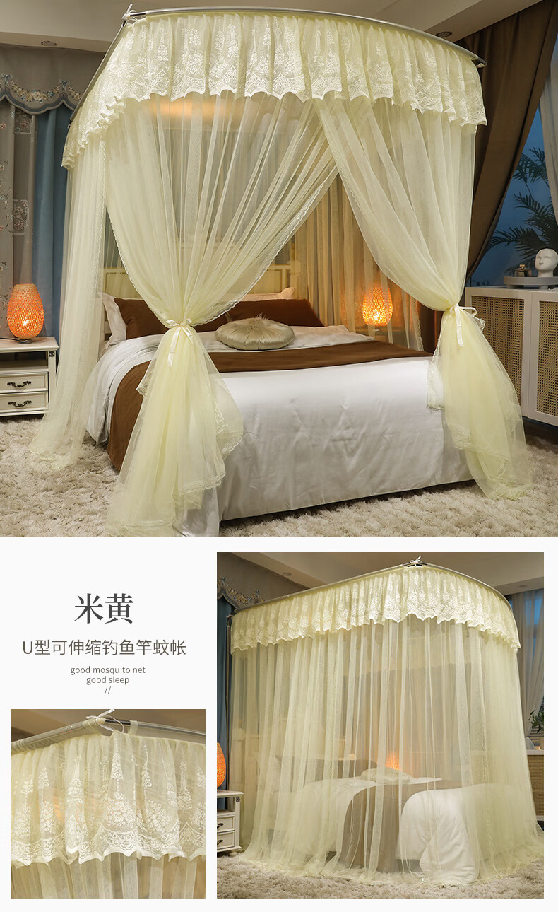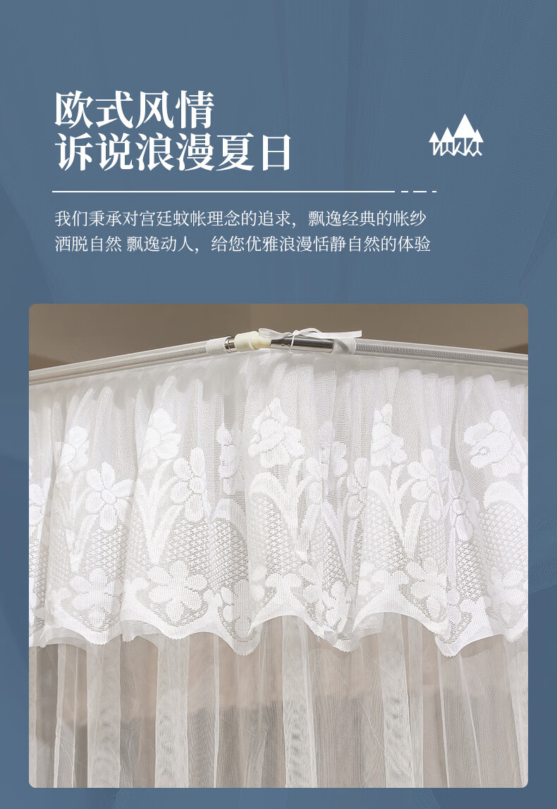 无印良品u型导轨蚊帐2.0米x2.2米家用宫廷1.8米大床公主风床幔可伸缩支架 白色【自由调节长度 加大空间】 180cm*200cm*200cm 适用1.8*2米床