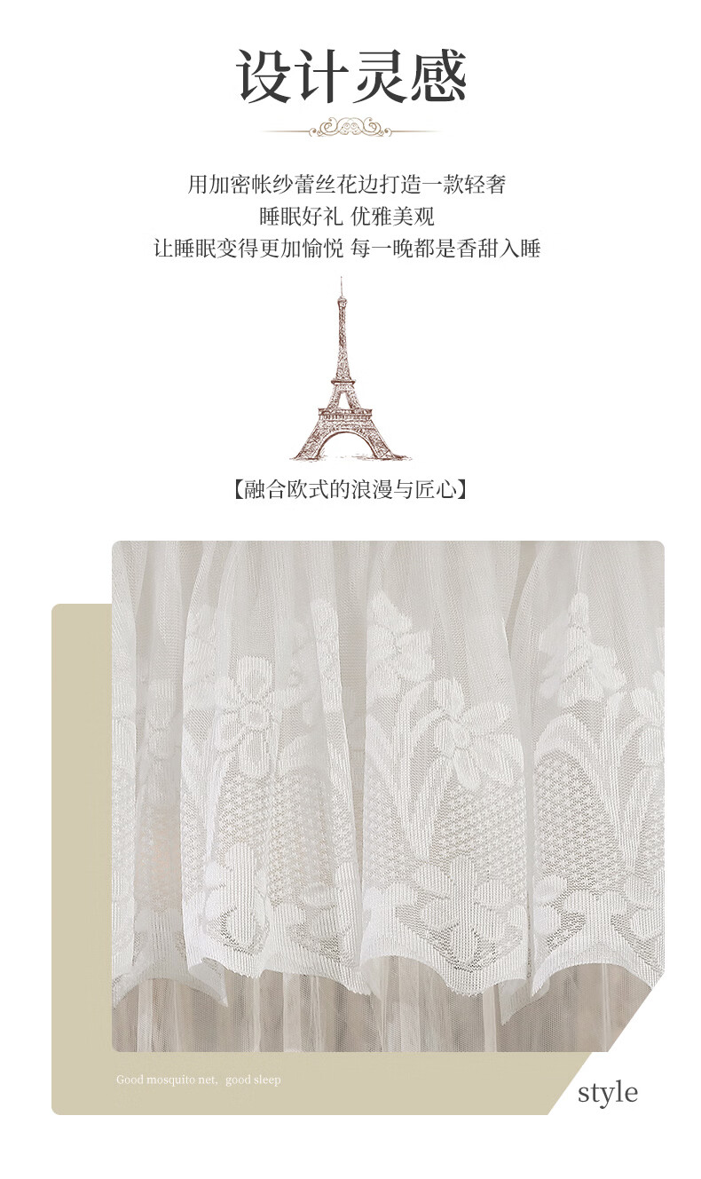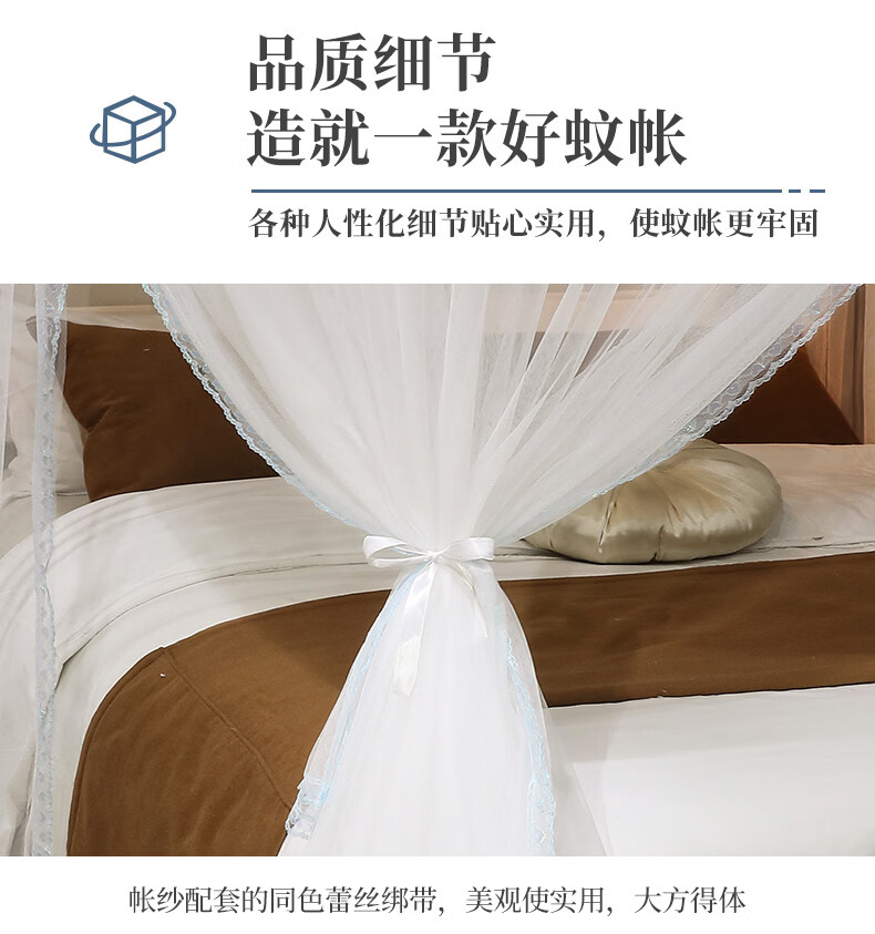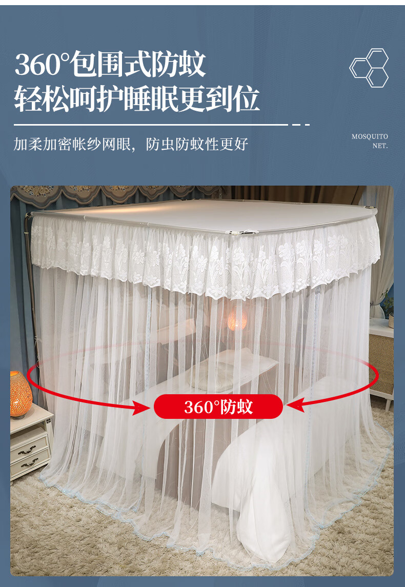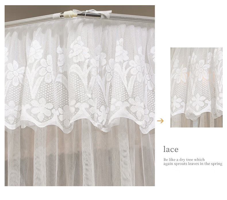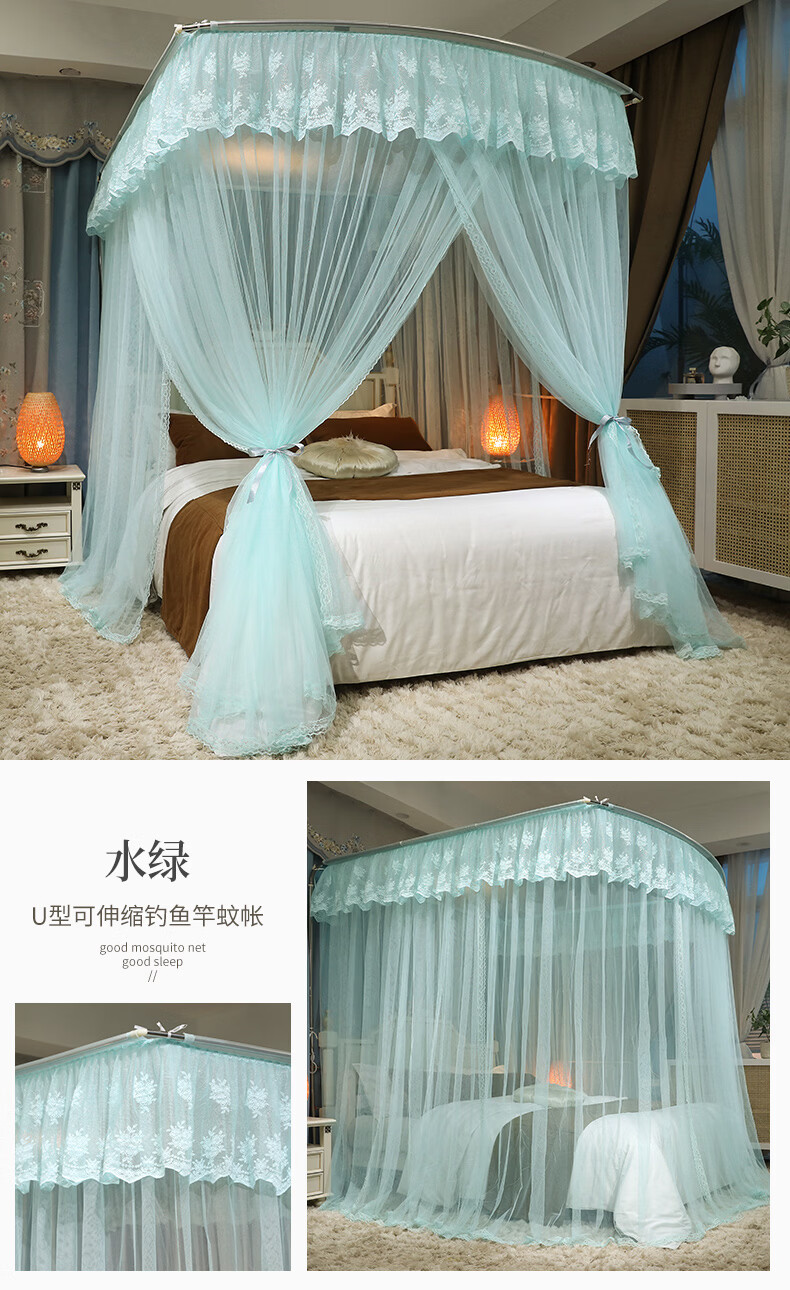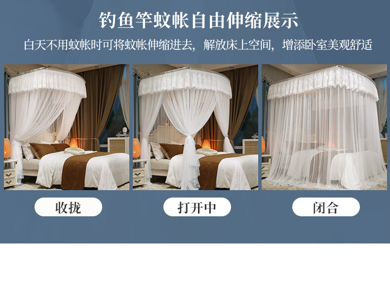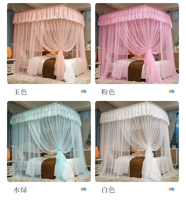 无印良品u型导轨蚊帐2.0米x2.2米家用宫廷1.8米大床公主风床幔可伸缩支架 白色【自由调节长度 加大空间】 180cm*200cm*200cm 适用1.8*2米床