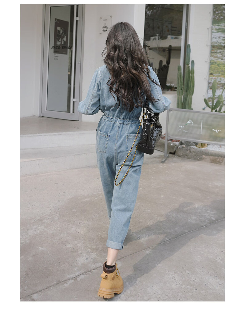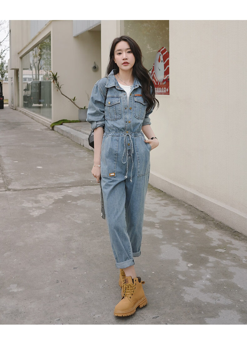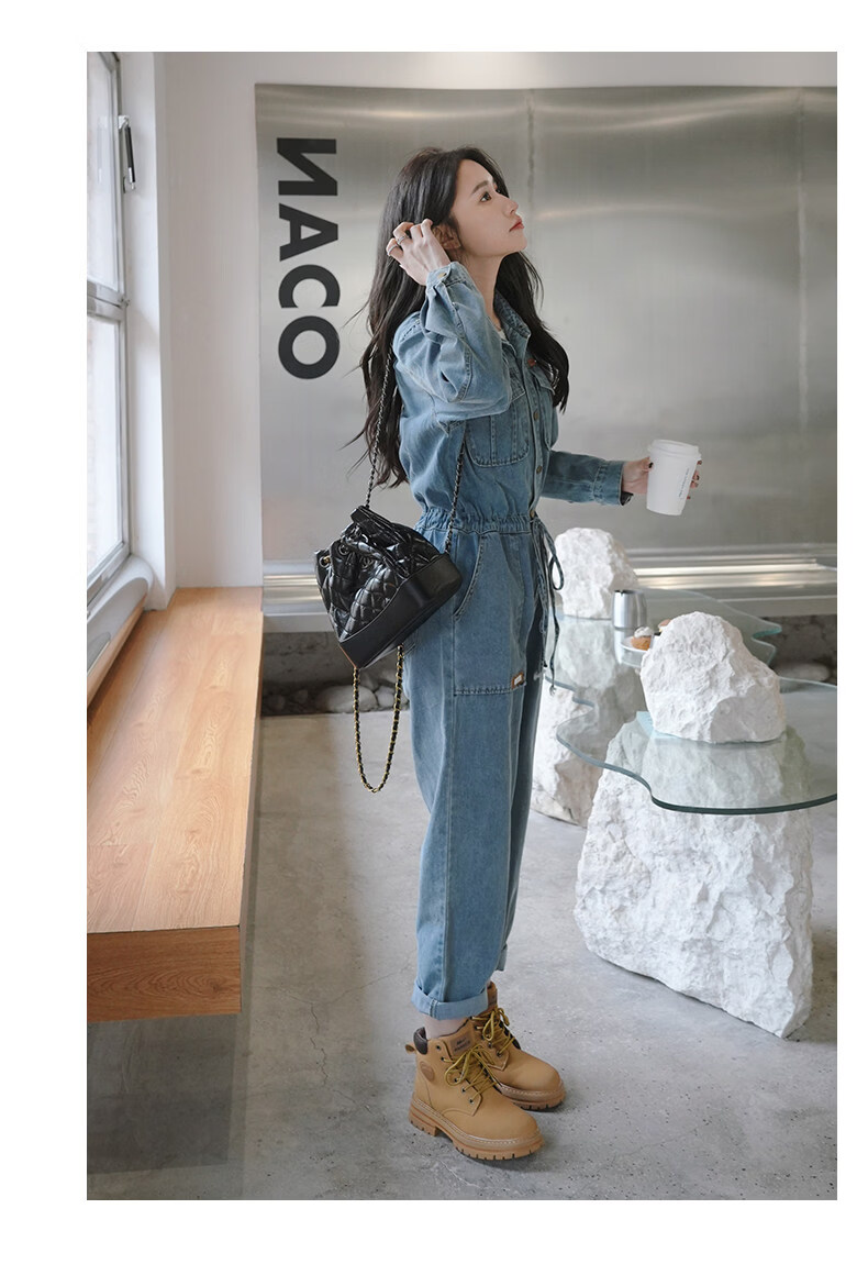 MODX港风复古蓝色牛仔连体裤女春秋2026新款高腰显瘦女神范连衣裤套装 图片色 S -105斤内