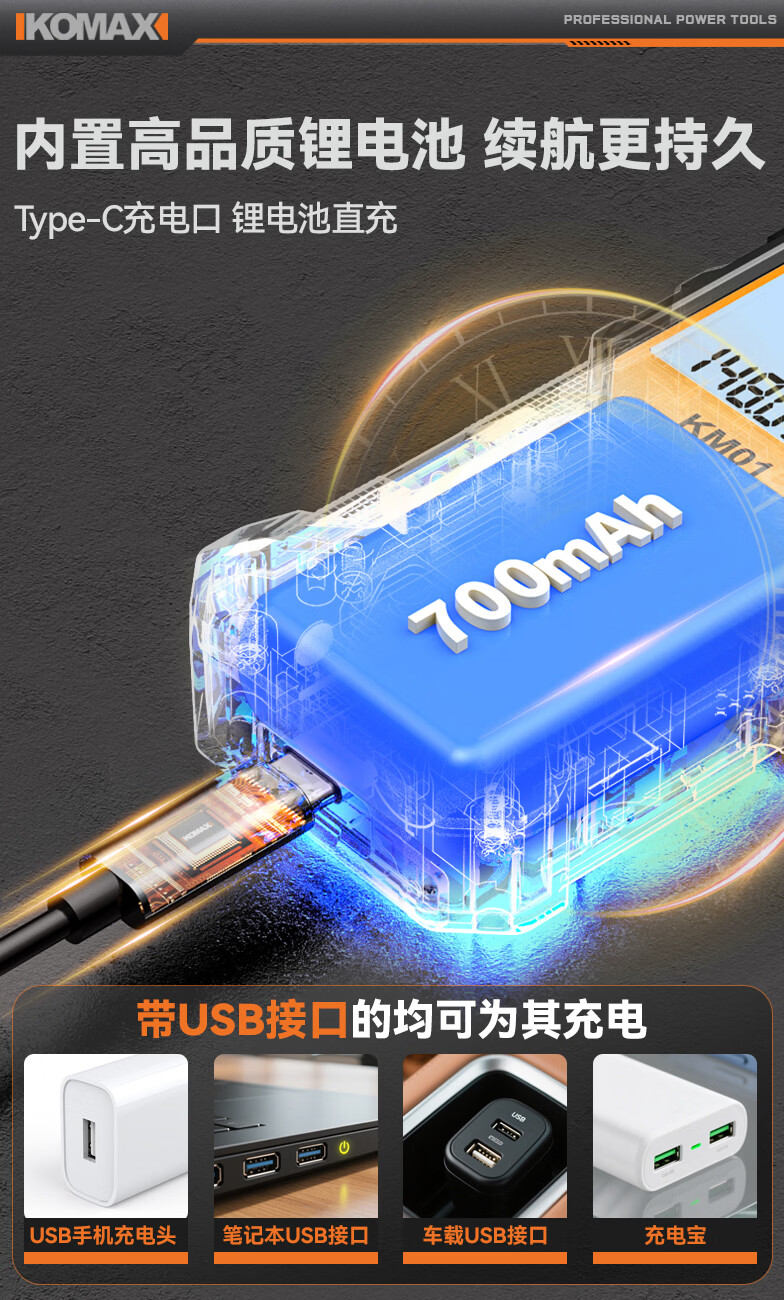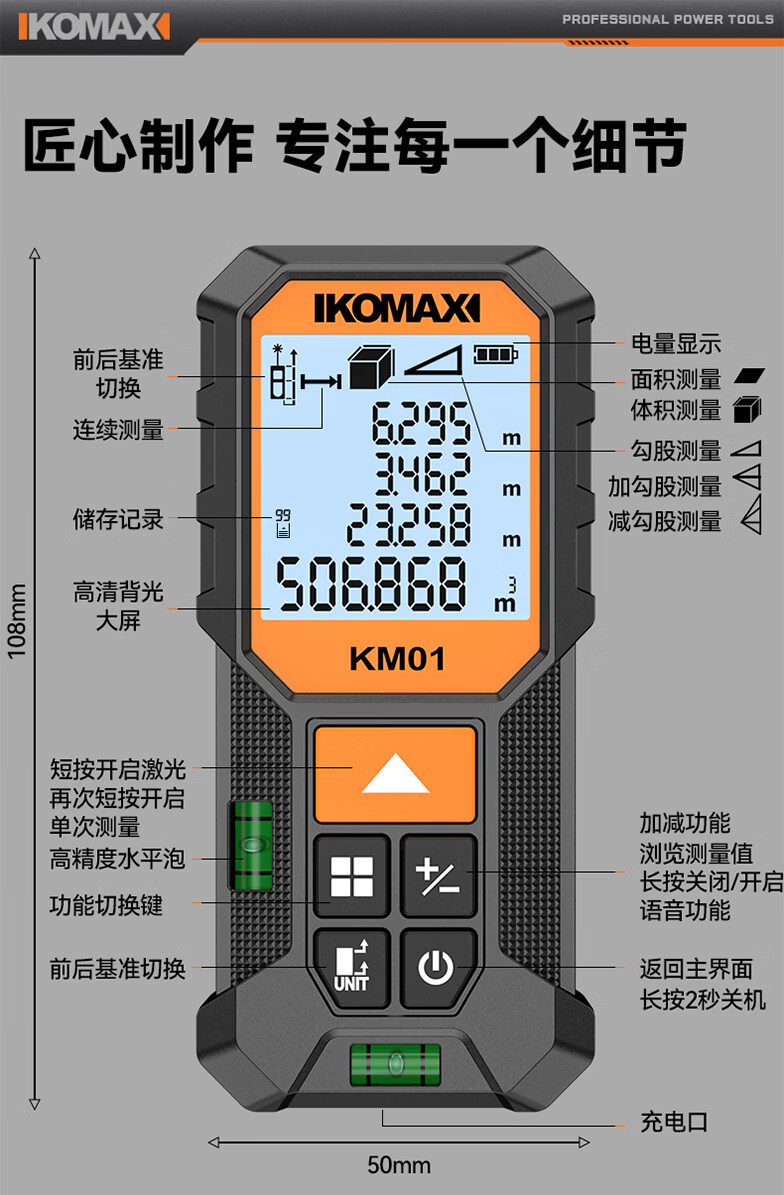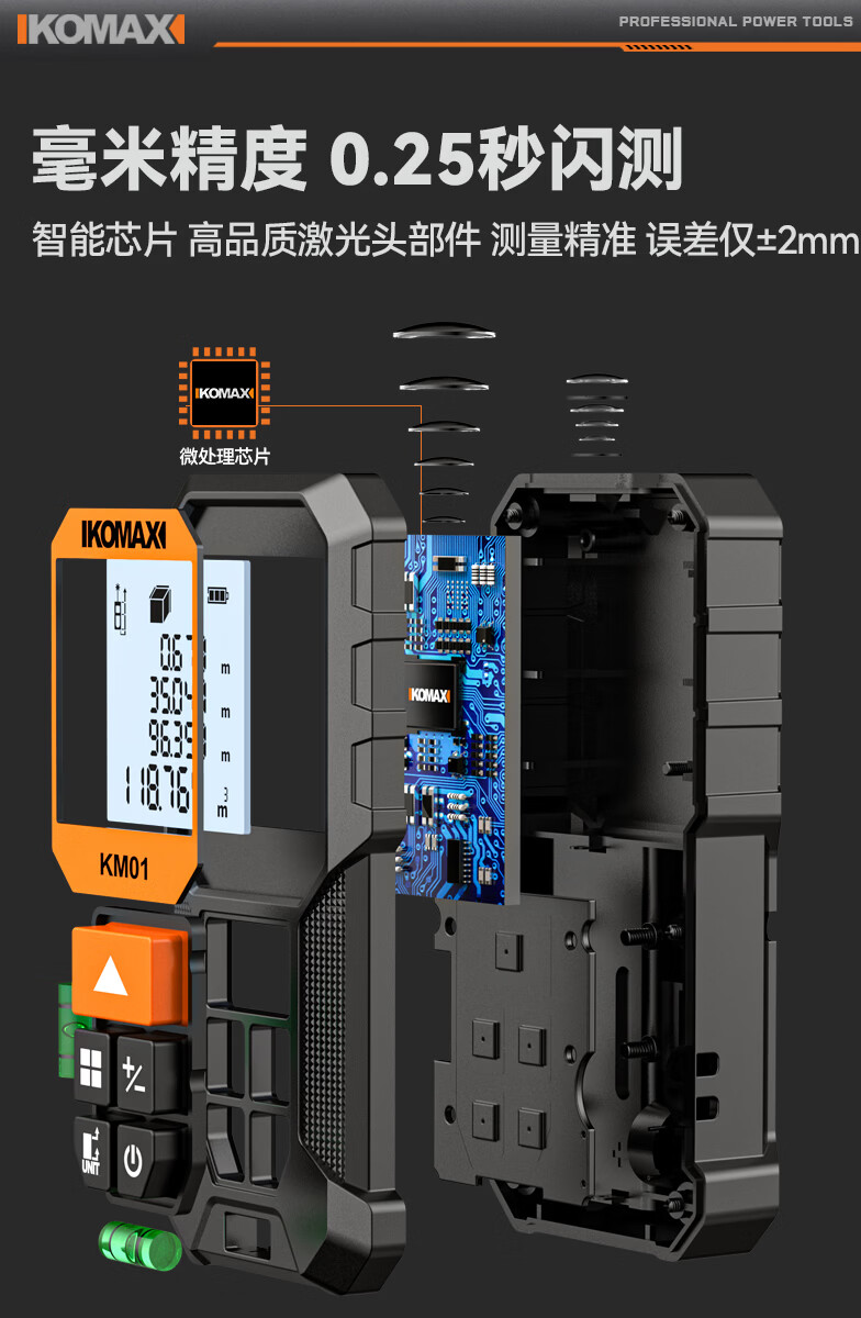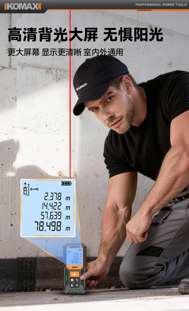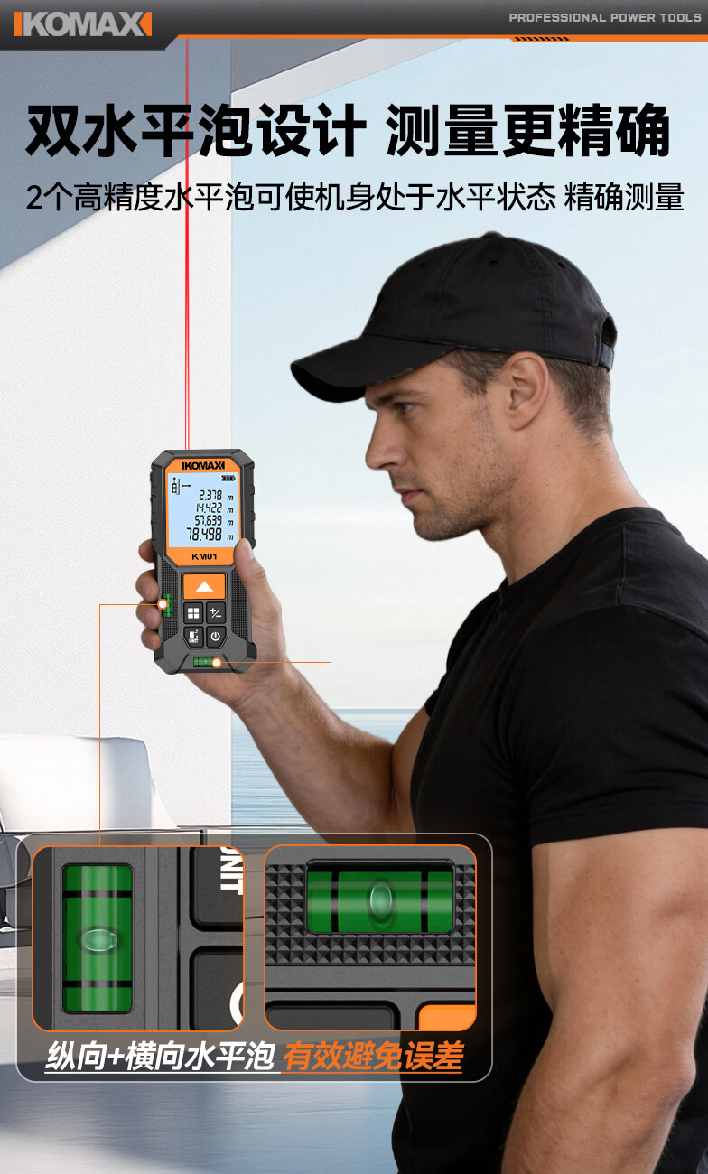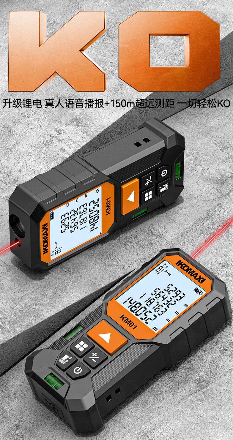 科麦斯(KOMAX)高精度激光测距仪家用电子红外线激光量房仪锂电尺双水平泡 旗舰款70米【锂电直充+双水平泡】