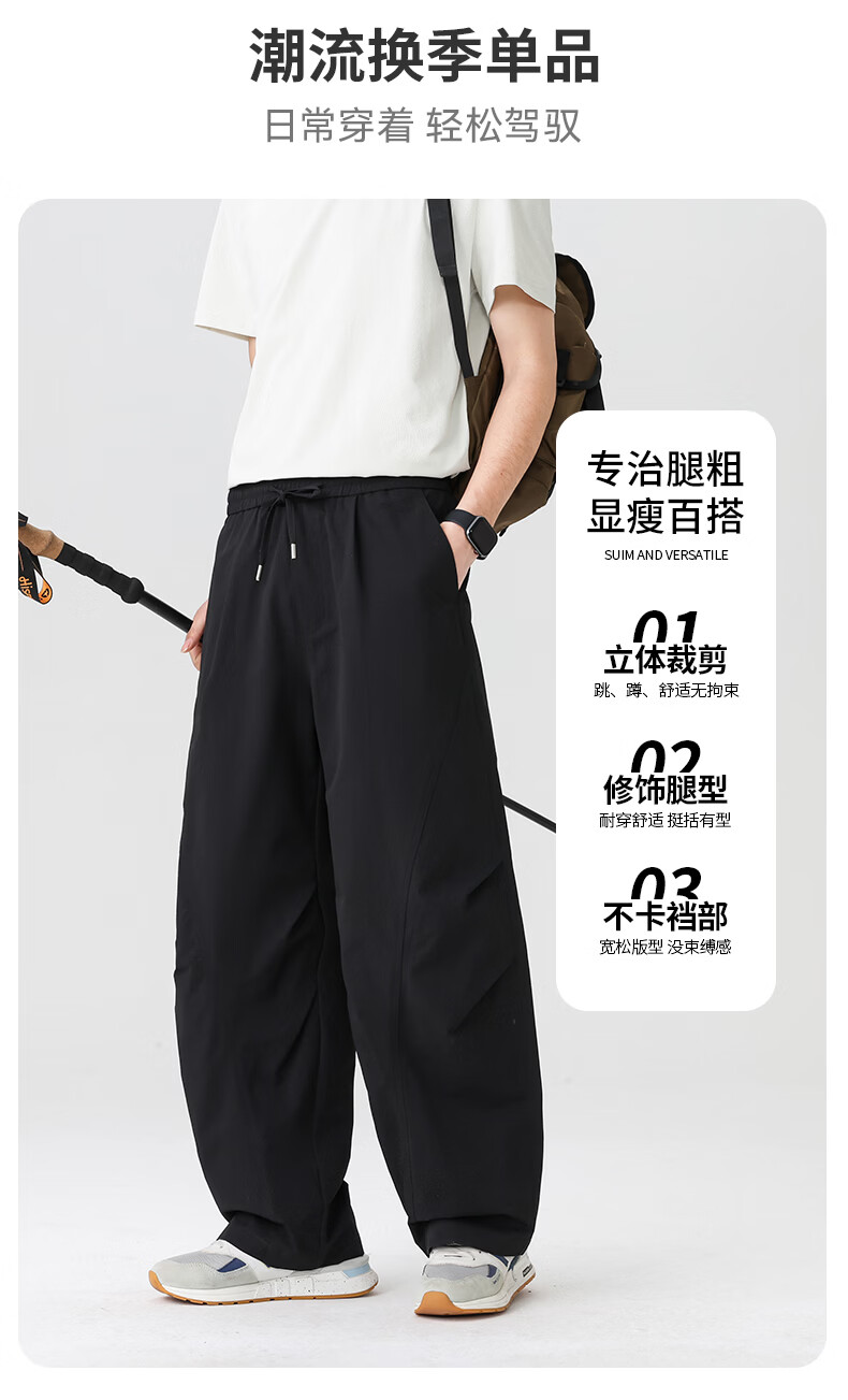SHANSHAN杉杉【防紫外线】男士休闲弯刀裤子男春季户外运动宽松 黑色 M /170