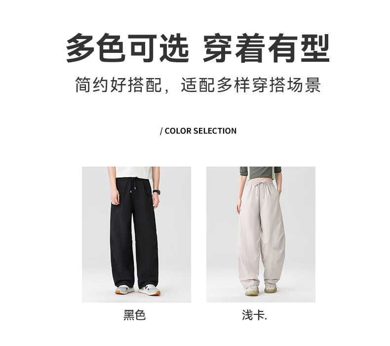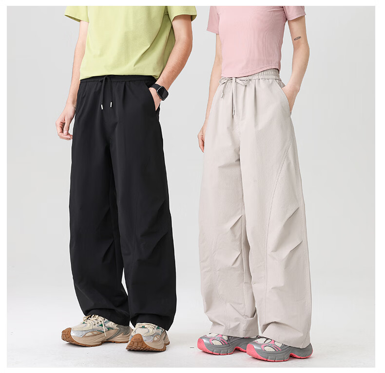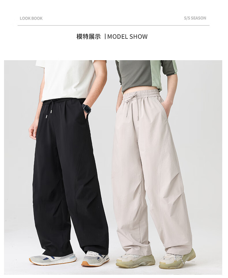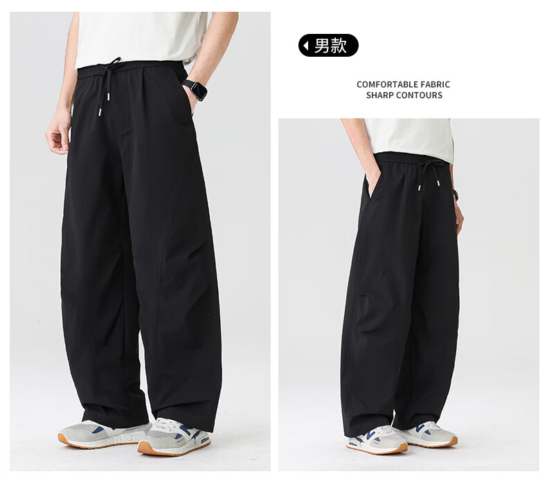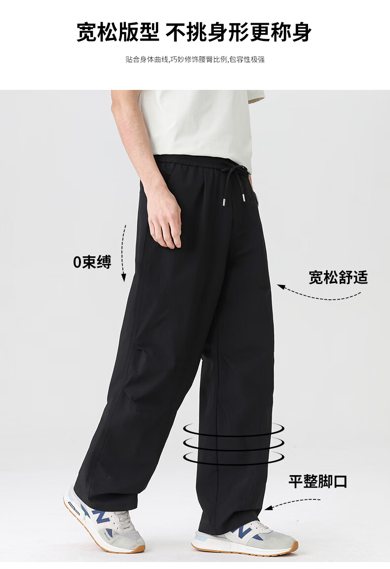 真维斯(Jeanswest)2026休闲裤子春夏季宽松直筒长裤微弹垂感男士潮牌阔腿西装长裤男 黑色+黑色【优惠两件装】 3XL 【建议150-175斤】