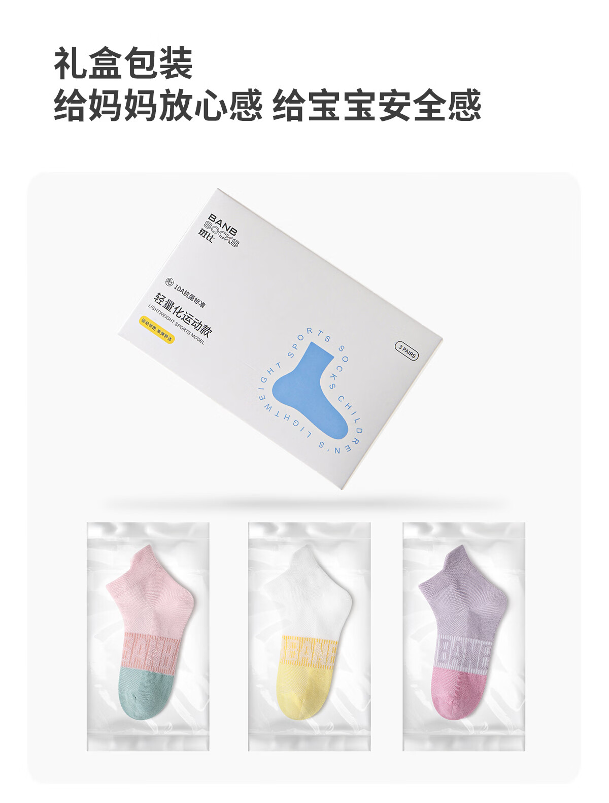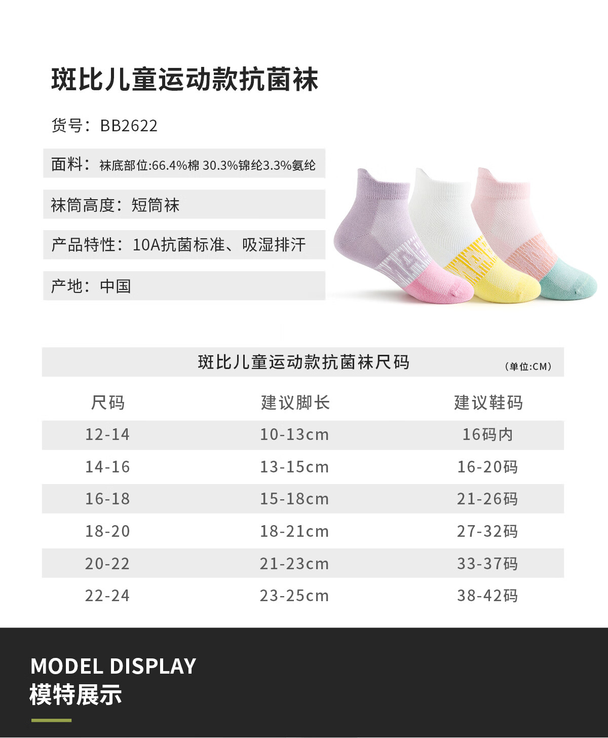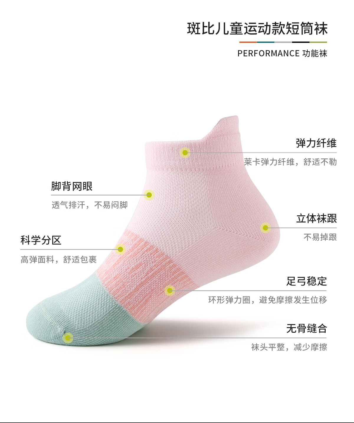 斑比2026春夏季薄款儿童袜子网眼透气棉袜中大女童运动10A抗菌袜 BB2622 春夏儿童运动款抗菌袜 3双 6-8岁 建议脚码27-32码【18-20】