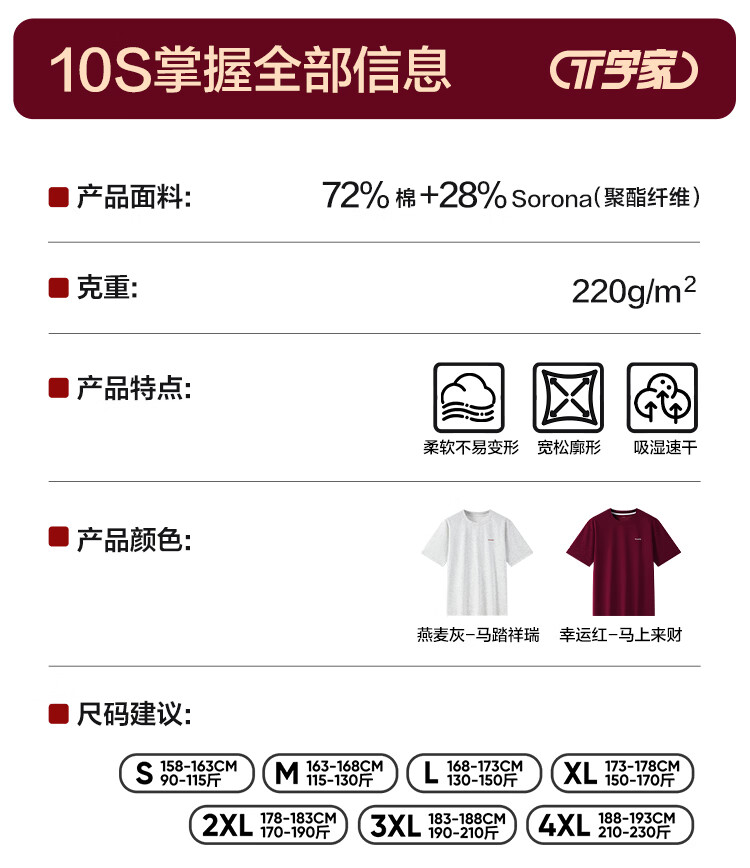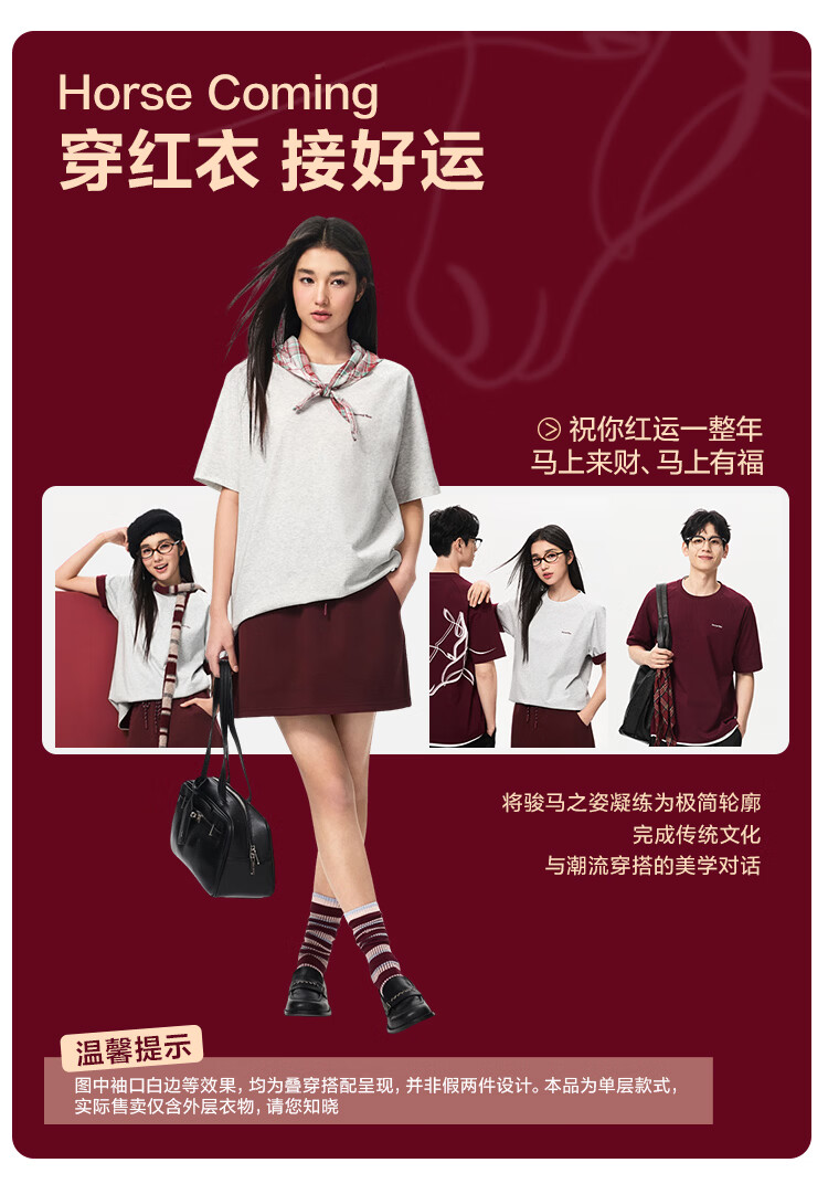 网易严选26马年限定红运T恤速干透气柔软短袖内搭圆领男女同款插肩袖显瘦 燕麦灰-马踏祥瑞 L