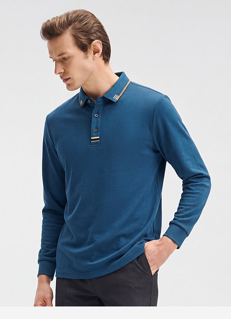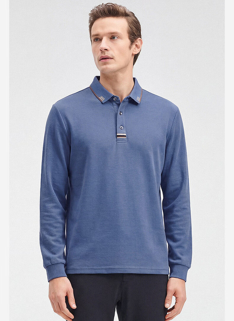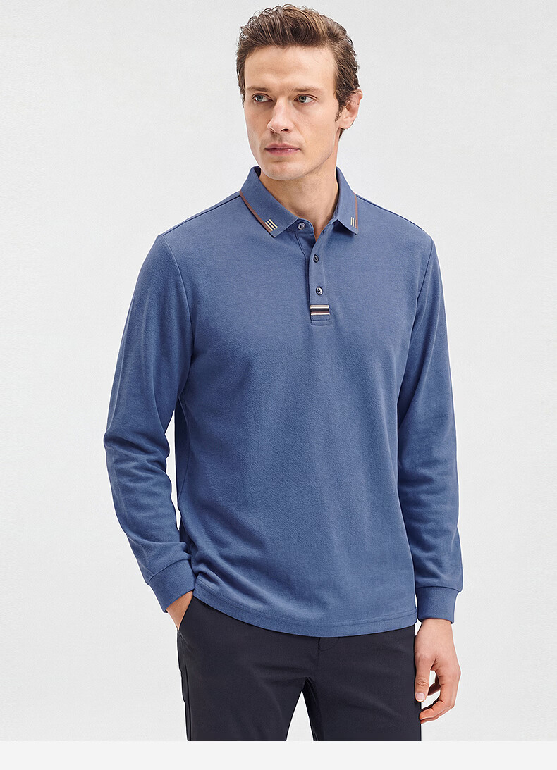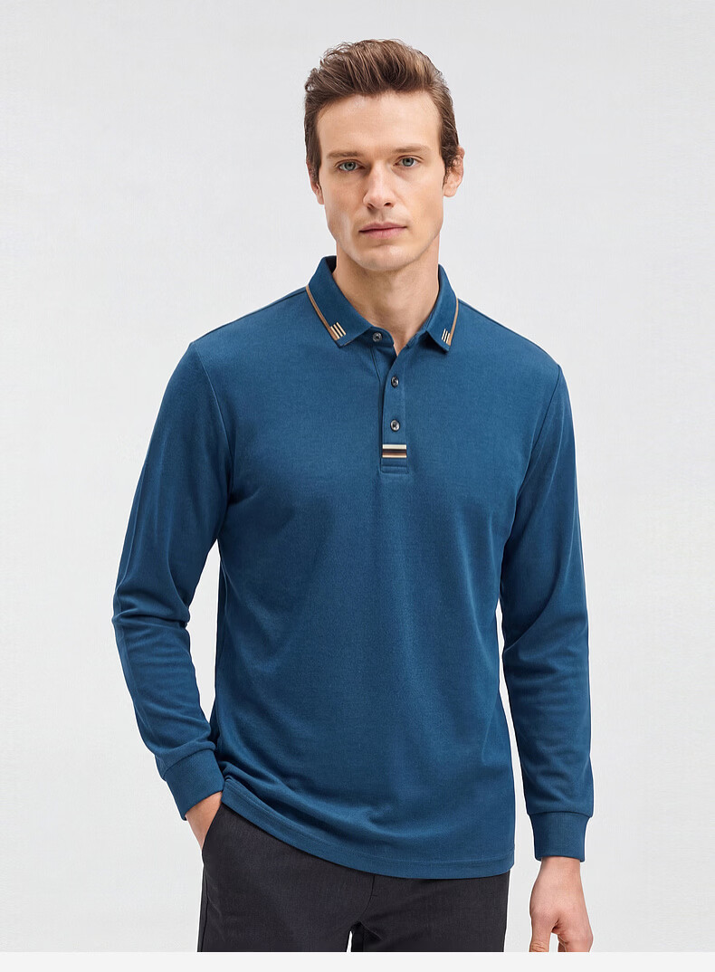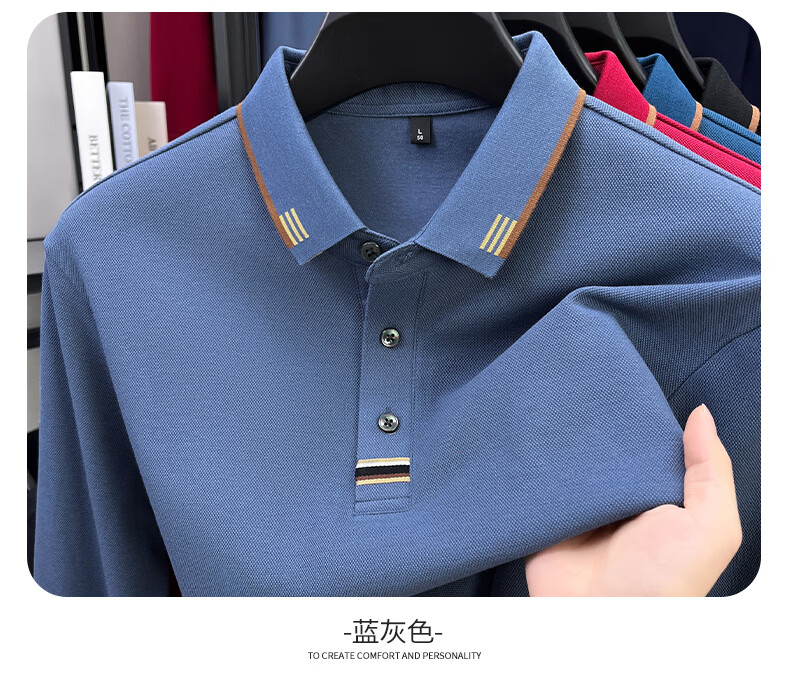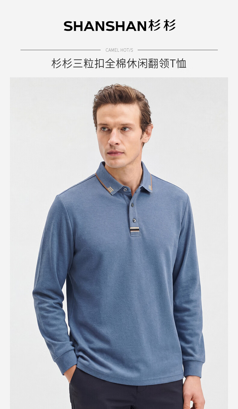 SHANSHAN杉杉【纯棉系扣】长袖t恤男翻领POLO衫纯色透气春秋新款 蓝灰色 4XL /195