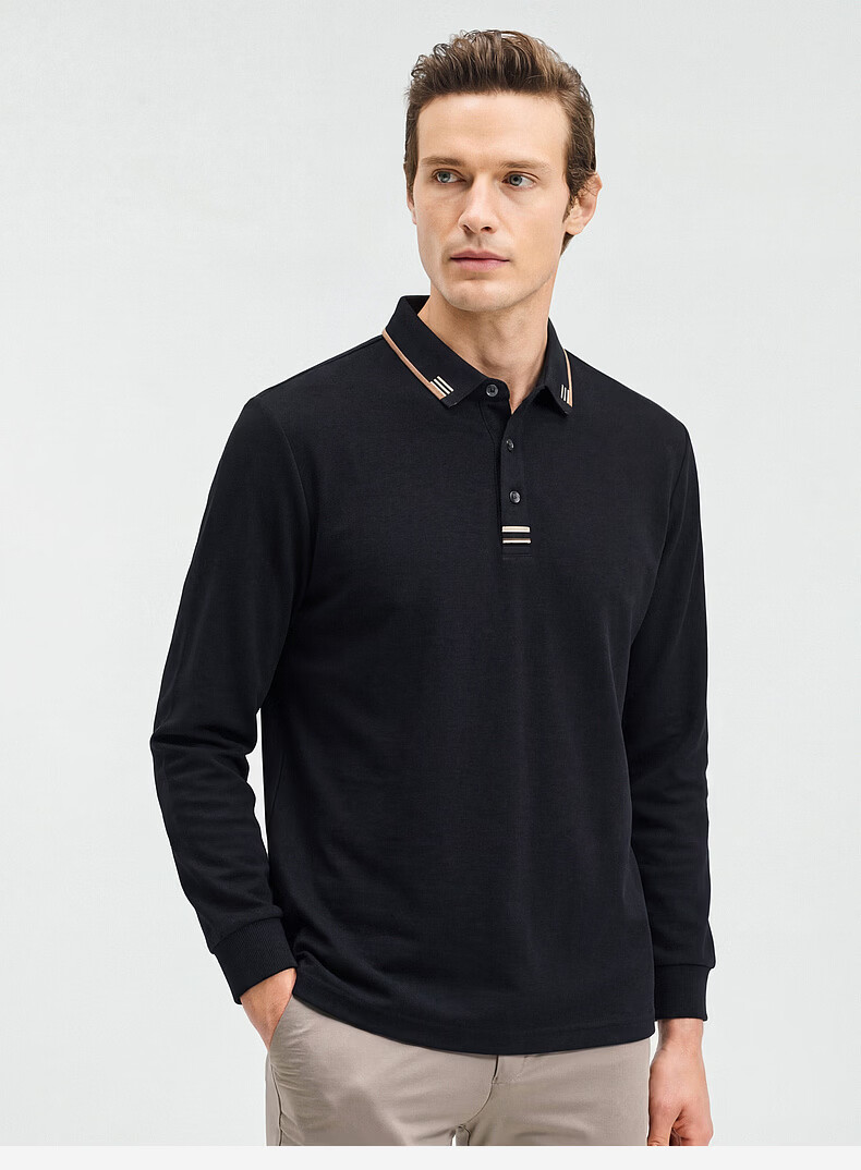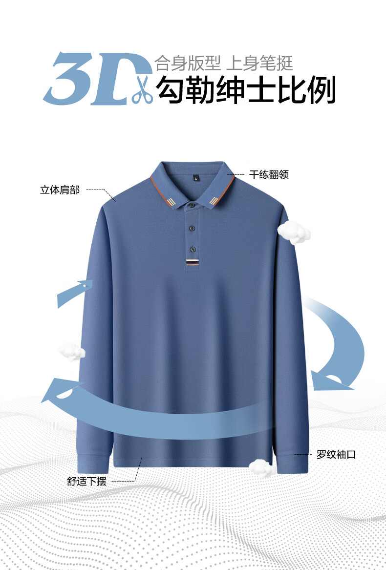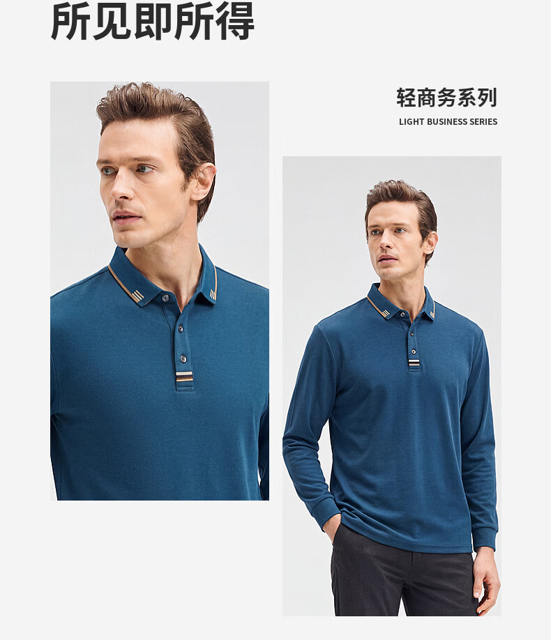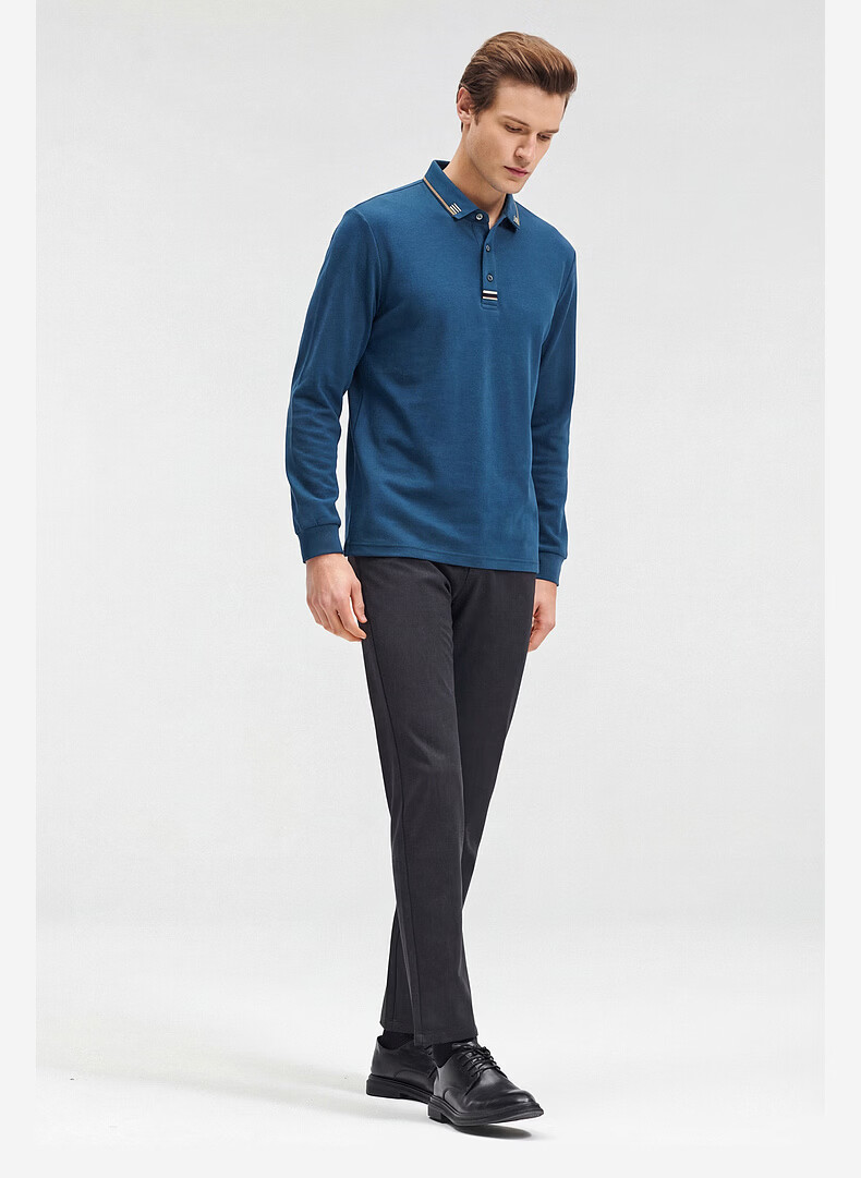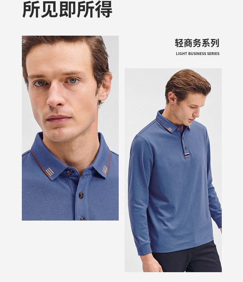 SHANSHAN杉杉【纯棉系扣】长袖t恤男翻领POLO衫纯色透气春秋新款 蓝灰色 4XL /195